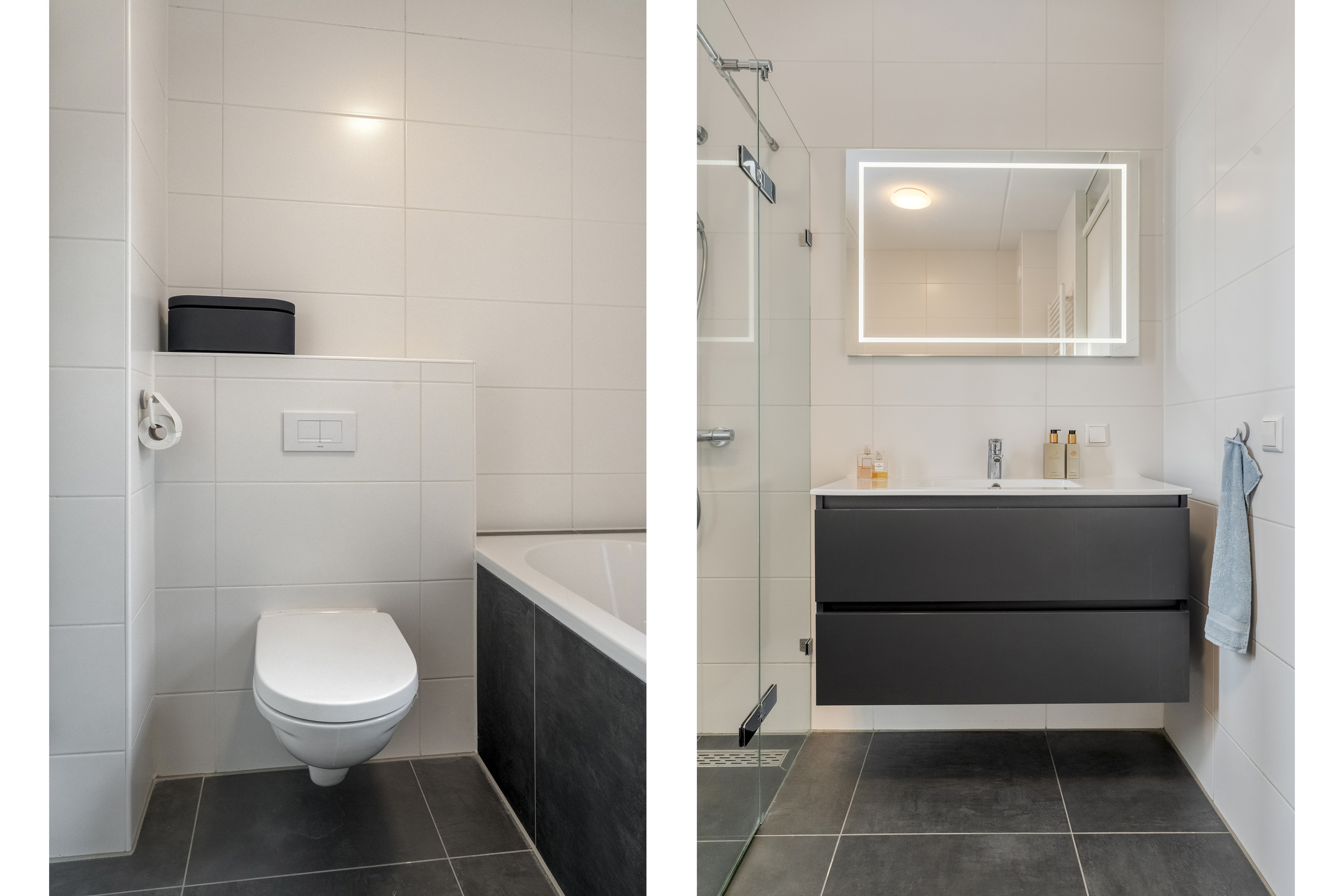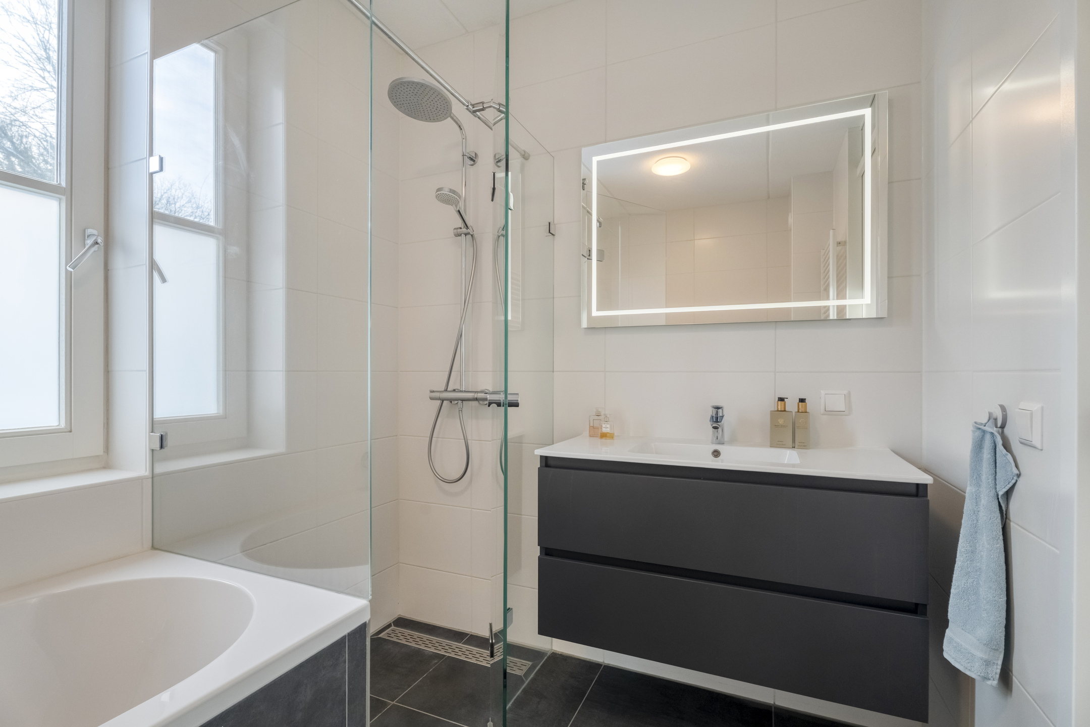 Op de eerste verdieping zijn drie ruime slaapkamers te vinden, elk keurig afgewerkt en voorzien van grote ramen voor veel daglicht. De ramen in de slaapkamers zijn voorzien van op maat gemaakte horren en rolluiken. De badkamer is modern en stijlvol: met een breed wastafelmeubel, inloopdouche, groot ligbad en tweede toilet. Alles in neutrale kleuren, strak tegelwerk en eigentijdse afwerking.