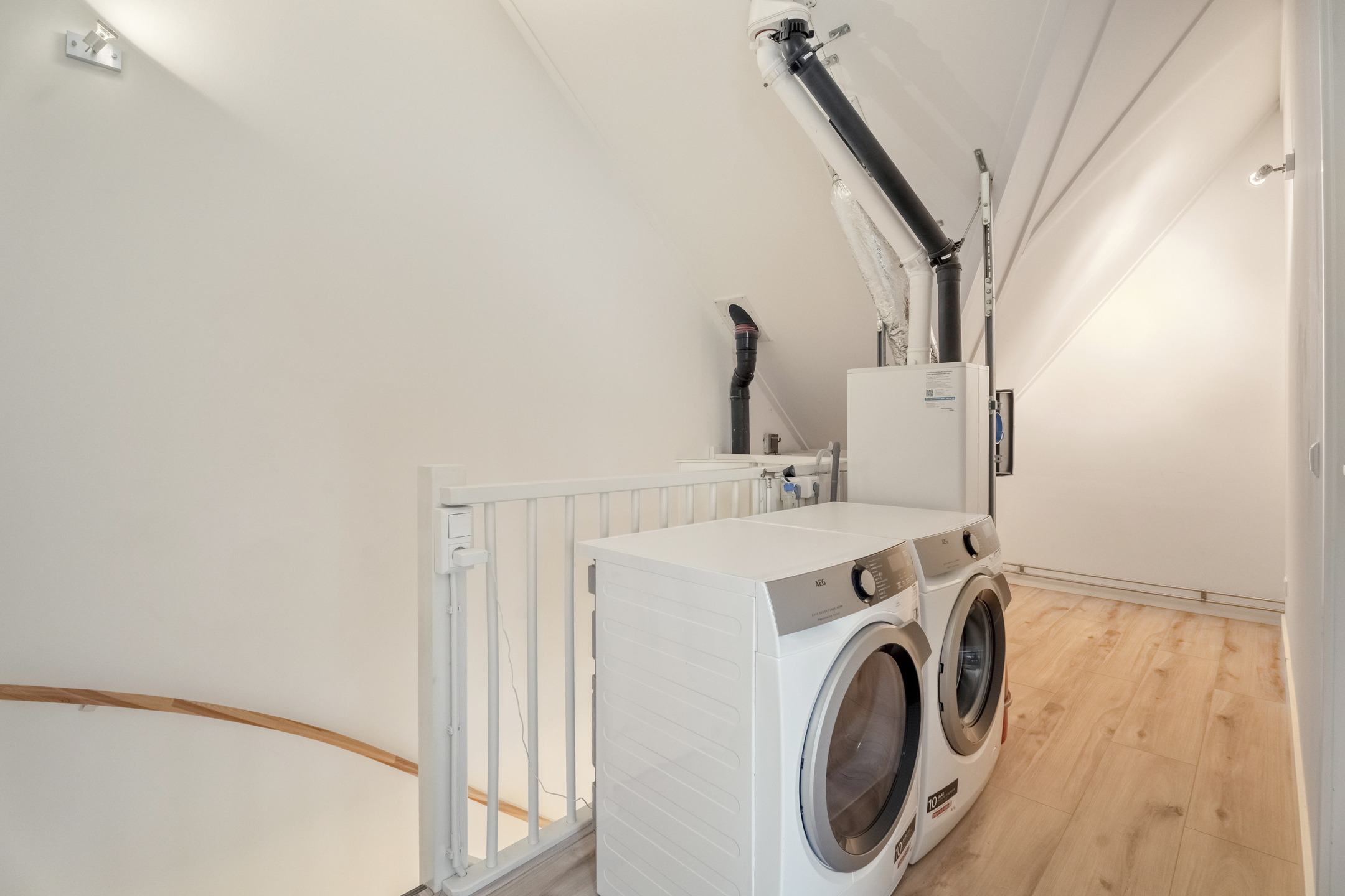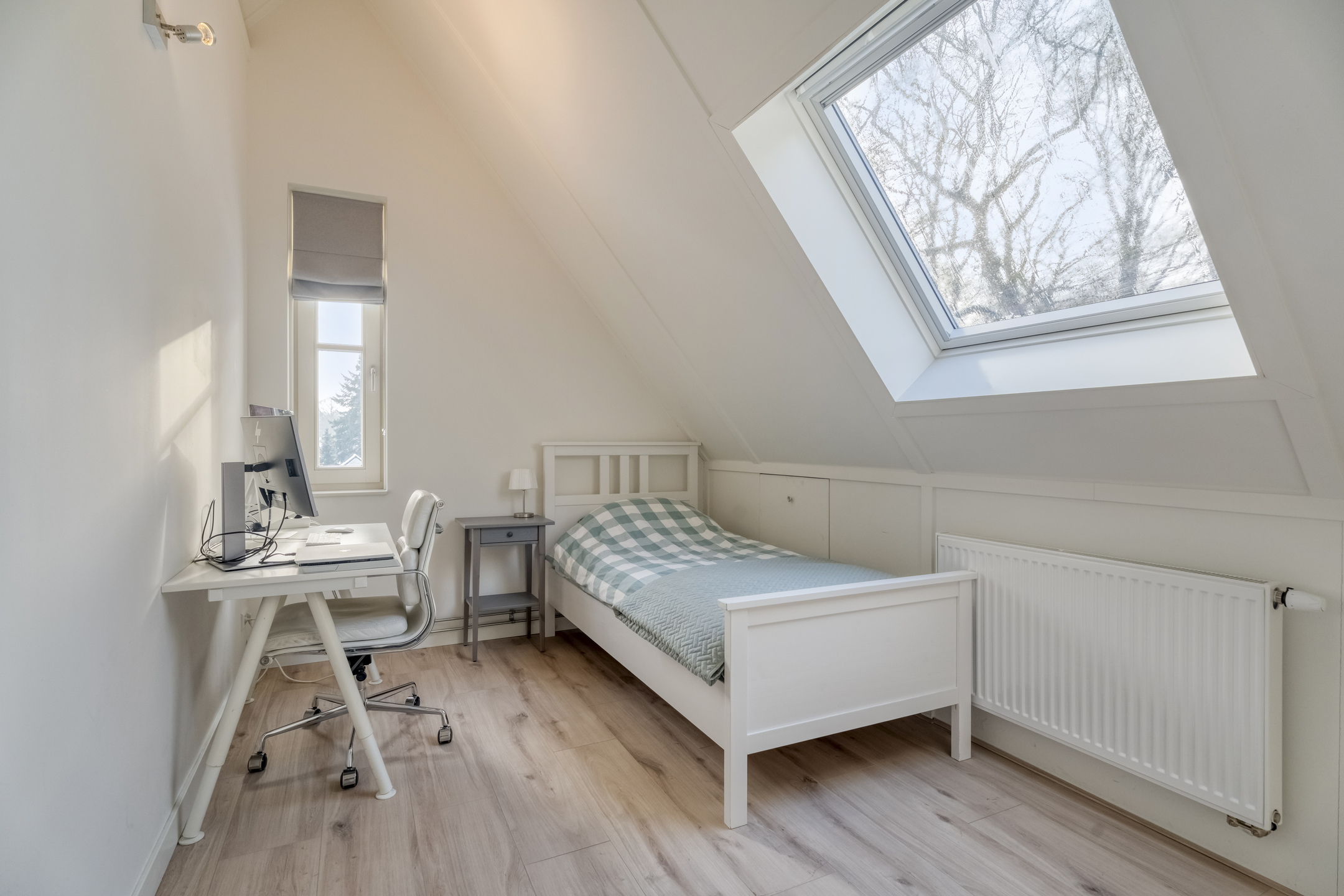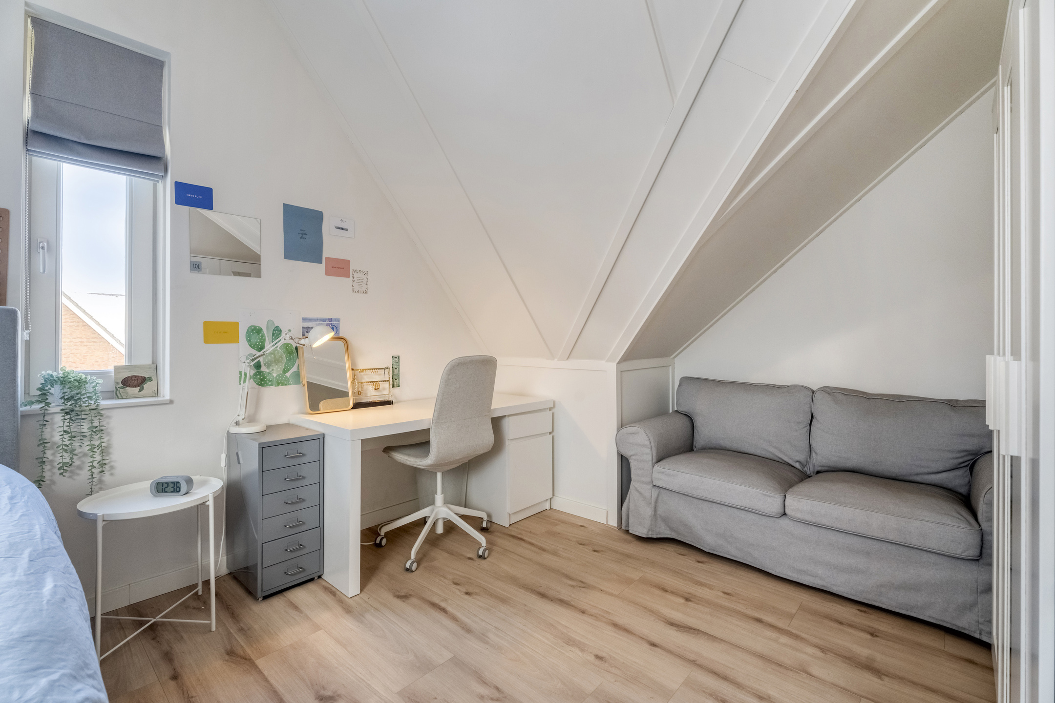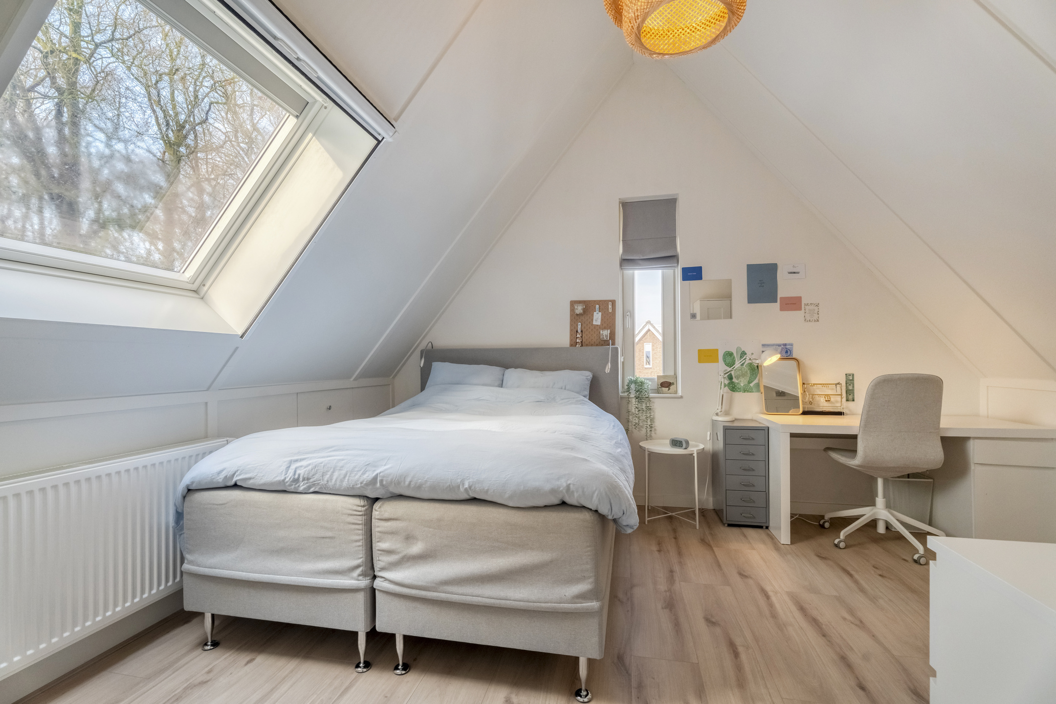 De tweede verdieping biedt nog eens twee volwaardige slaapkamers, beide met dakramen en voldoende bergruimte achter de knieschotten. De ruime overloop heeft plek voor een wasmachine, droger én een werkhoek of grote inbouwkast. Ook is er gemakkelijk de mogelijkheid om een extra doucheruimte te creëren.