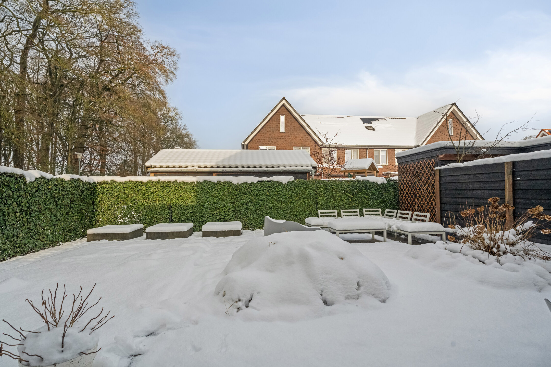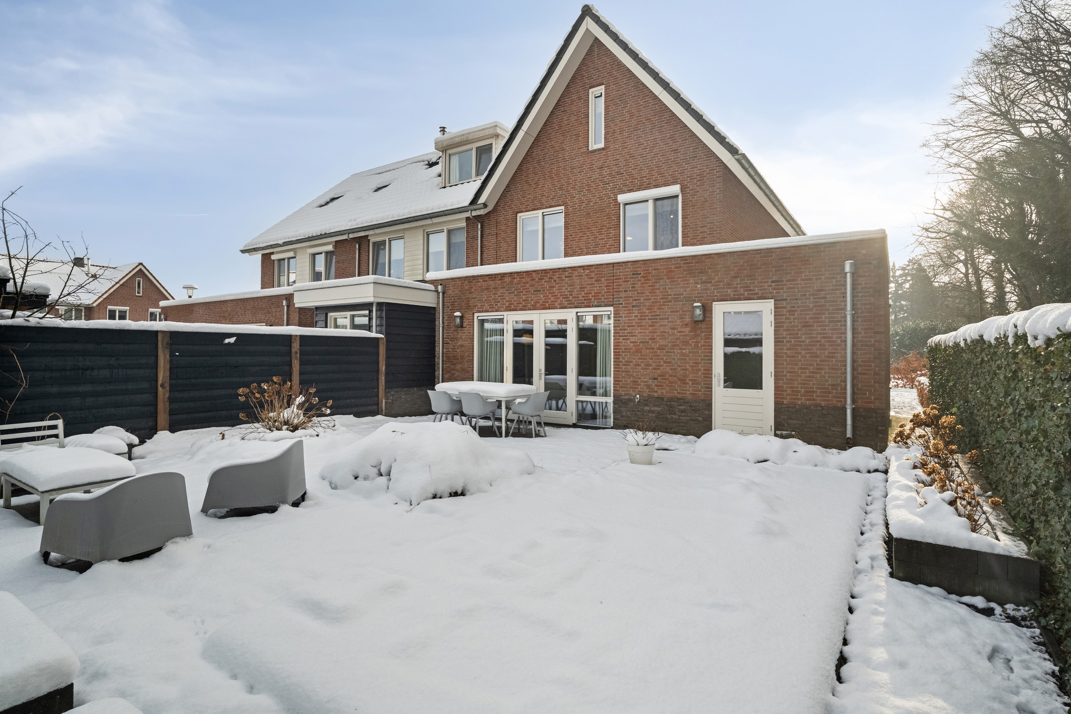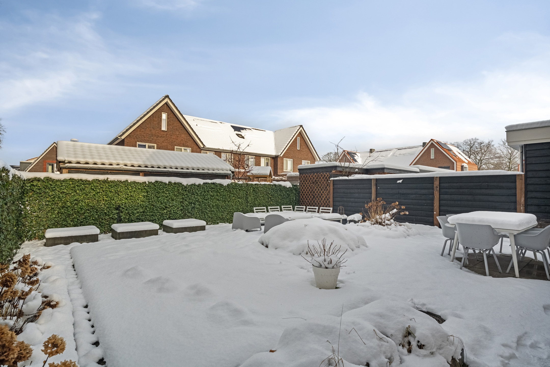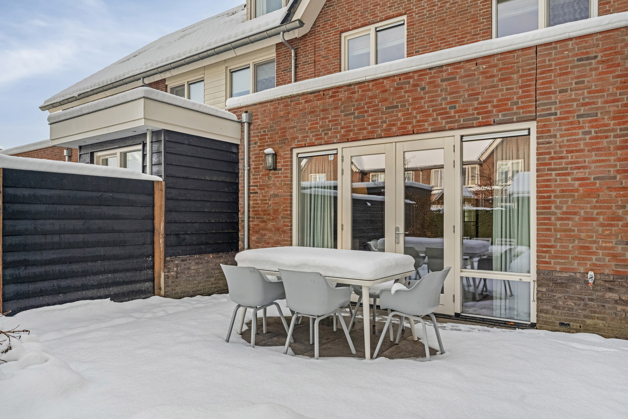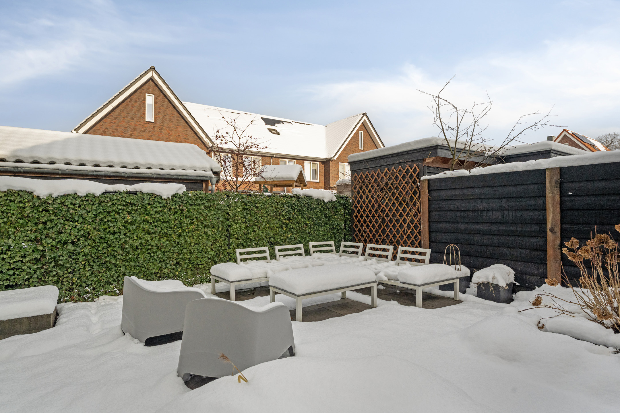 De achtertuin ligt heerlijk vrij en is via een achterom bereikbaar. Er is een ruim terras grenzend aan de woning, perfect voor zomerse etentjes of om in het voorjaar al vroeg van de zon te genieten. Het groen is verzorgd en onderhoudsvriendelijk aangelegd. De combinatie van de gunstige ligging en de privacy, vormt dit een heerlijke buitenplek.
