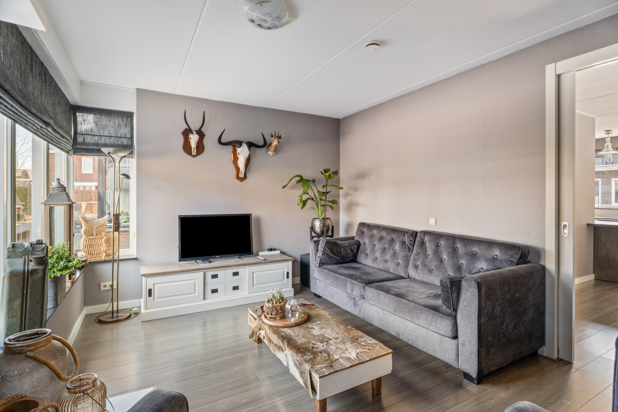 De woonkamer ligt aan de voorzijde van de woning en beschikt over grote raampartijen waardoor er veel daglicht naar binnen valt. Hier is volop ruimte voor een gezellig zitgedeelte.