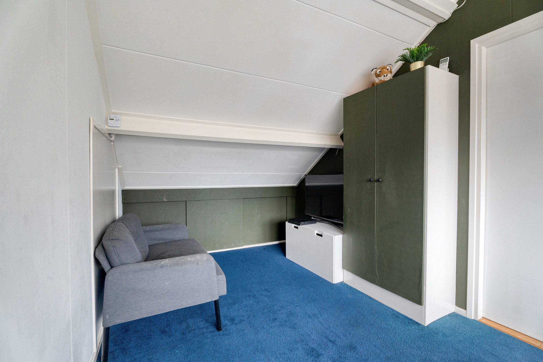 De vaste trap brengt je naar de tweede verdieping waar je beschikt over een ruime voorzolder met logeermogelijkheid en daarnaast één volwaardige slaapkamer. De grote dakkapel met verhoogde nok aan de achterzijde zorgt hier voor extra ruimte en daglicht. Ideaal dus als extra slaapkamer, werkplek of hobbyruimte. Zowel de voorzolder als de slaapkamer zijn voorzien van knieschotten en vaste bergruimte.