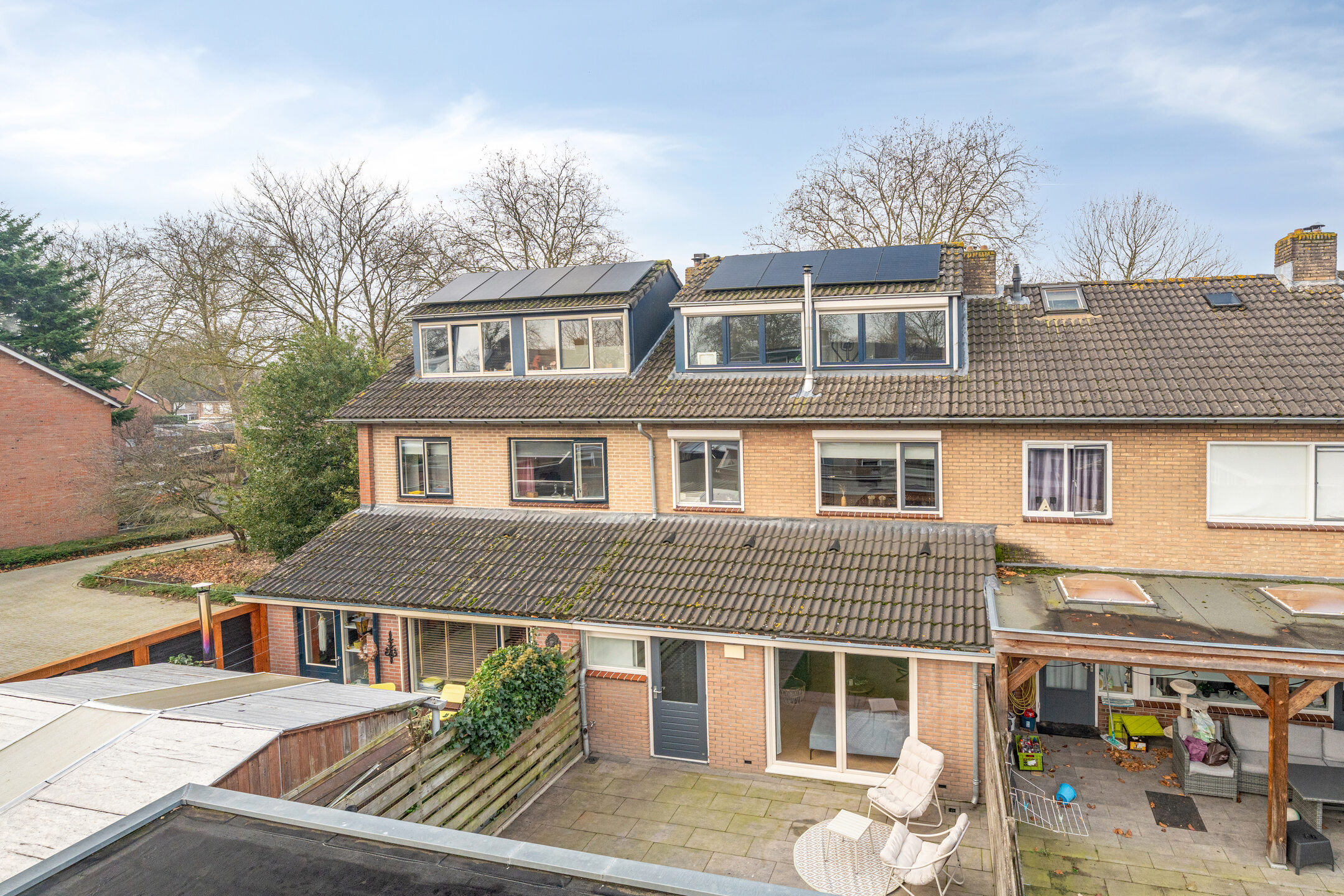 - Voorzien van dak-, gedeeltelijk gevel- en vloerisolatie en thermische beglazing