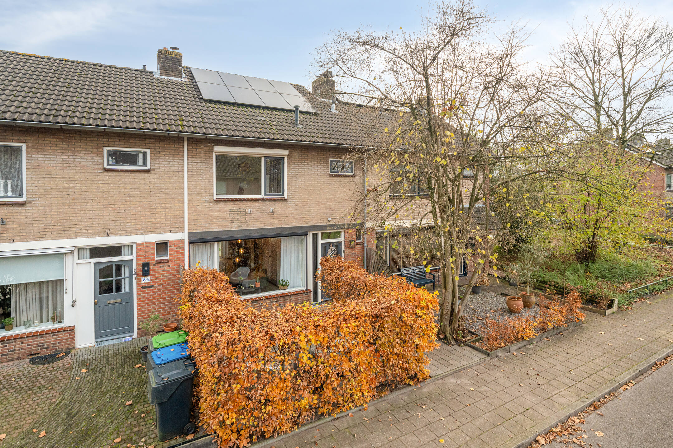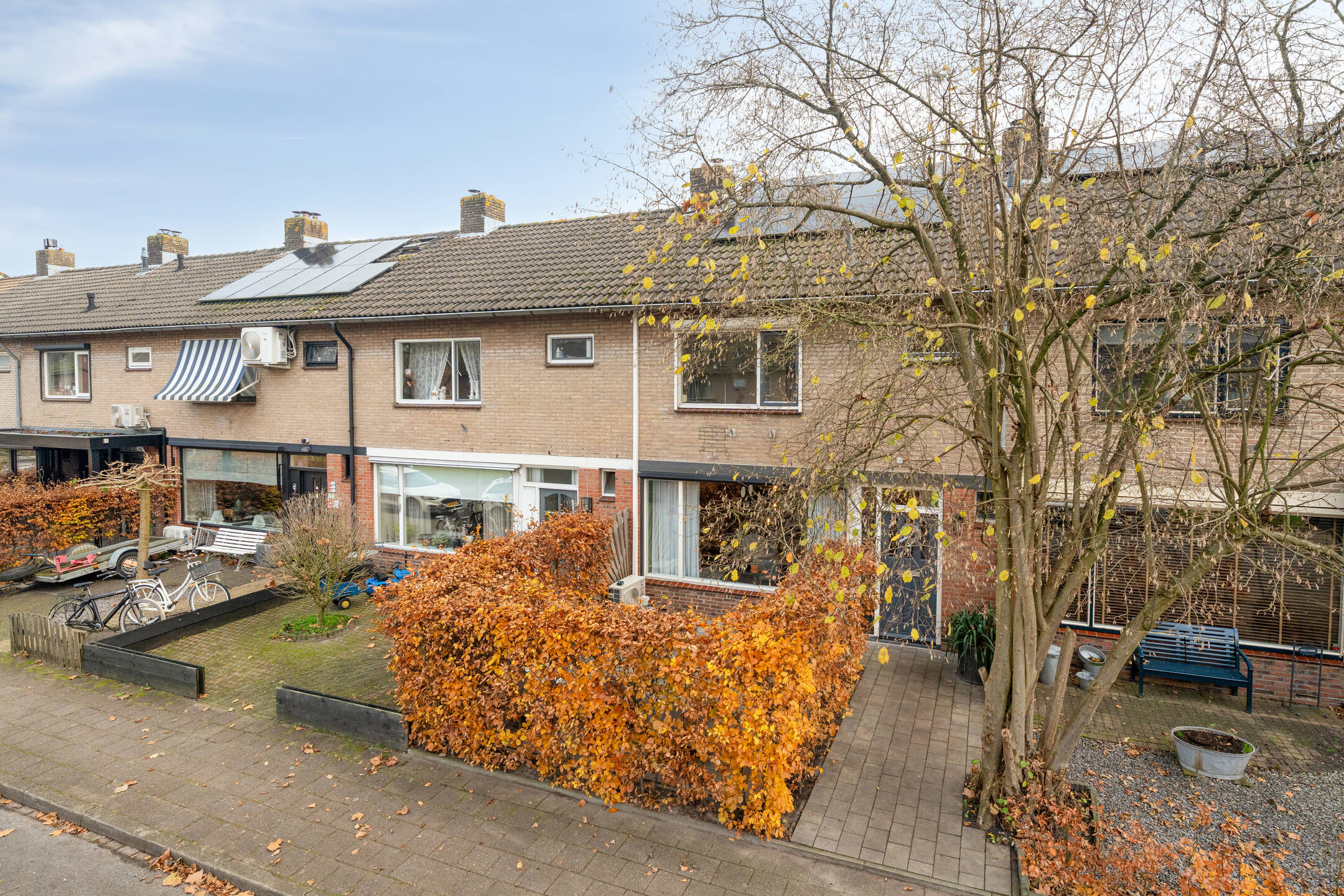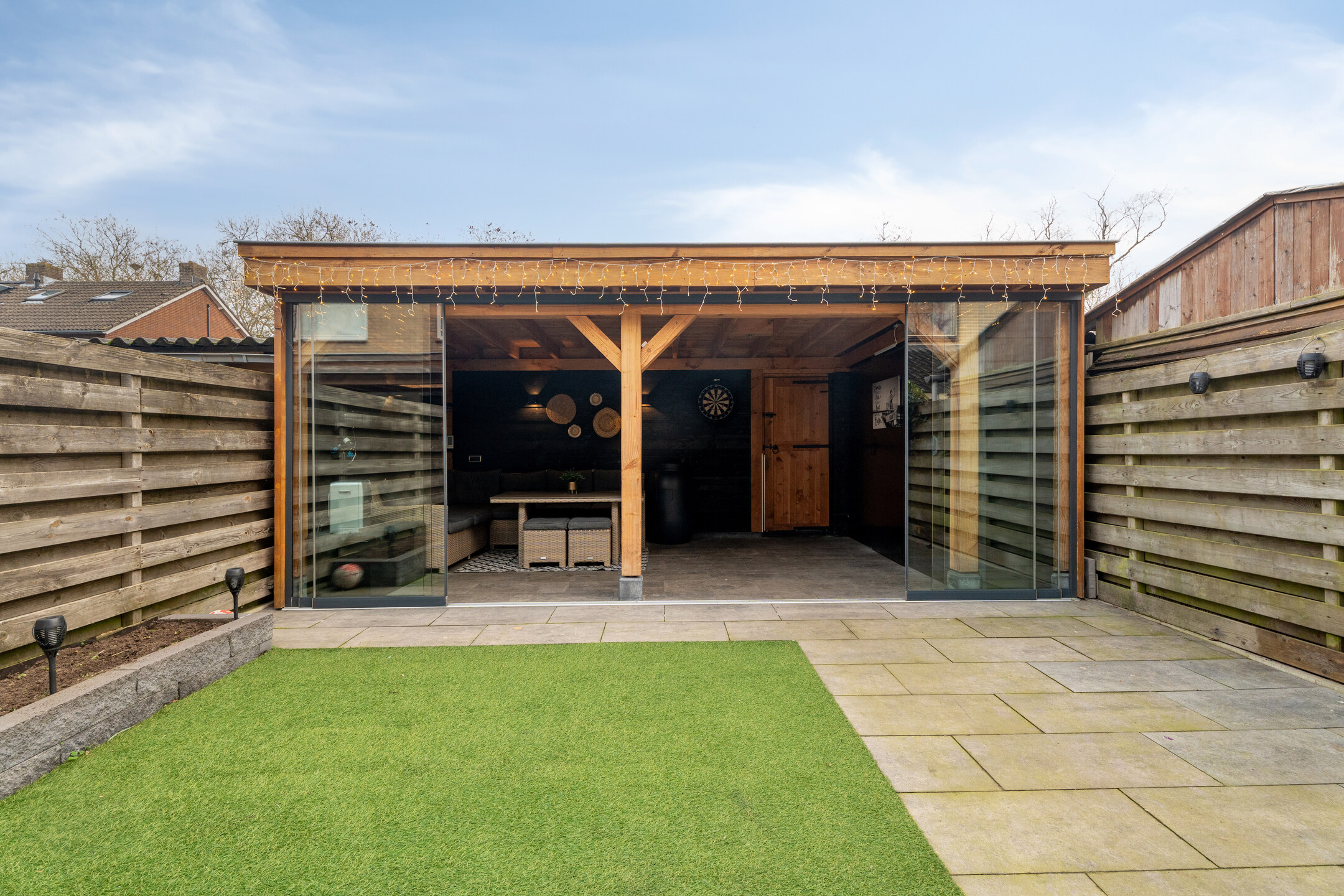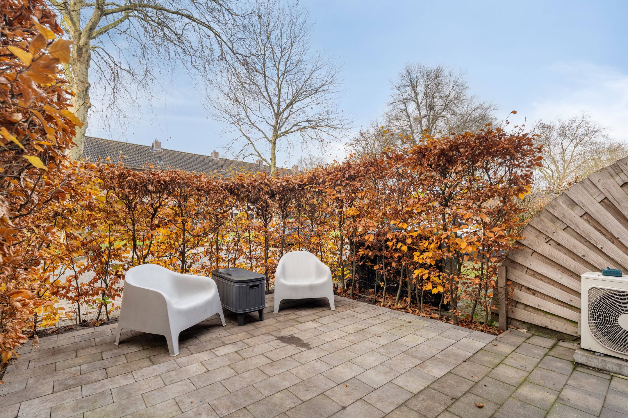 De voortuin is sfeervol ingericht met een haag die het zicht naar binnen ontneemt, waardoor je hier verrassend veel privacy hebt. De achtertuin is onderhoudsvriendelijk aangelegd met kunstgras en terrastegels. De absolute blikvanger is de grote veranda met glazen schuifpanelen: een plek waar je het hele jaar door buiten kunt zitten, eten of ontspannen. De veranda is verbonden met de berging, ideaal voor tuinspullen. Mocht je hier te weinig ruimte bij hebben? Dan is wellicht de garage voor jou een interessante optie. Achterin bevindt zich een achterom. De optionele garagebox ligt in de directe nabijheid.