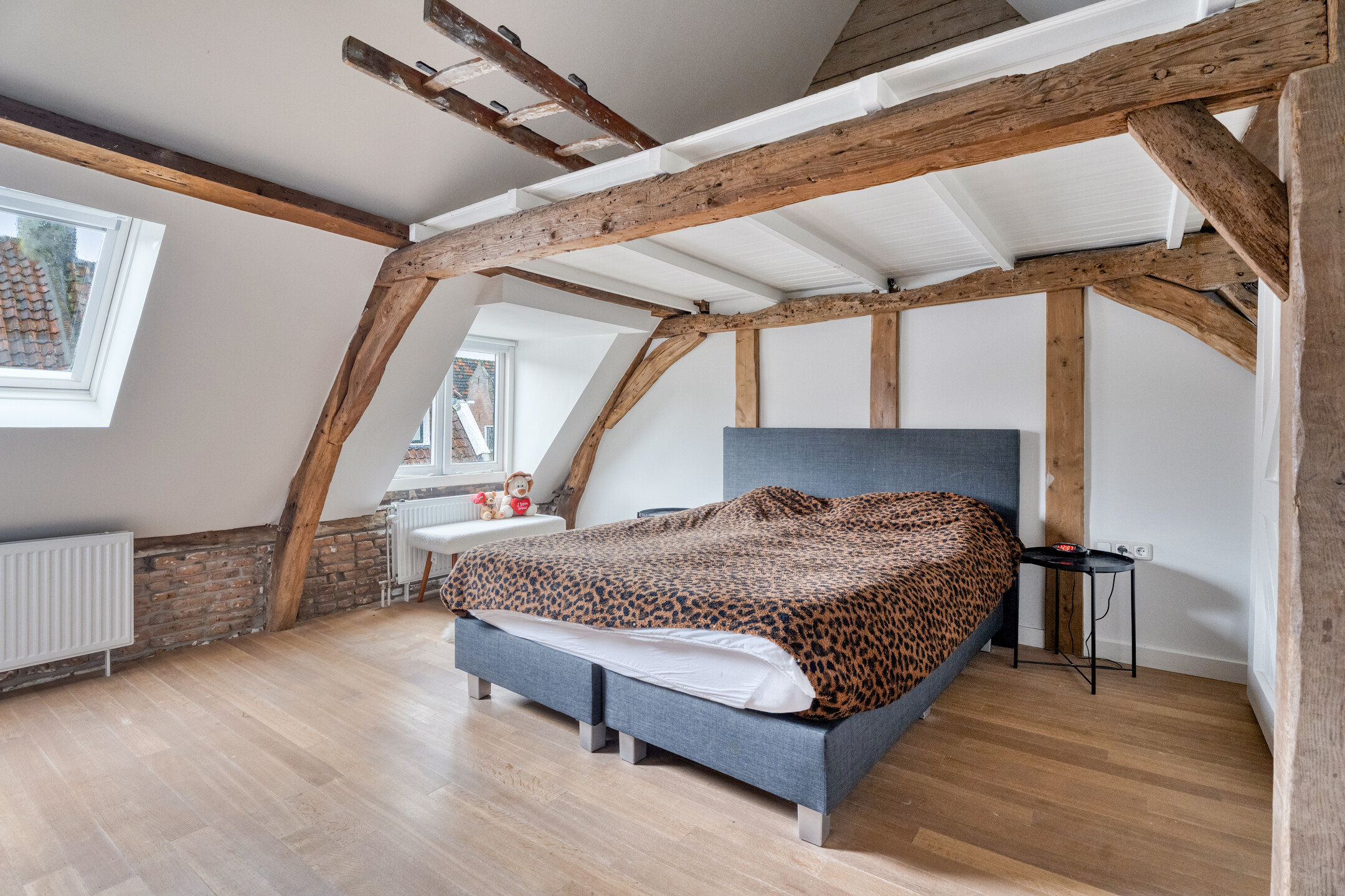 Op de eerste verdieping is een royale slaapkamer gerealiseerd met een sfeervol zicht door de houten gebinten. Daarnaast beschikt deze ruimte over een speelse vide. De indeling is functioneel met ruimte voor zowel een bed als werkplek. Een tweede kleinere kamer kan dienstdoen als kastenkamer, hobbyruimte of logeerkamer.