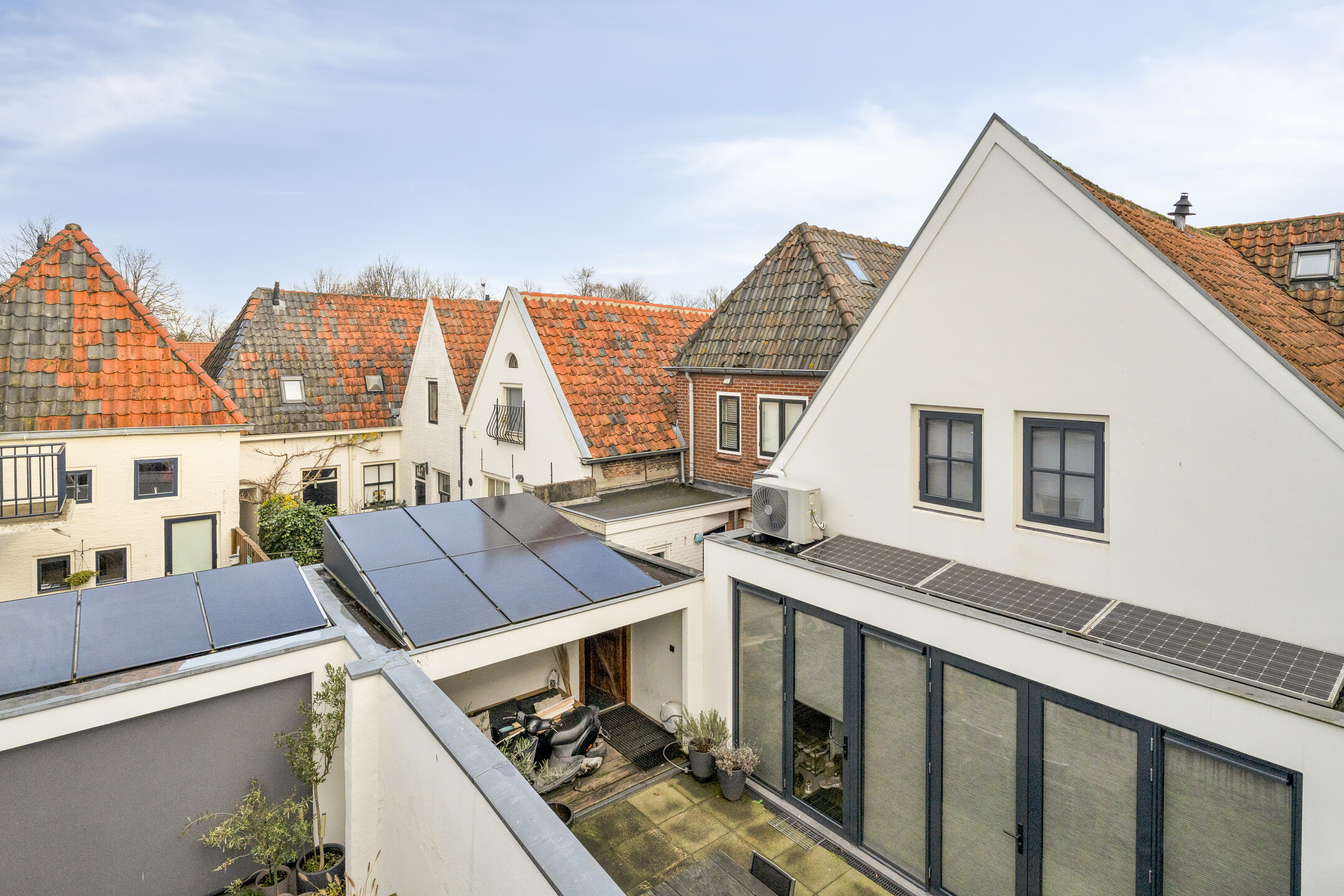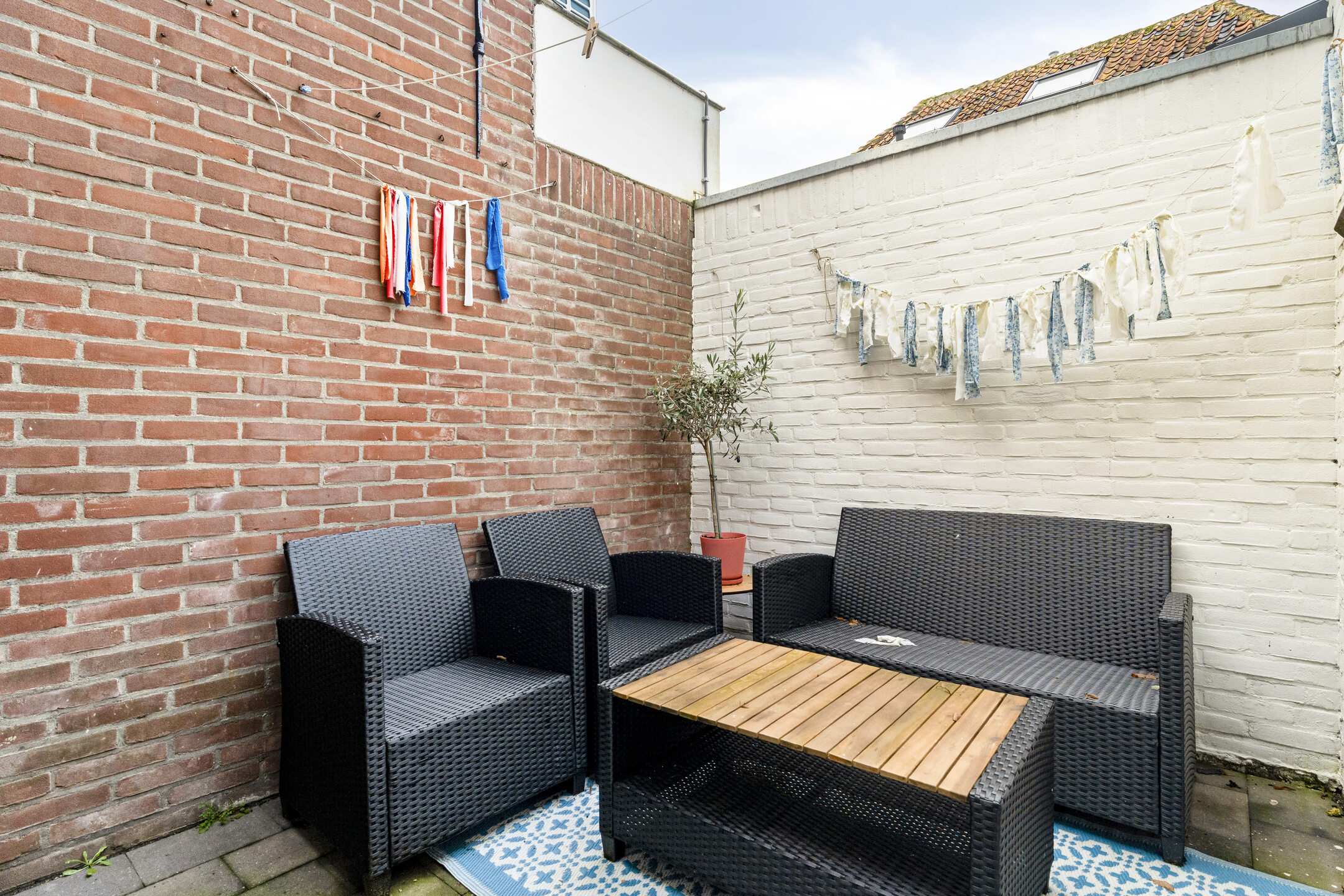 Voor de woning bevindt zich een eigen stoepterras met ruimte voor een zitje. Ideaal voor een kop koffie in de ochtendzon. Aan de achterzijde is een heerlijke binnenplaats waar je kan genieten van de privacy.