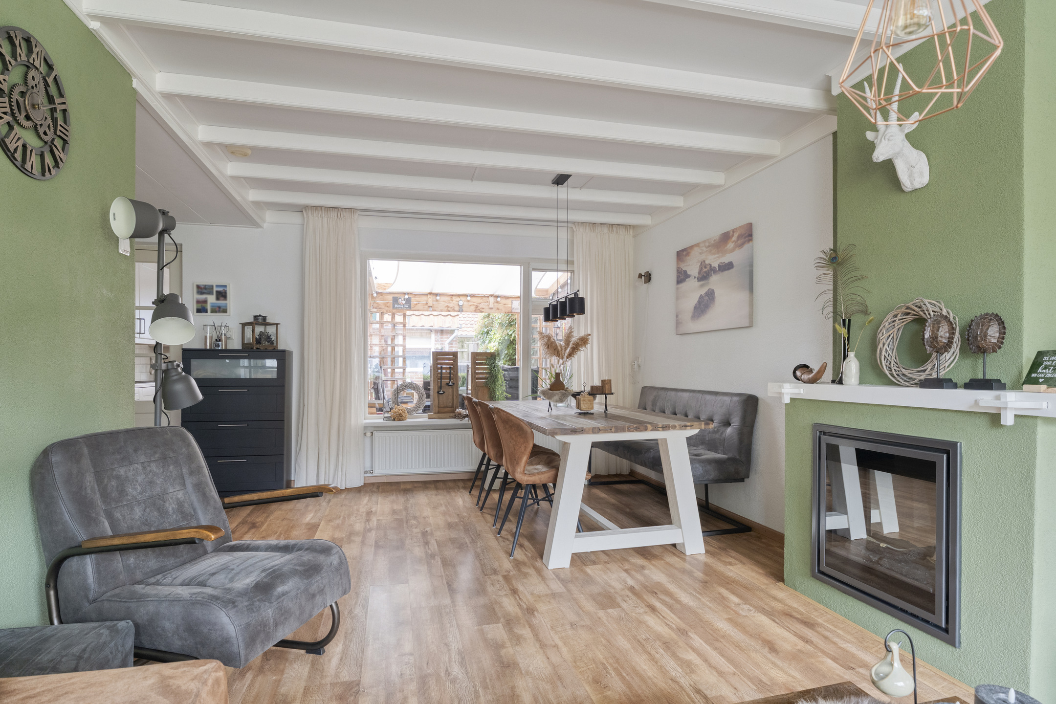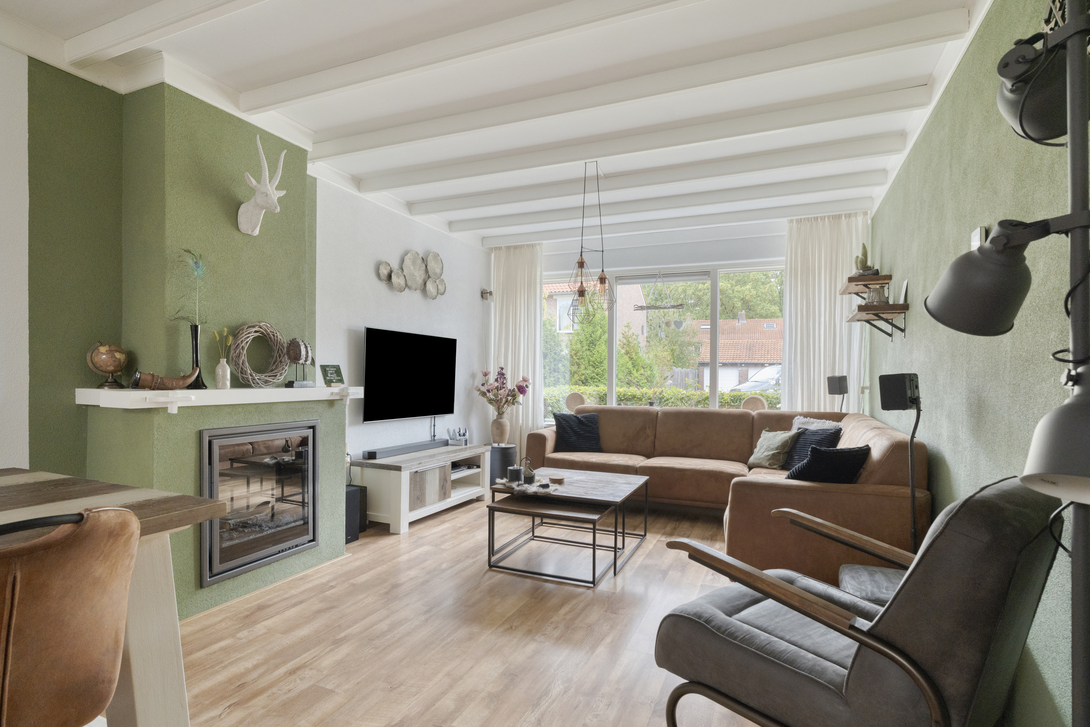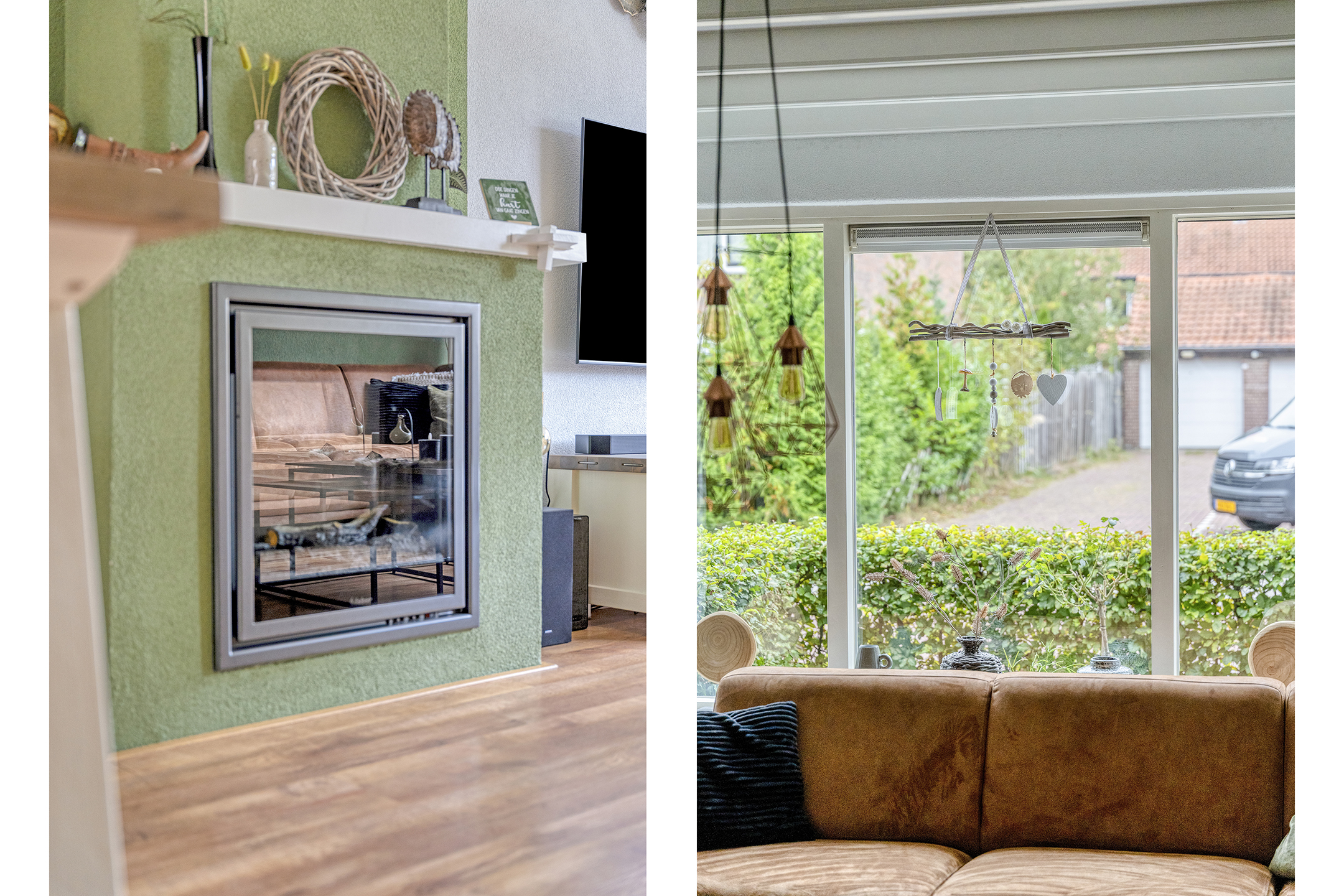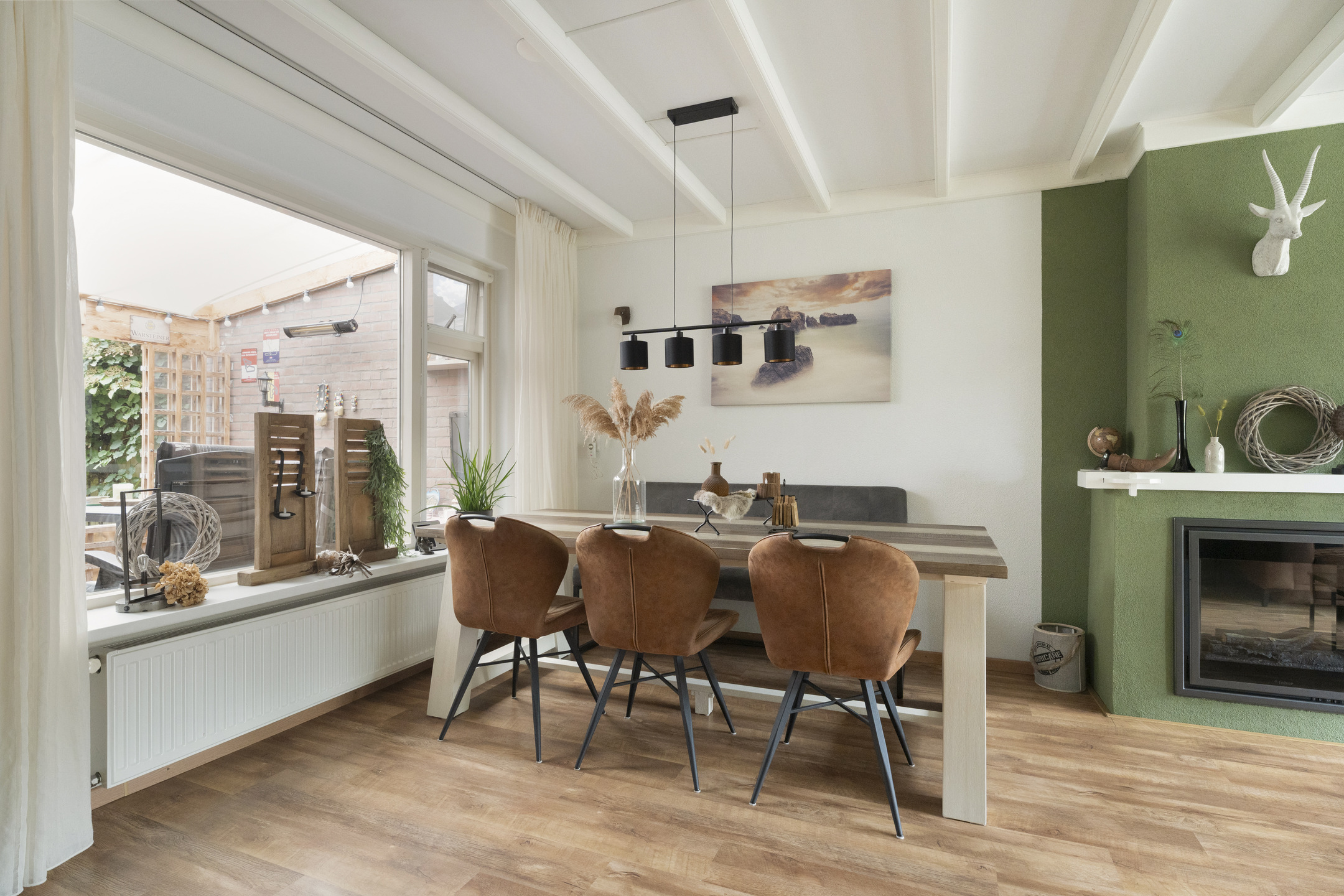 Via de verzorgde voortuin kom je binnen in de hal met trapopgang, meterkast, toilet en handige trapkast. De woonkamer is heerlijk licht dankzij de grote raampartijen aan voor- en achterzijde. De indeling biedt ruimte voor een gezellige zithoek aan de voorzijde en een eethoek aan de tuinzijde. De sfeervolle schouw met houtkachel zorgt voor een warme uitstraling.
