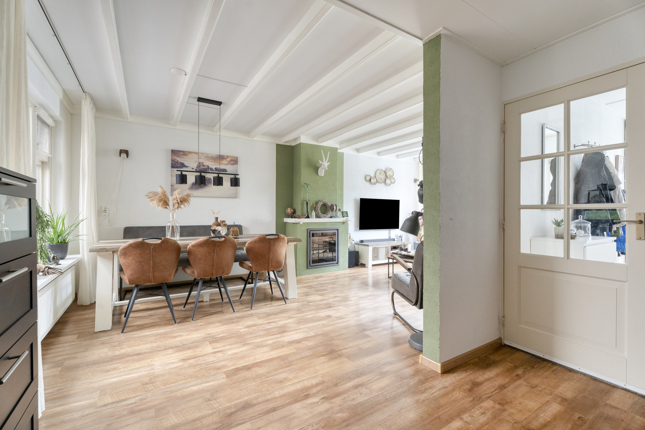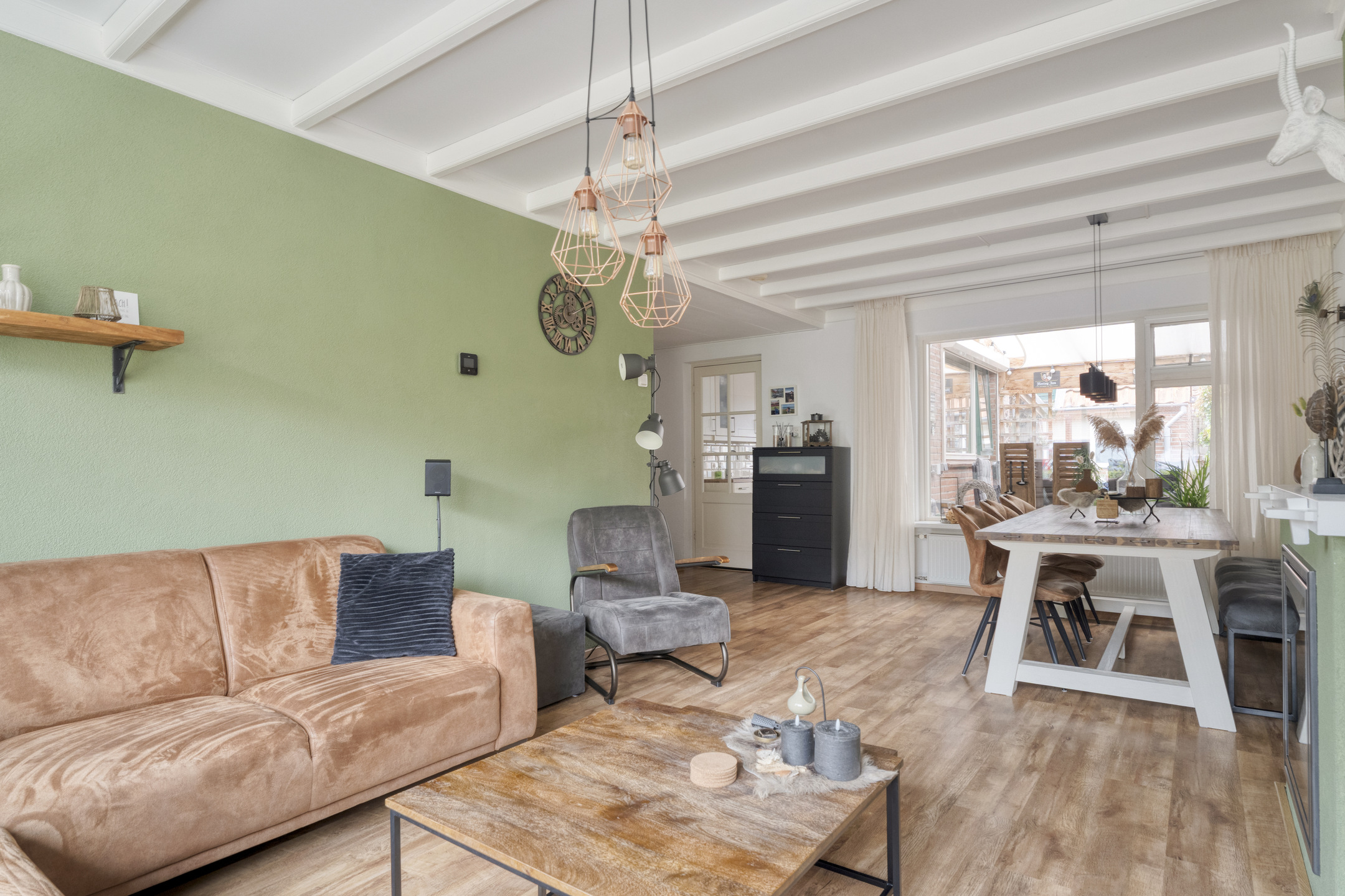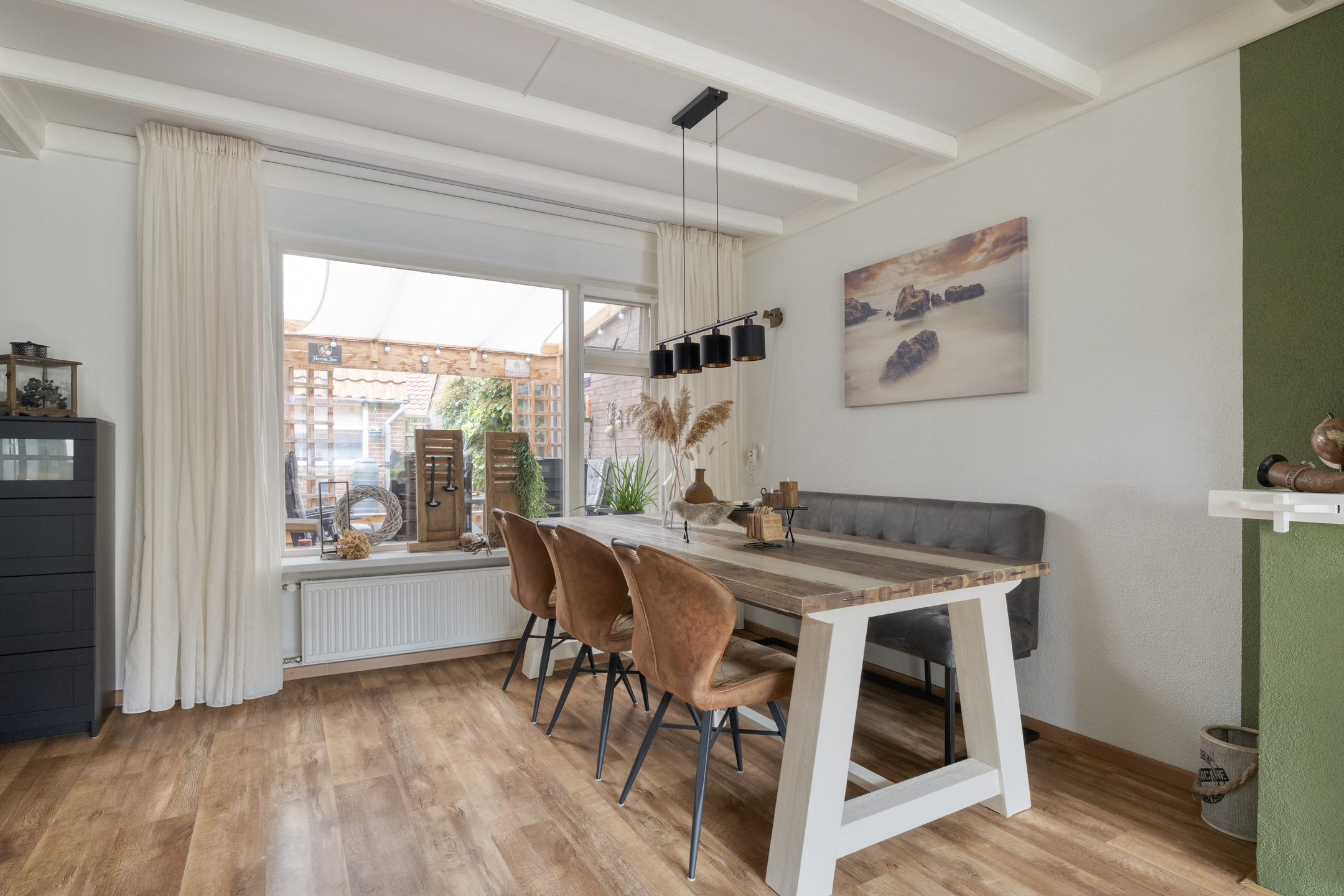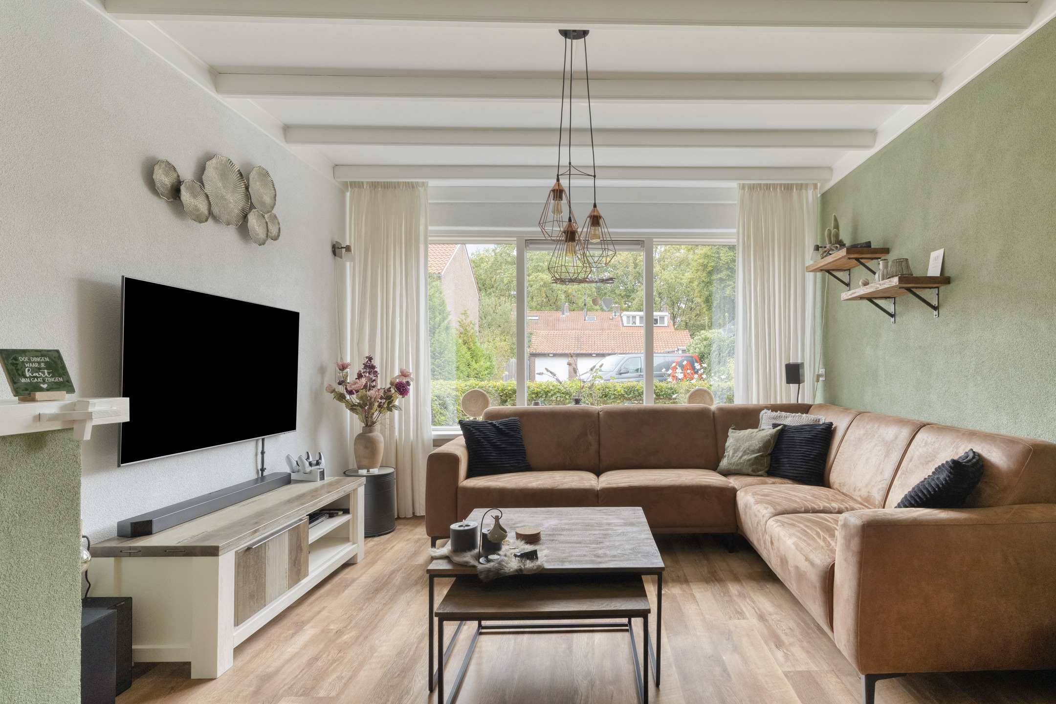 Via de verzorgde voortuin kom je binnen in de hal met trapopgang, meterkast, toilet en handige trapkast. De woonkamer is heerlijk licht dankzij de grote raampartijen aan voor- en achterzijde. De indeling biedt ruimte voor een gezellige zithoek aan de voorzijde en een eethoek aan de tuinzijde. De sfeervolle schouw met houtkachel zorgt voor een warme uitstraling.