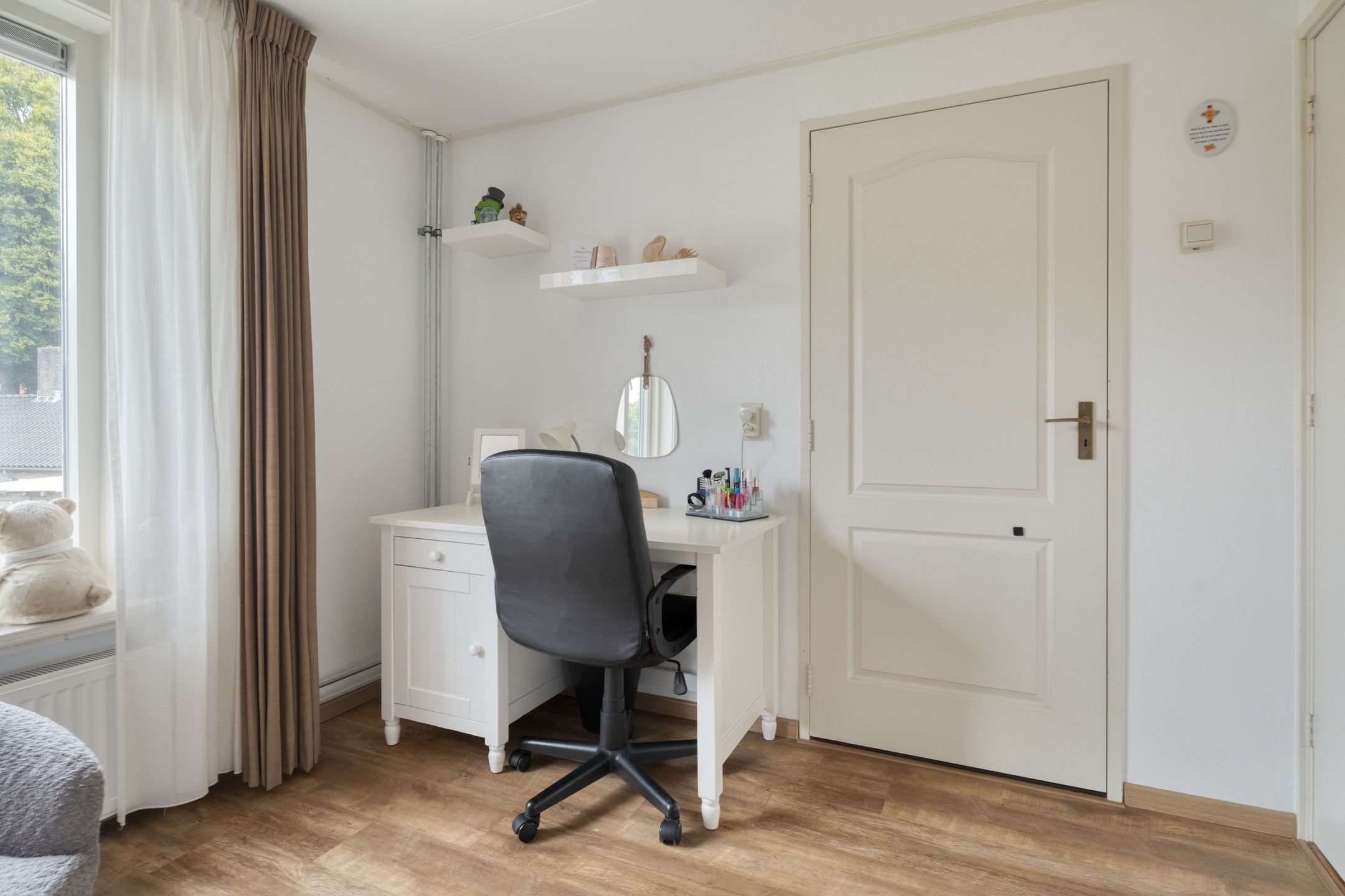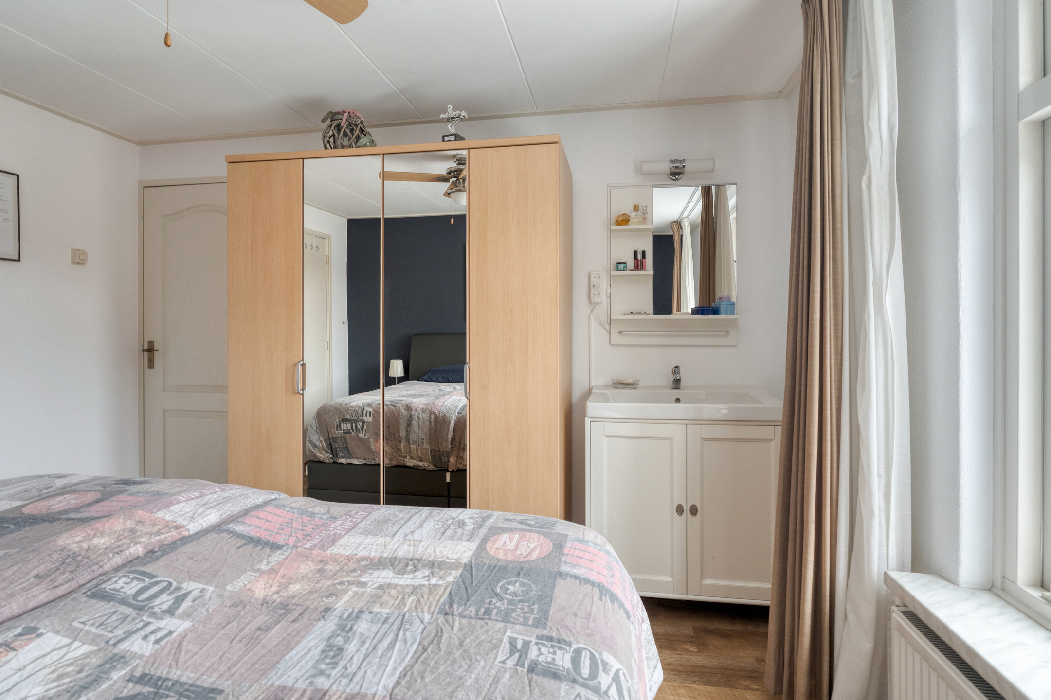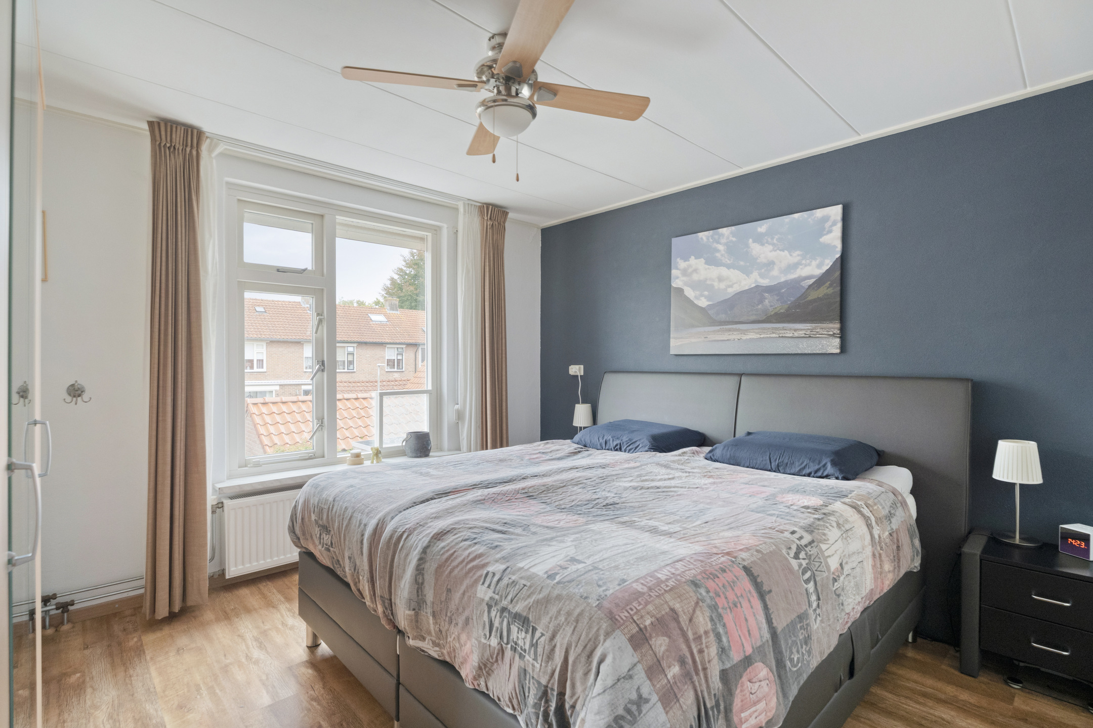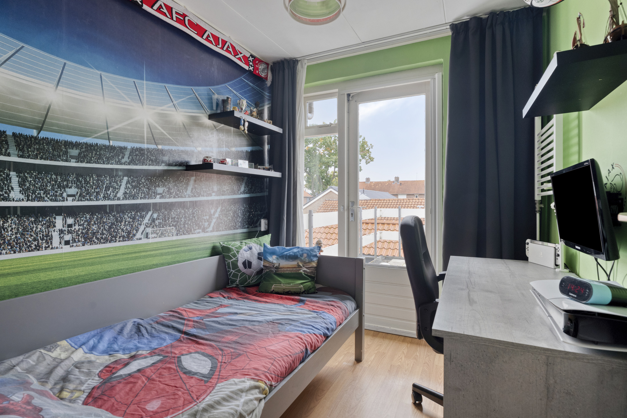 Op de eerste verdieping tref je drie nette slaapkamers aan, waarvan twee met vaste kastruimte. De kamer aan de achterzijde beschikt zelfs over een deur naar het balkon, een fijne plek voor je eerste kop koffie in de ochtendzon. De badkamer is compact maar praktisch en voorzien van een douche, wastafel en radiator.