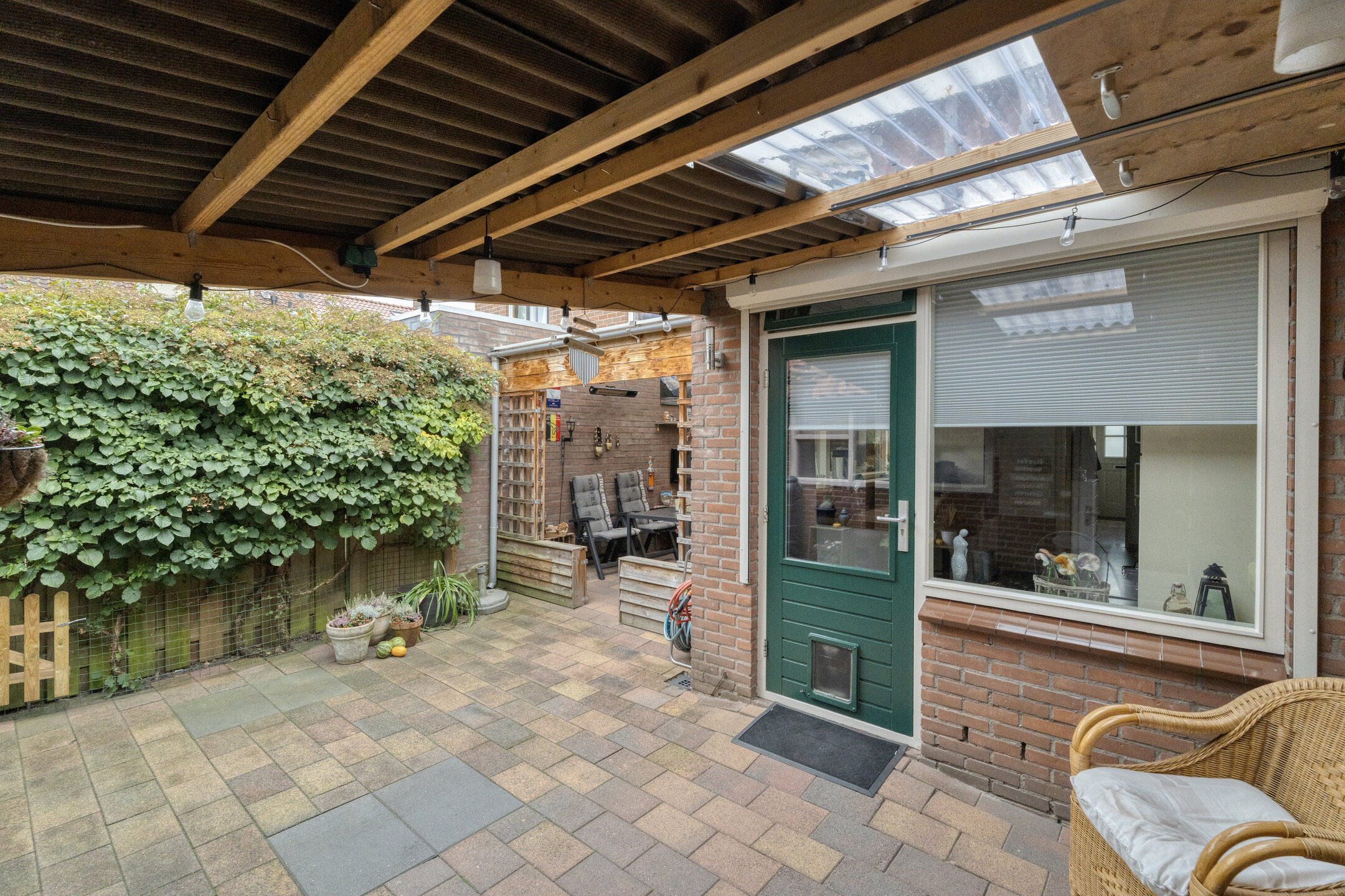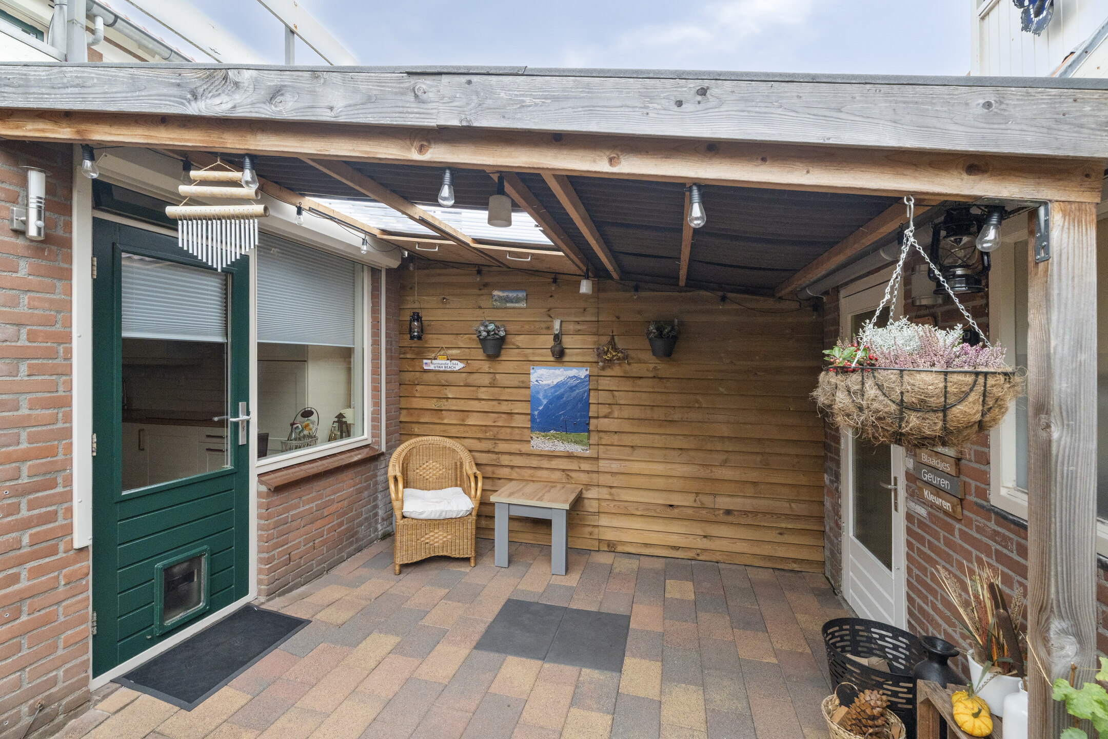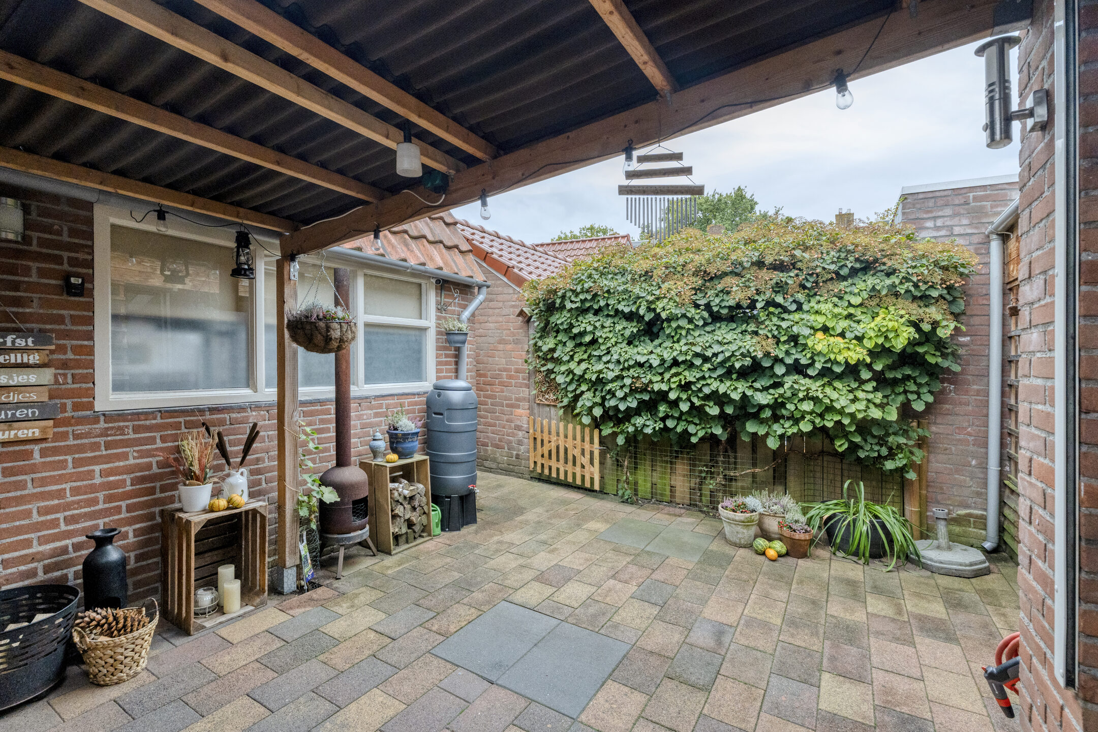 De achtertuin is onderhoudsvriendelijk aangelegd met sierbestrating, een fijne overkapping en volop ruimte om buiten te eten of te relaxen. Achter in de tuin staat een ruime stenen berging van circa 22 m² met daarboven nog een mooie verdieping, ideaal voor fietsen, gereedschap of hobbyruimte. Via de achterom is de tuin ook goed bereikbaar met de fiets.