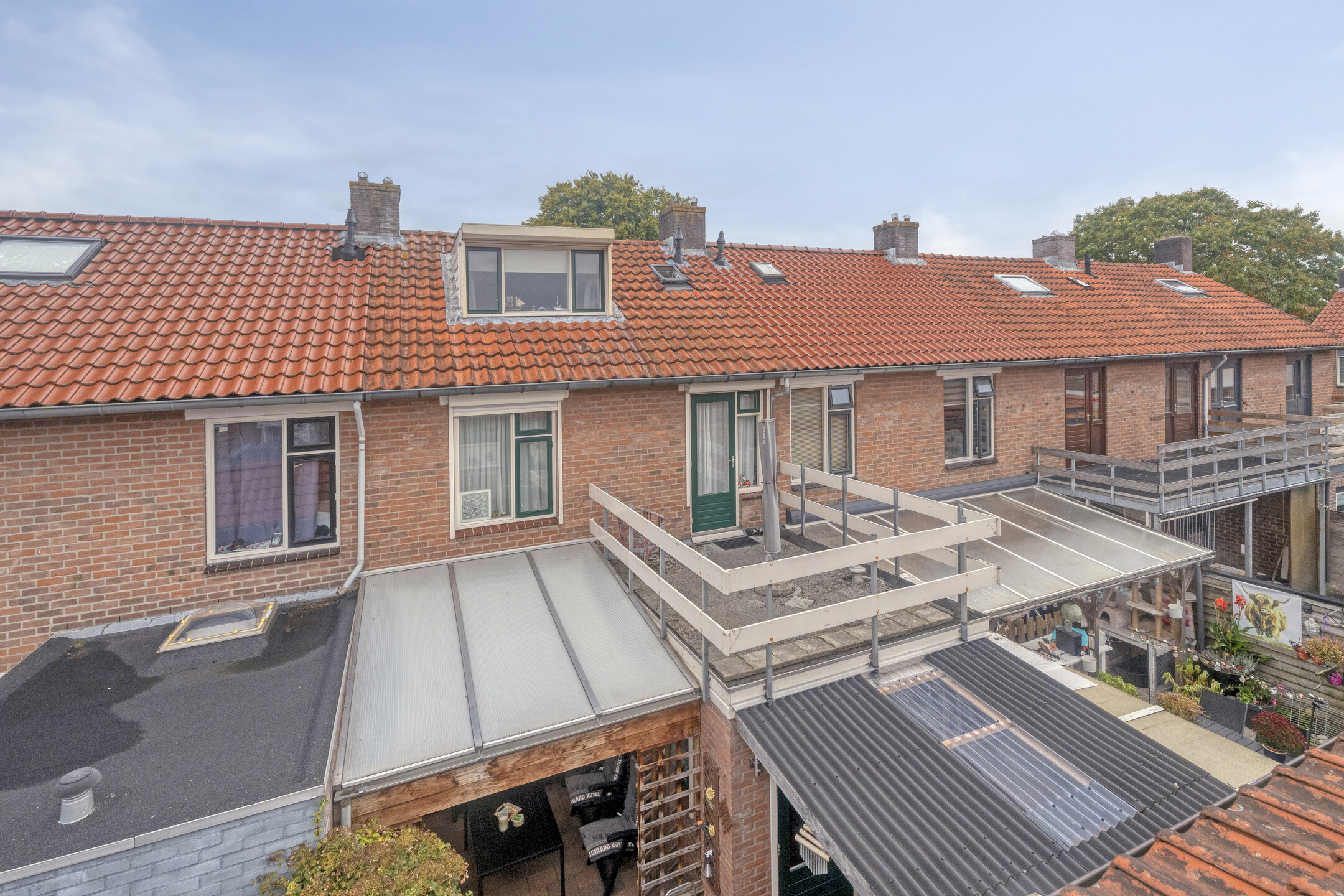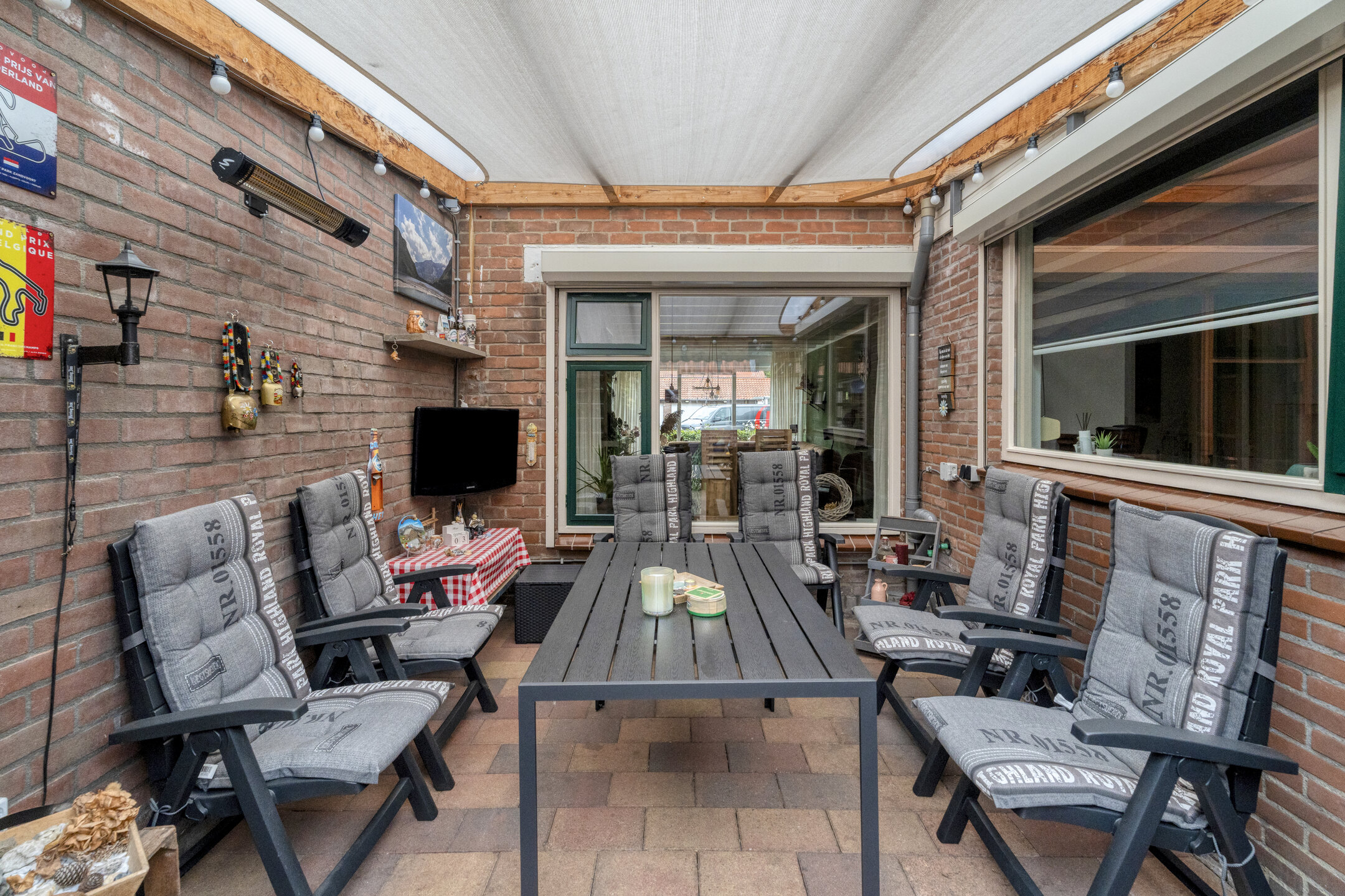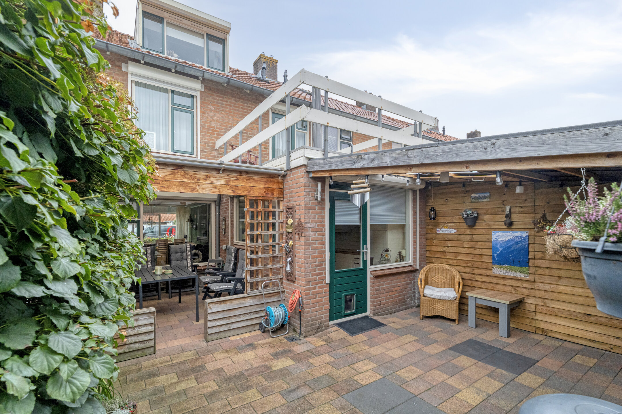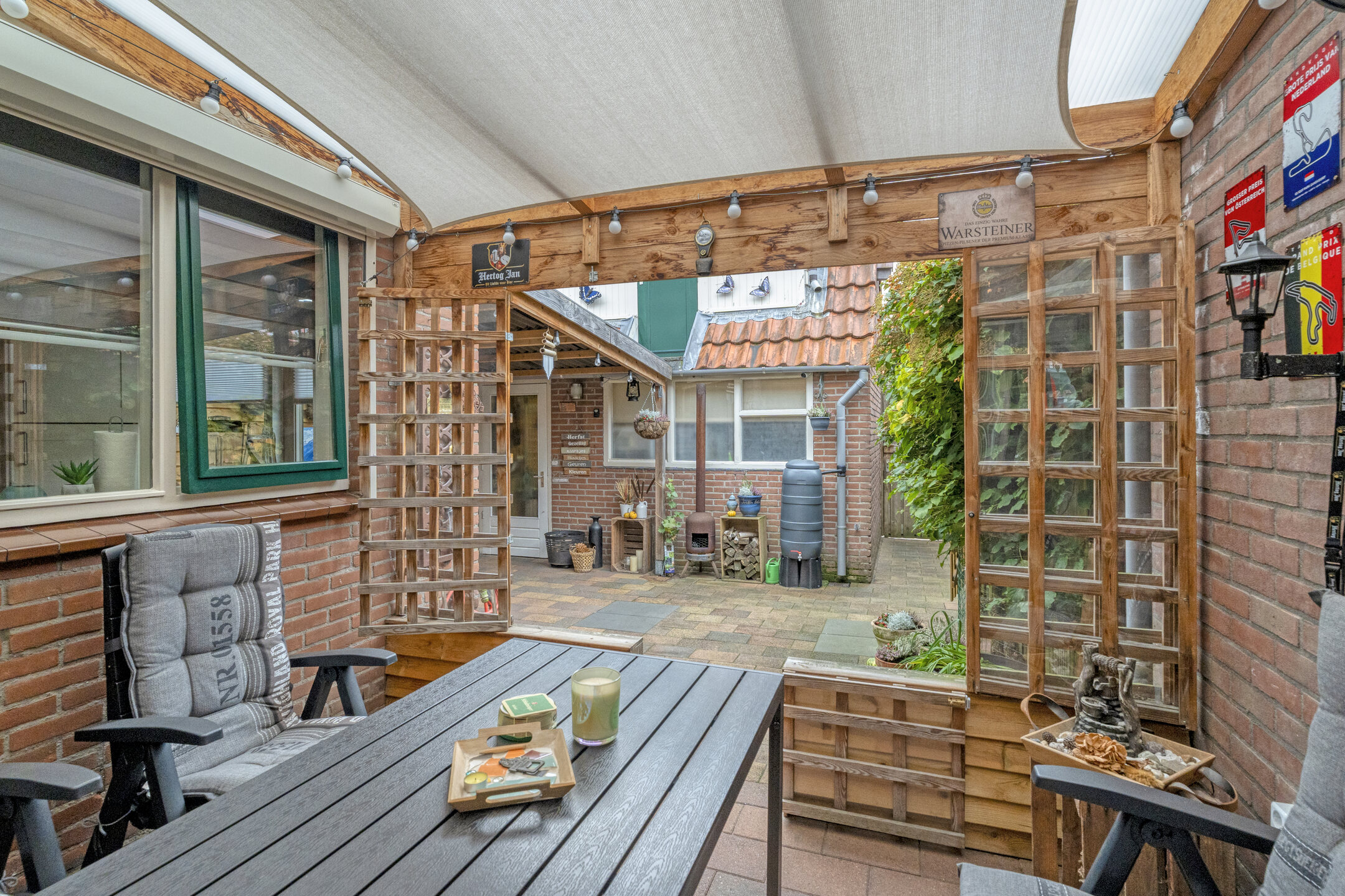 De achtertuin is onderhoudsvriendelijk aangelegd met sierbestrating, een fijne overkapping en volop ruimte om buiten te eten of te relaxen. Achter in de tuin staat een ruime stenen berging van circa 22 m² met daarboven nog een mooie verdieping, ideaal voor fietsen, gereedschap of hobbyruimte. Via de achterom is de tuin ook goed bereikbaar met de fiets.