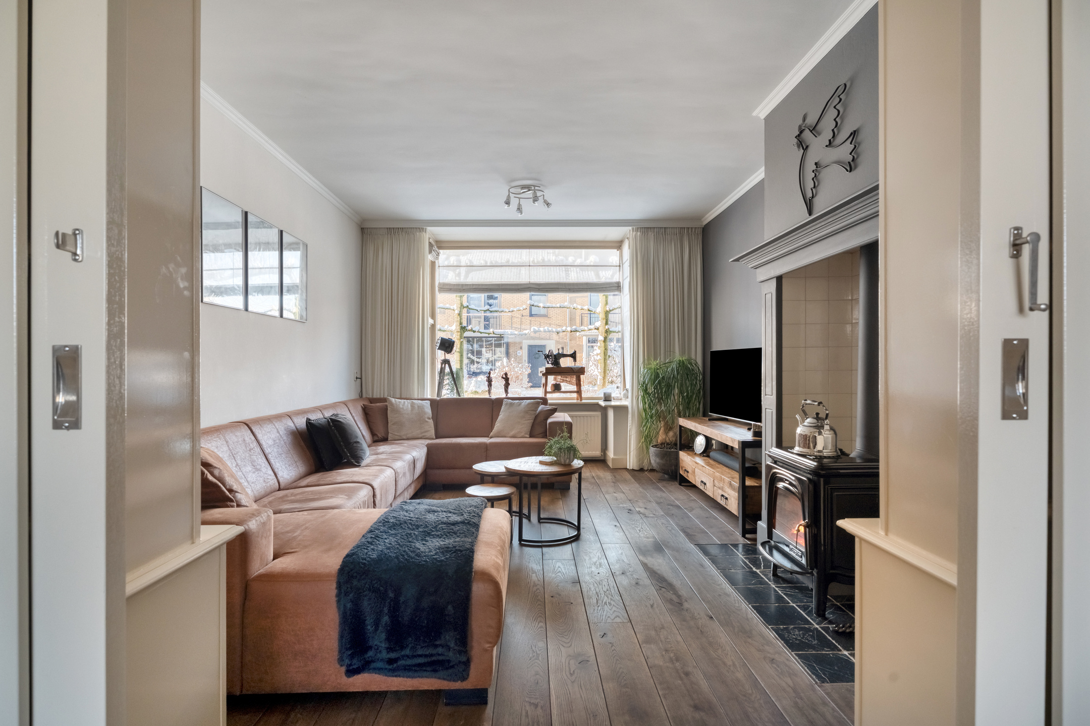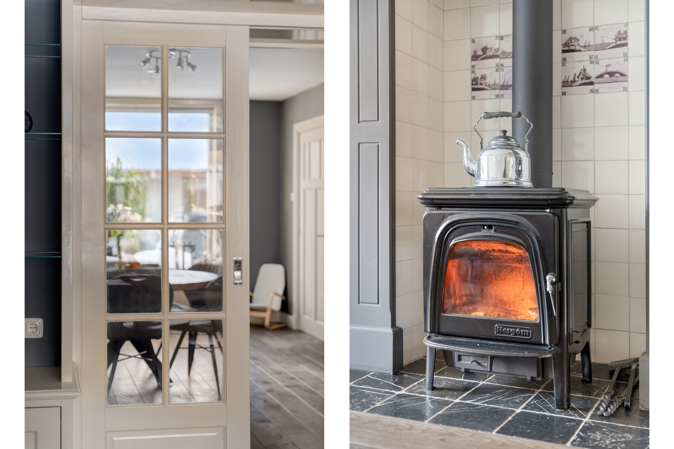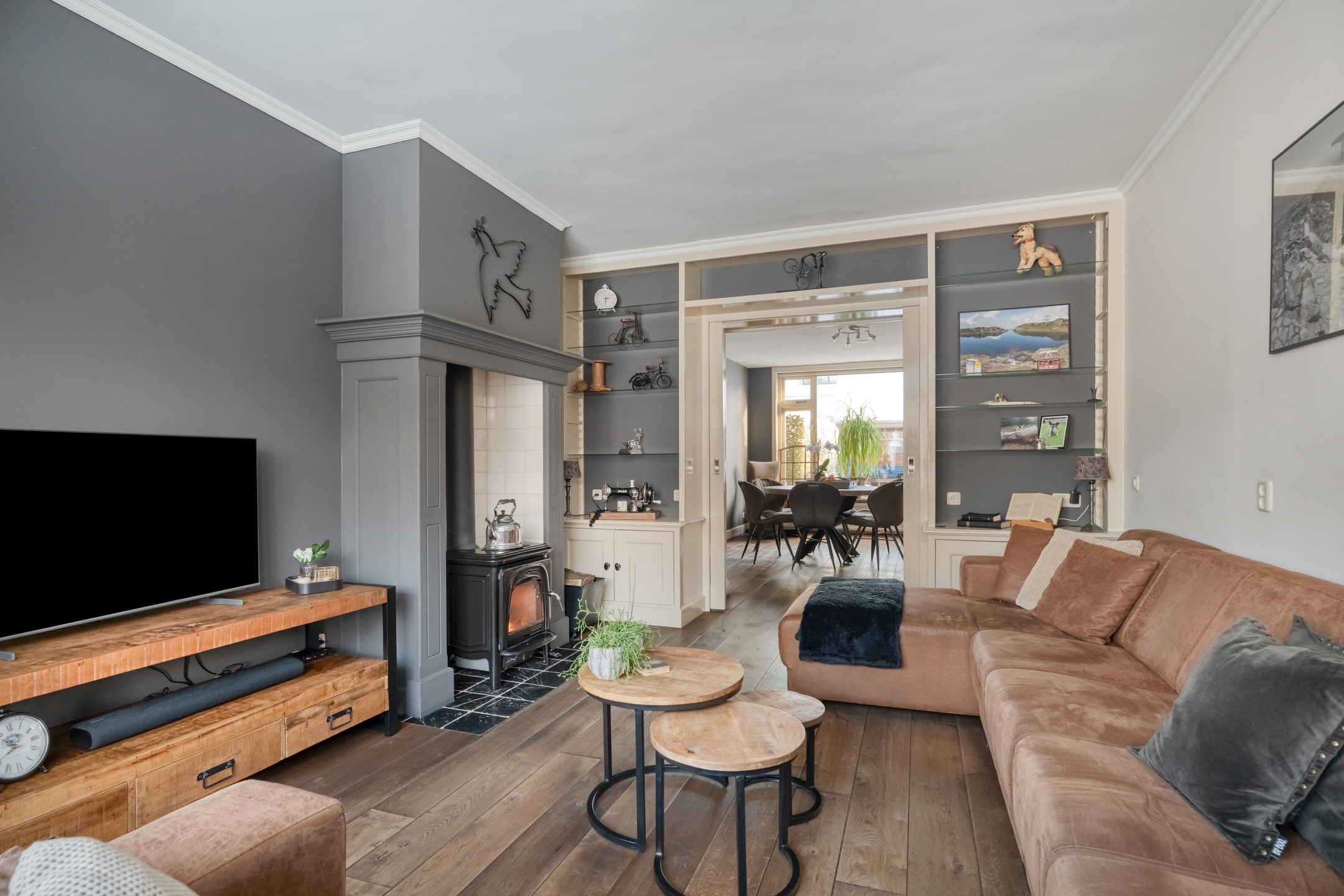 De huidige bewoners hebben hier ruim 11 jaar met veel plezier gewoond. Dat zie je terug in de afwerking en de warme sfeer van het huis. De woonkamer met houtkachel loopt over in een ruime eetkamer met ensuite deuren en een karakteristieke kastenwand. De keuken ligt aan de achterzijde en biedt zicht door de bijkeuken op de diepe achtertuin met sfeervolle overkapping. Op de verdiepingen zijn maar liefst vier slaapkamers aanwezig, en de badkamer is in 2018 vernieuwd.