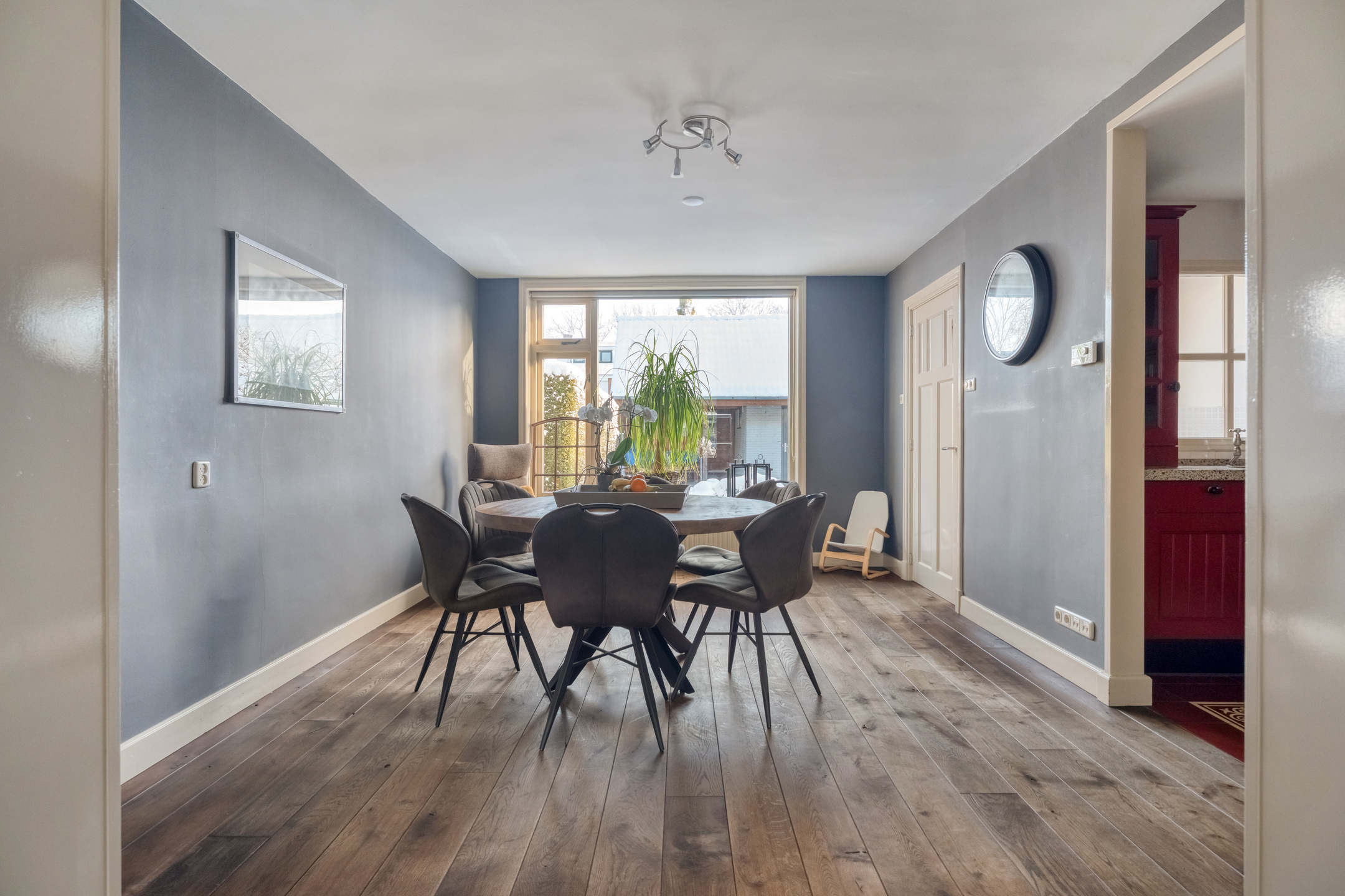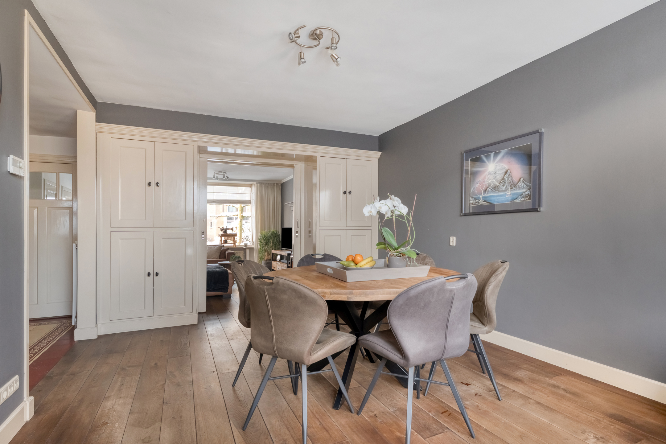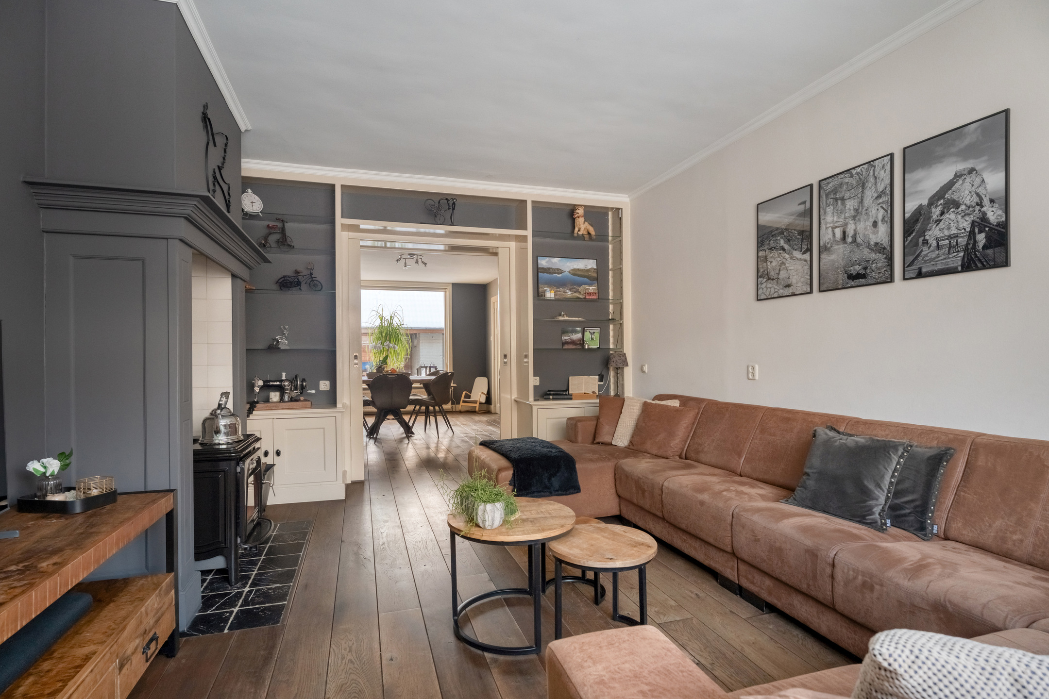 De huidige bewoners hebben hier ruim 11 jaar met veel plezier gewoond. Dat zie je terug in de afwerking en de warme sfeer van het huis. De woonkamer met houtkachel loopt over in een ruime eetkamer met ensuite deuren en een karakteristieke kastenwand. De keuken ligt aan de achterzijde en biedt zicht door de bijkeuken op de diepe achtertuin met sfeervolle overkapping. Op de verdiepingen zijn maar liefst vier slaapkamers aanwezig, en de badkamer is in 2018 vernieuwd.