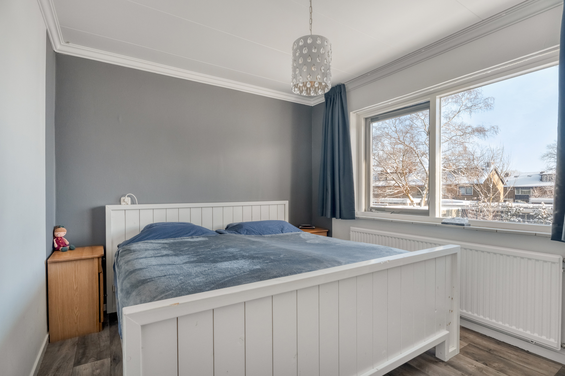 Op de eerste verdieping zijn drie slaapkamers aanwezig, allemaal voorzien van prettige afmetingen en veel lichtinval. De grootste slaapkamer aan de voorzijde heeft toegang tot een balkon. Ook is er een vaste kast op de overloop. De badkamer is in 2018 vernieuwd en voorzien van een inloopdouche, hangtoilet en dubbel wastafelmeubel. De afwerking is modern, met natuurlijke tinten, een houten plafond en eigentijdse tegels.