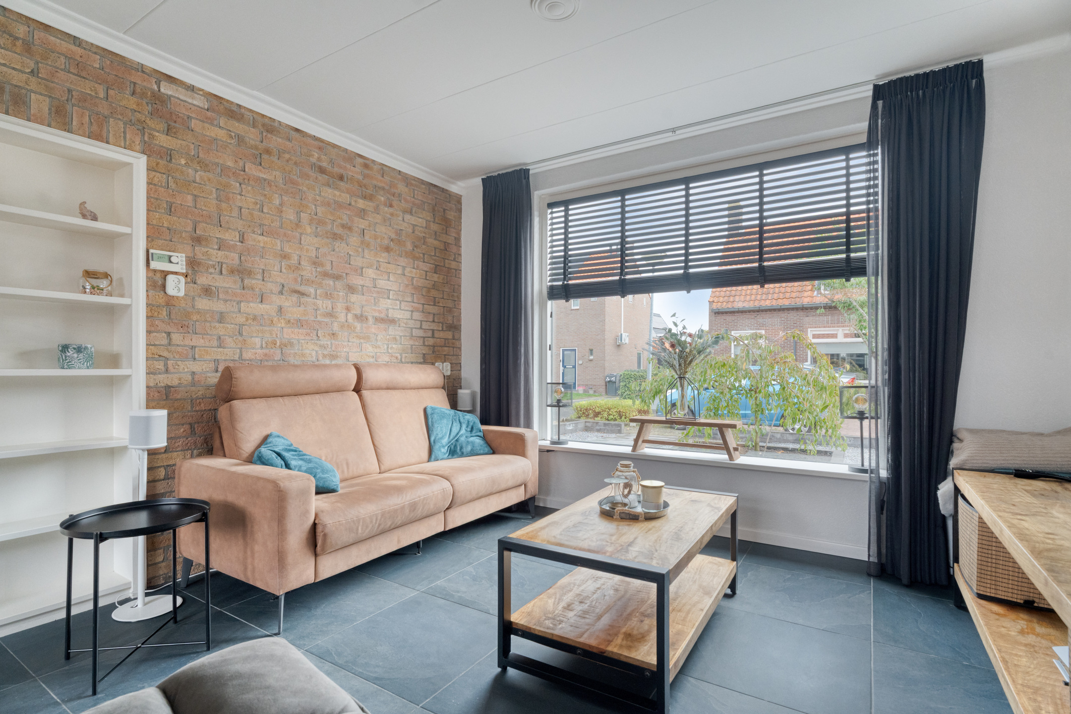 Via de voortuin loop je naar de voordeur en kom je binnen in de hal met toilet, trapopgang en een verdiepte trapkast. Vanuit de hal heb je toegang tot de halfopen keuken, die grenst aan de lichte doorzonwoonkamer. Je zou hier bijvoorbeeld de muur kunnen doorbreken om een open keuken te realiseren. Door de ramen aan voor- en achterzijde valt er veel daglicht naar binnen en dankzij de openslaande deuren verbind je de woonkamer gemakkelijk met de achtertuin.