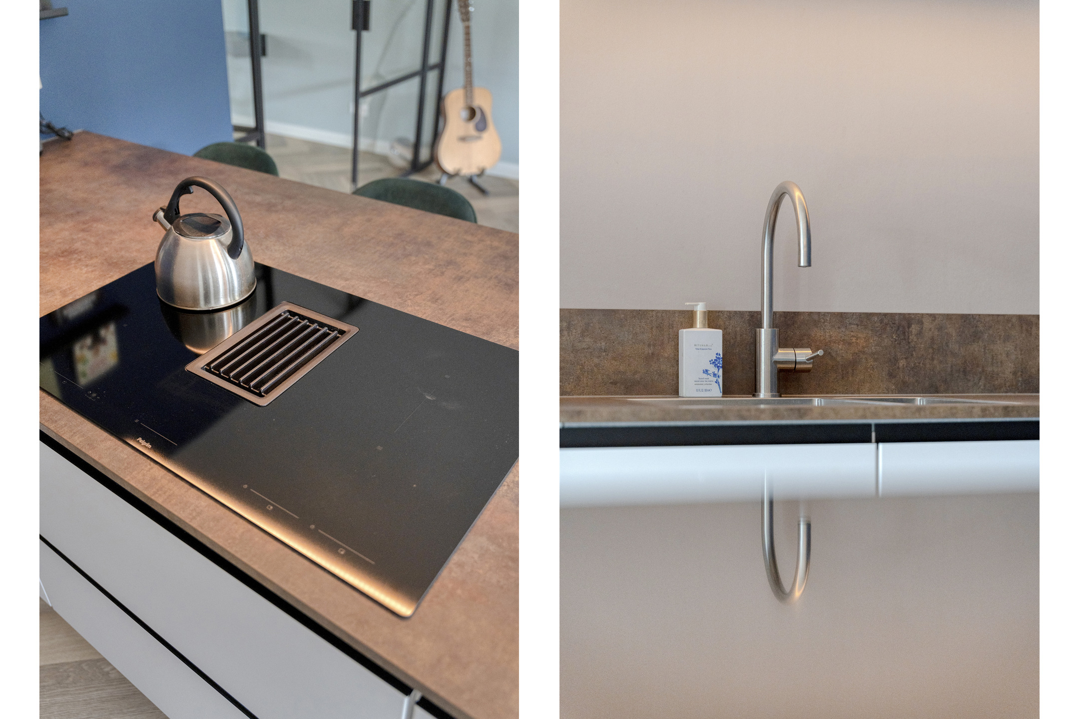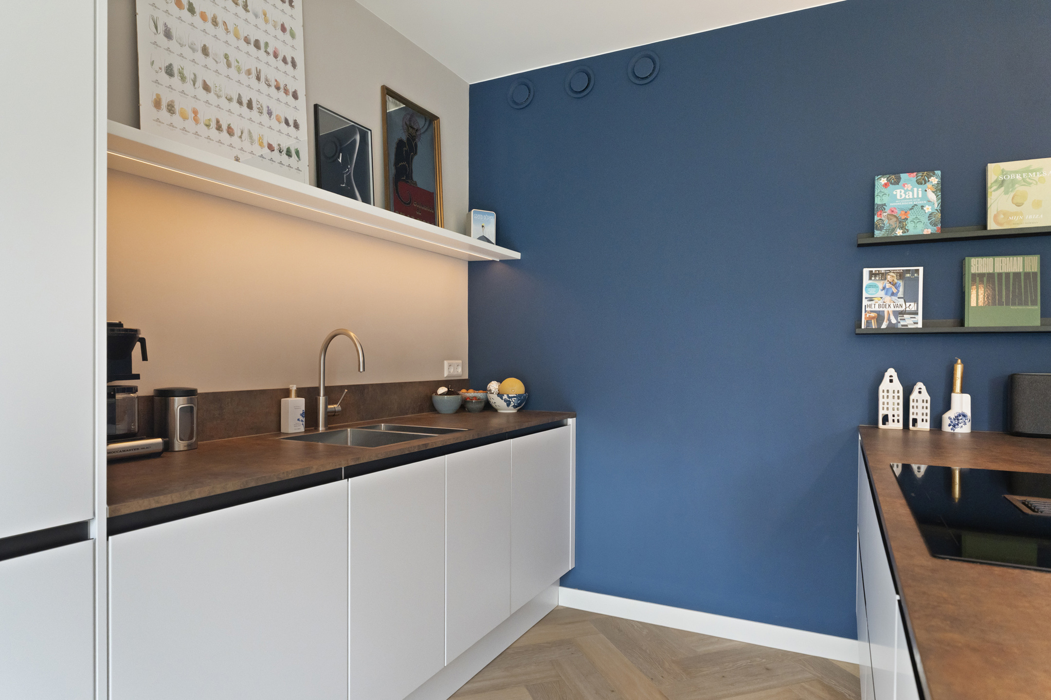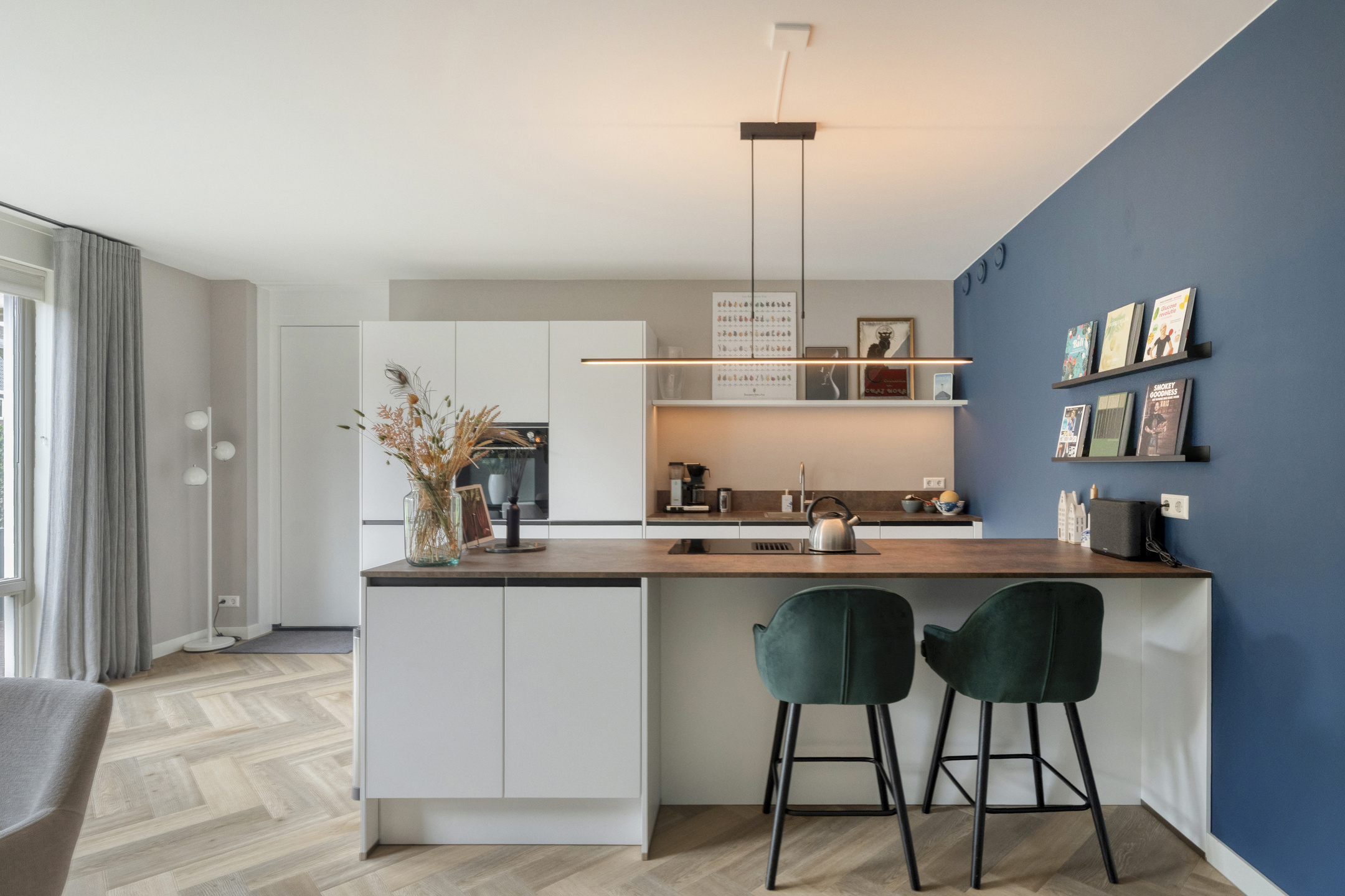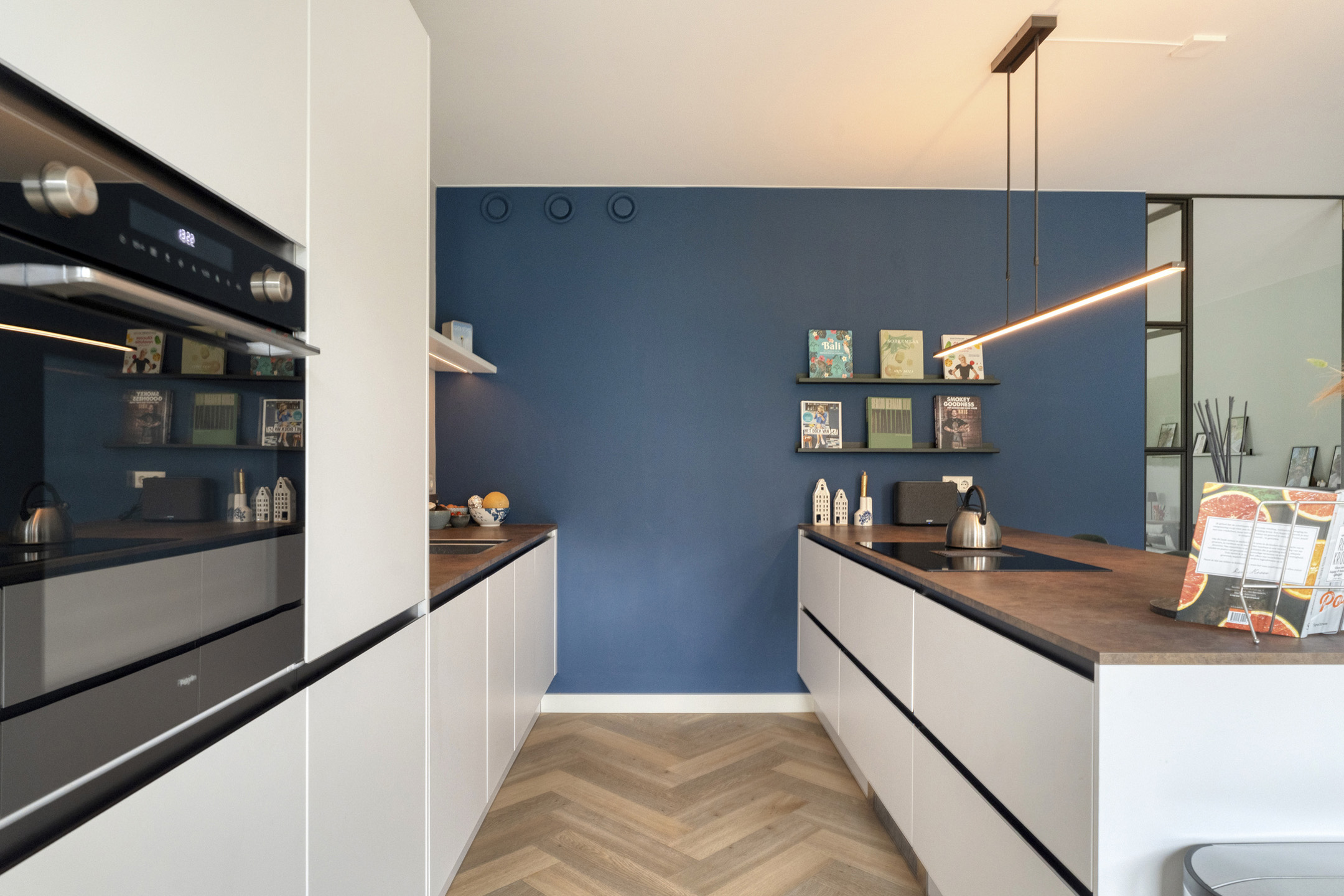 De leefkeuken is een echte blikvanger. De moderne keukenopstelling is voorzien van hoogwaardige inbouwapparatuur, een strak kookeiland en een bar waar je gezellig aan kunt zitten. Dankzij de dubbele openslaande deuren staat de keuken in directe verbinding met het terras en de tuin, ideaal voor zomeravonden of voor een kop koffie in de ochtendzon.