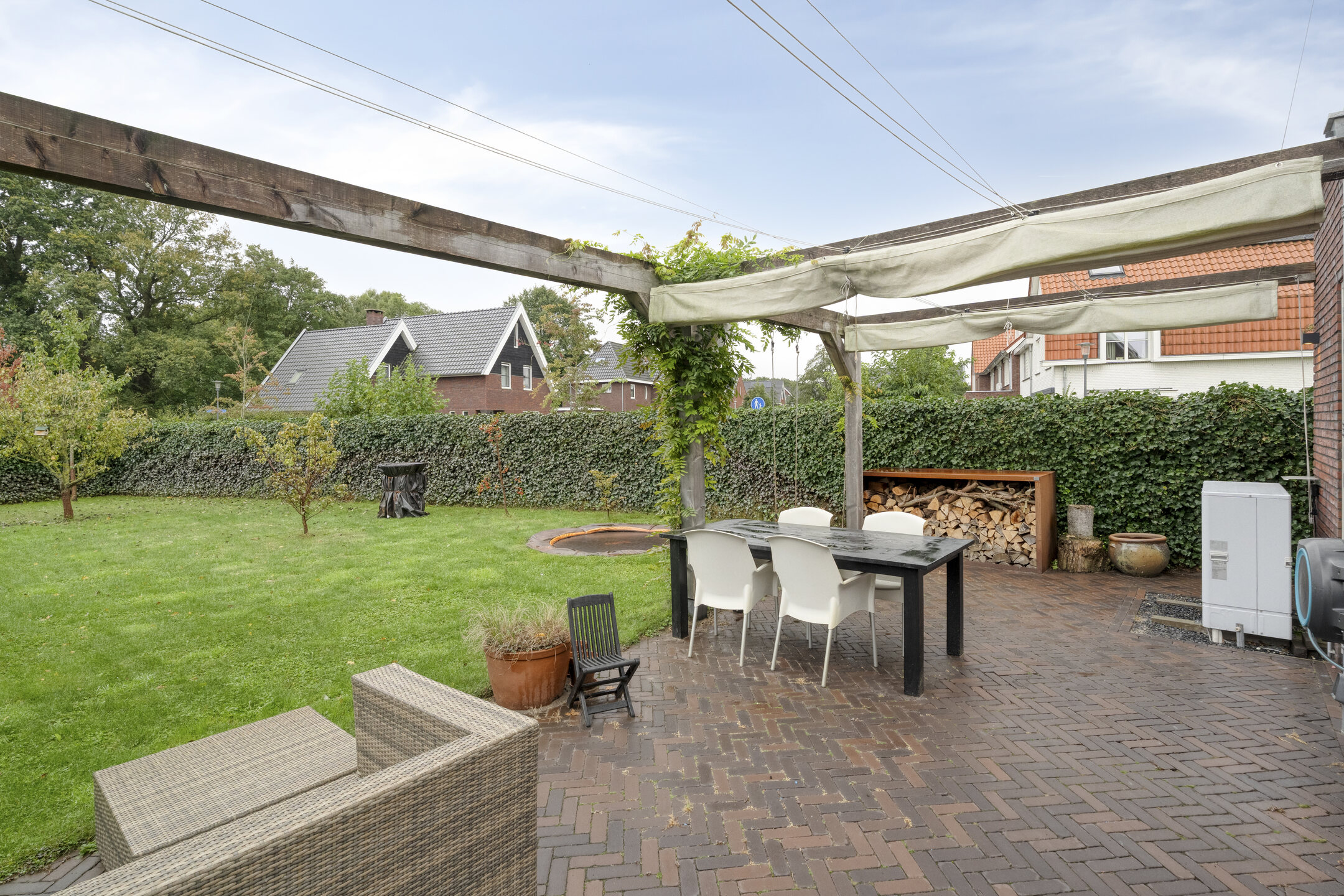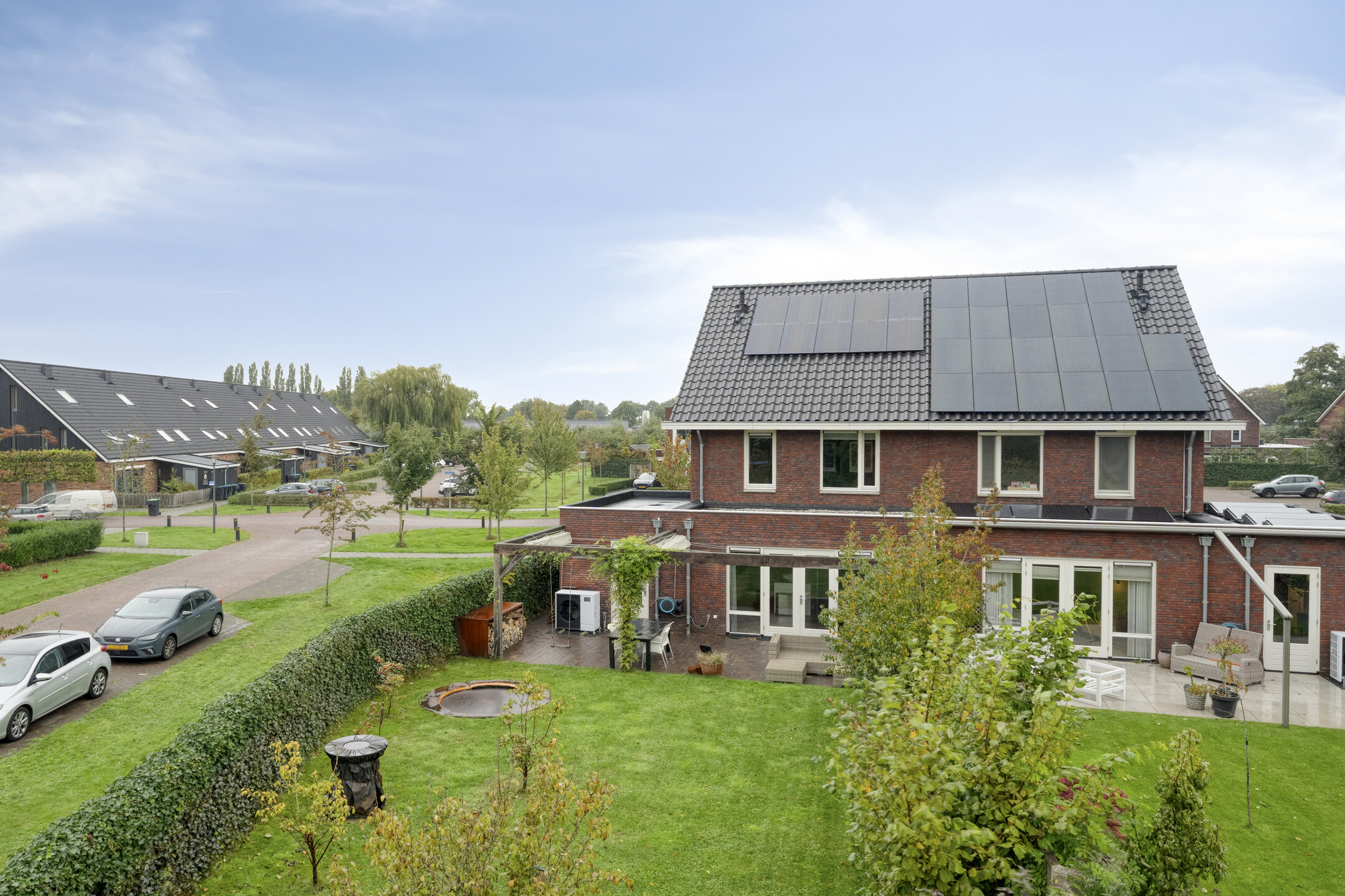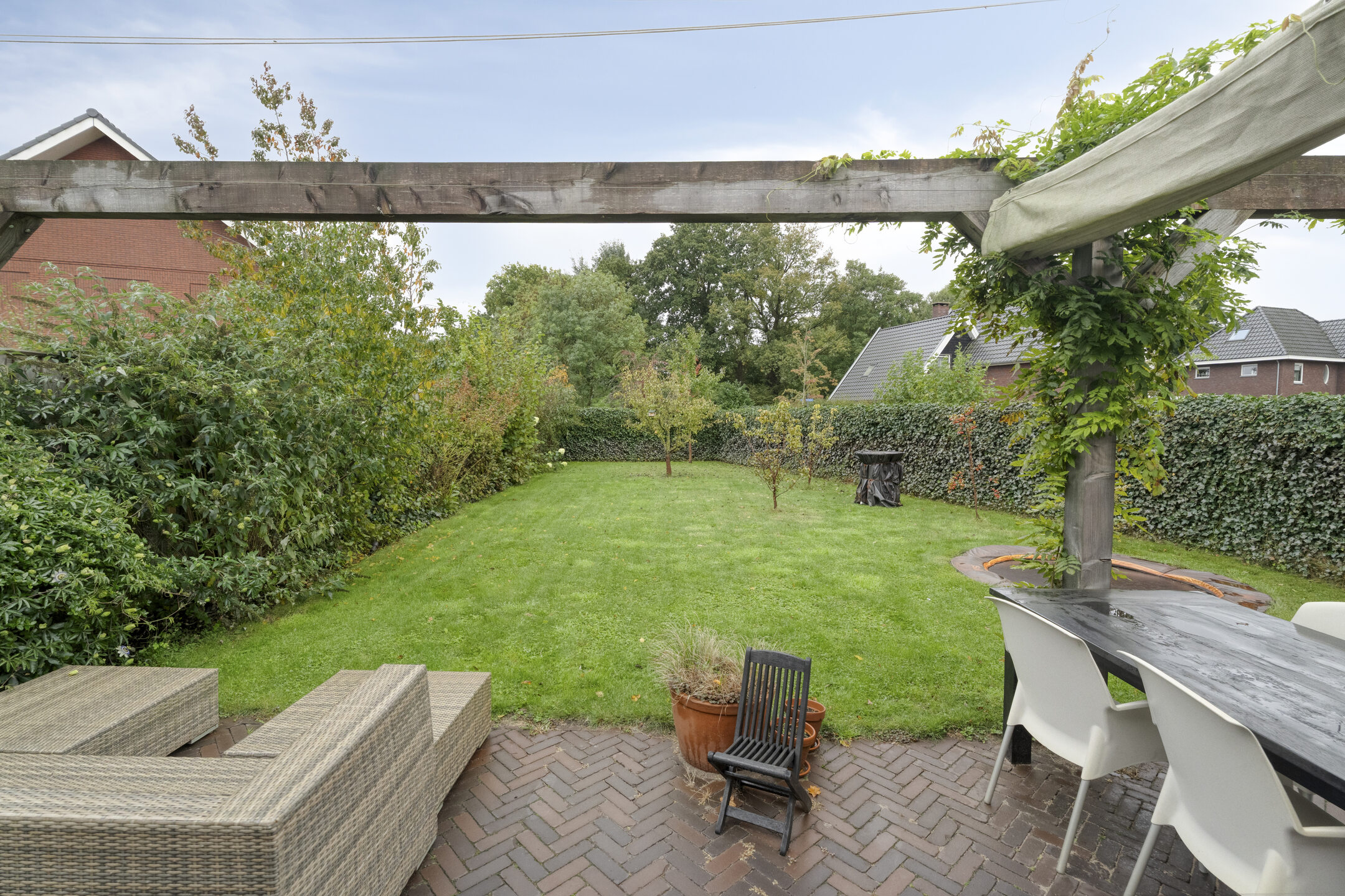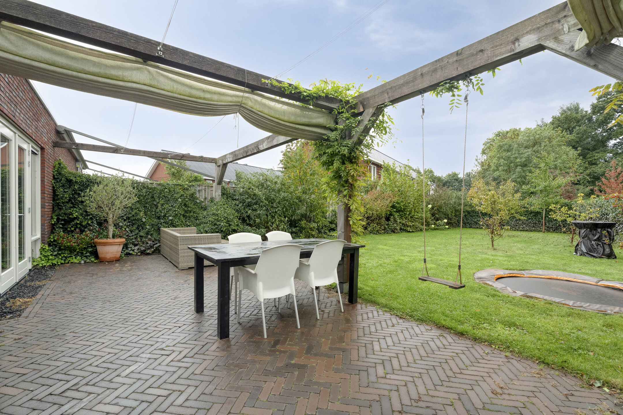 De achtertuin is breed, zonnig en met zorg aangelegd. Direct aan de woning ligt een royaal terras met pergola, perfect voor een buitenlunch of borrel. Daarachter ligt een groen gazon met fruitbomen, een trampoline en speelse hoekjes, heerlijk voor kinderen én volwassenen. De ligging biedt volop rust en privacy, terwijl je toch de gezelligheid van de wijk ervaart. Kortom, een heerlijke plek met ontzettend veel privacy!