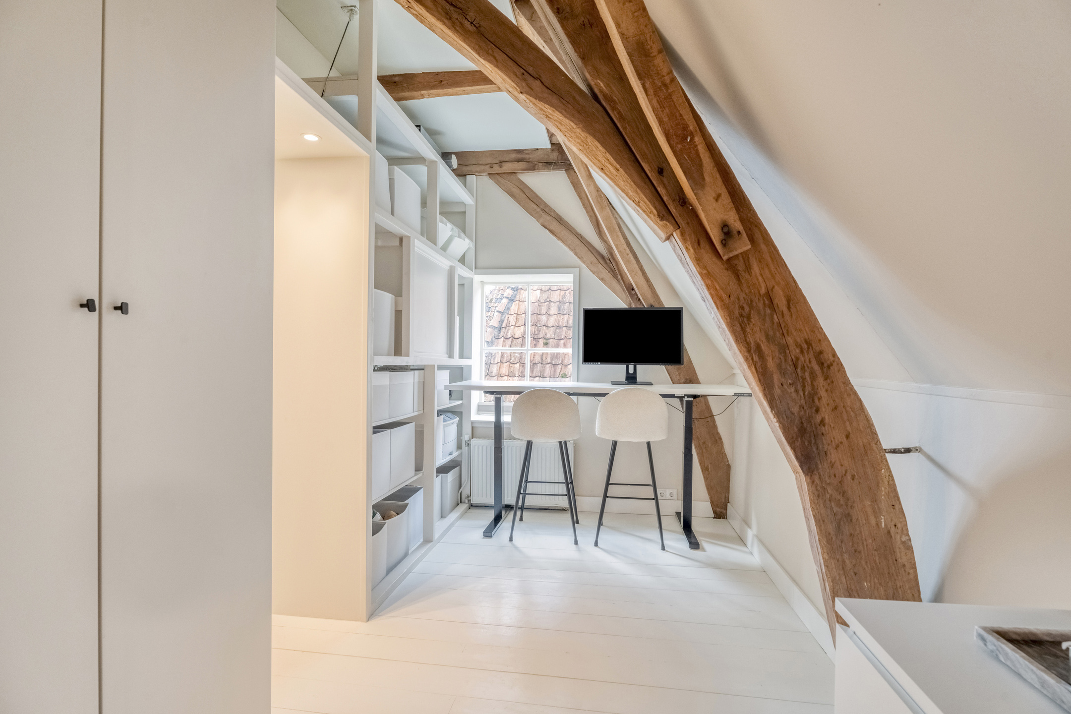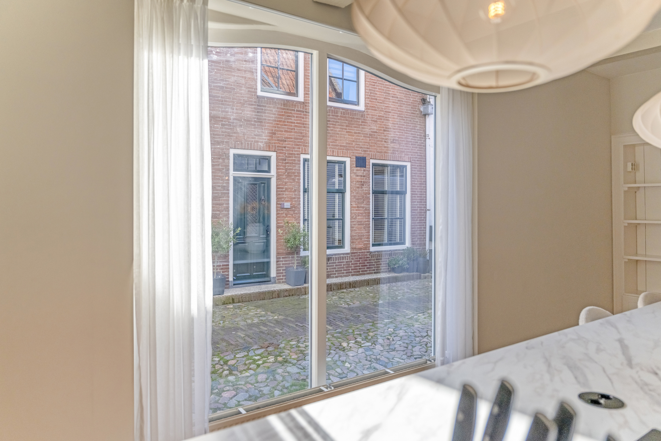 Hoewel de woning geen tuin heeft, is er aan de achterzijde een patio aanwezig, ideaal voor een kop koffie. Er is hier ook een stroomvoorziening, zodat u bijvoorbeeld gemakkelijk uw fiets kunt opladen. Verder ligt het hele historische centrum aan uw voeten, met bankjes, steegjes en pleintjes waar u heerlijk buiten kunt vertoeven.