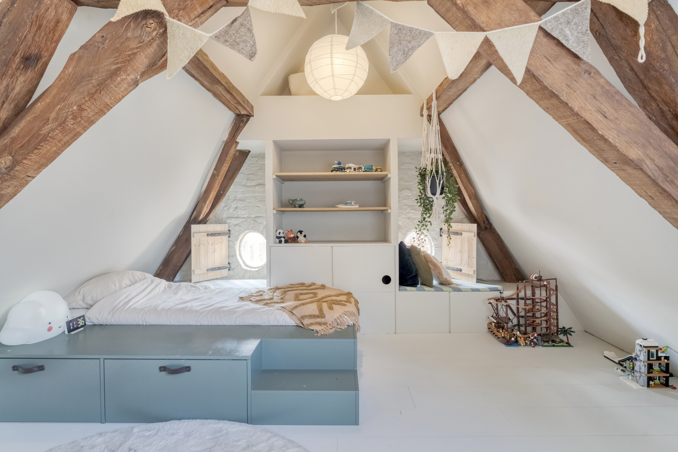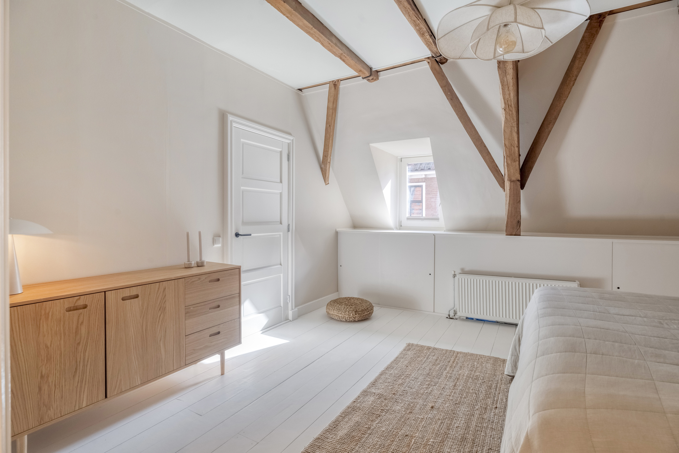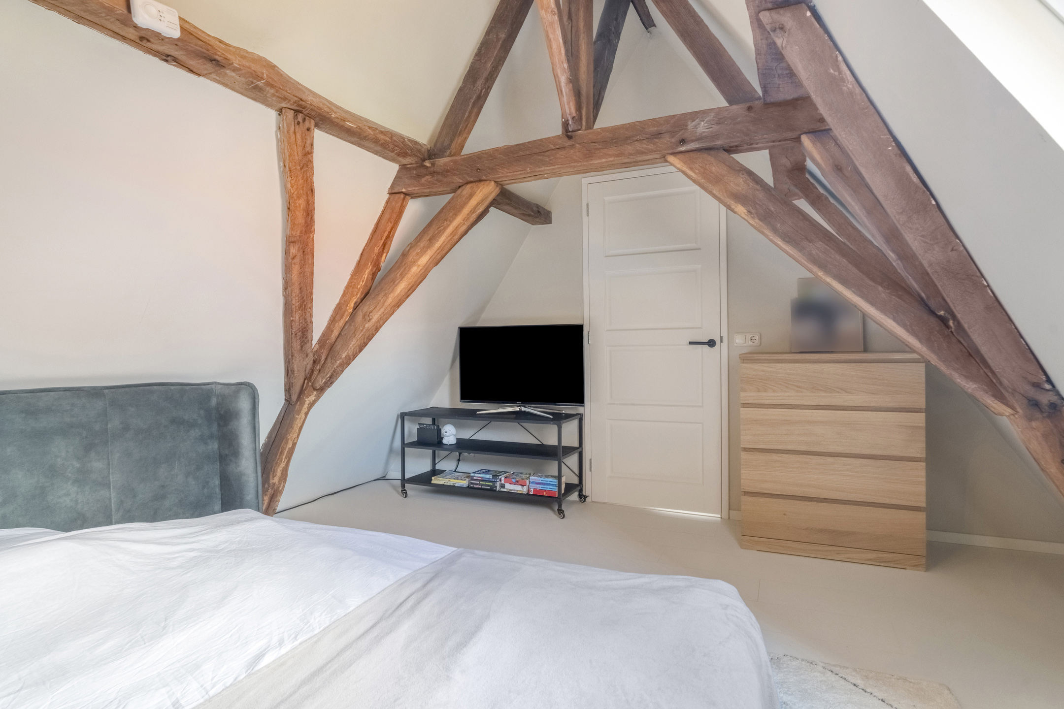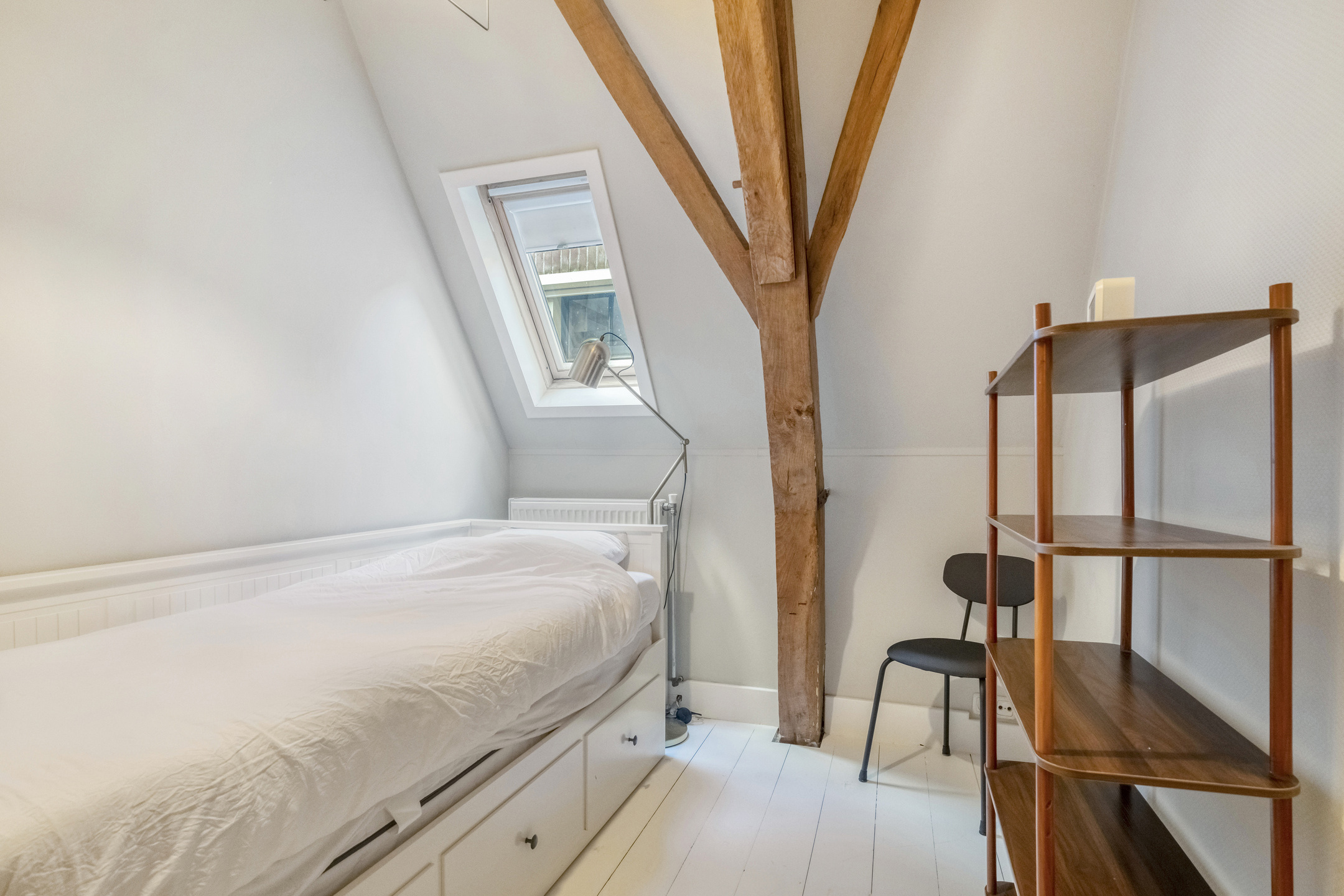 Een vaste trap brengt u naar de verrassend ruime tweede verdieping. Deze verdieping beschikt over nog twee slaapkamers. De nokhoogte en het zicht op de oude kapconstructie maken dit tot een bijzonder fraaie ruimte.