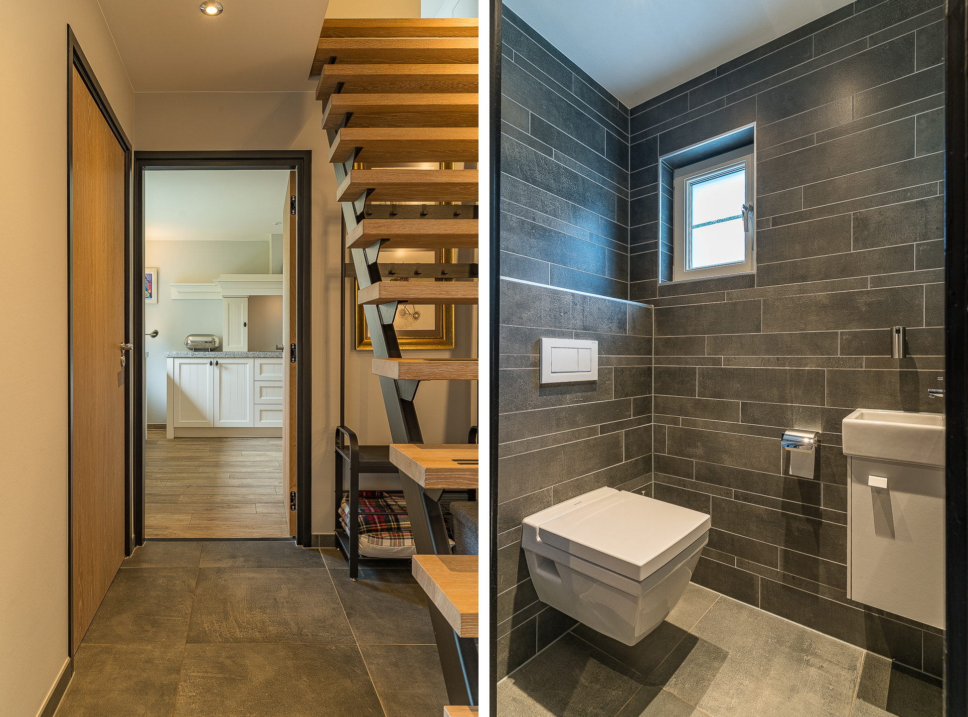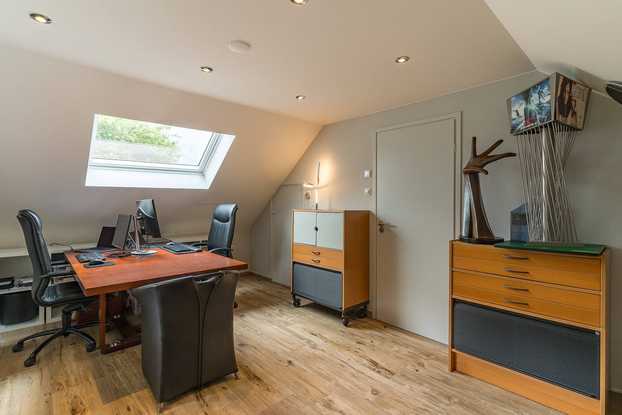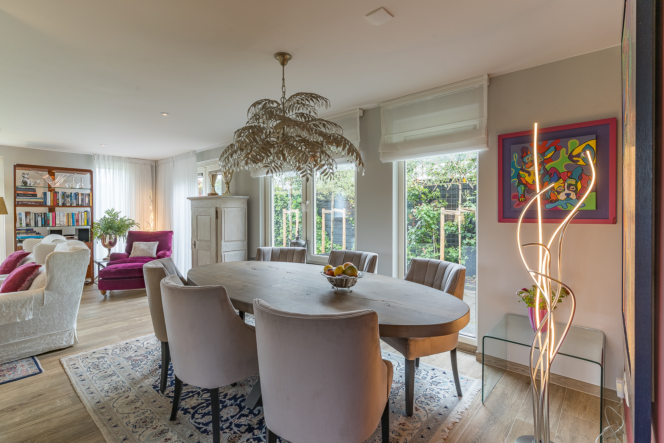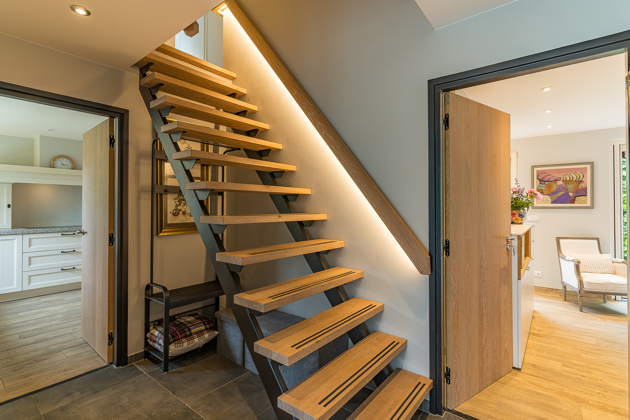 U komt de woning binnen in de hal, waar u dezelfde luxe en hoogwaardige afwerking tegenkomt. In de hal is de massief eikenhouten trap met het indirecte licht bij de trapleuning een échte eyecatcher. De tussendeuren zijn vervaardigd uit hetzelfde hout, waardoor het een mooi geheel is geworden.