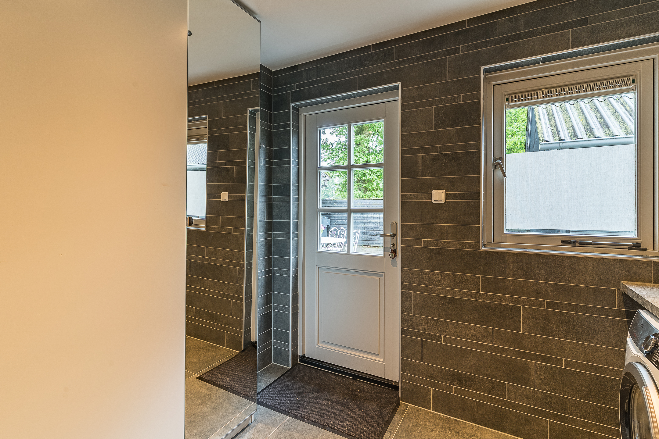 Via de elektrisch bedienbare poort en het parkeergedeelte met de carport, komt u, via de poort en het looppad, aan bij de entree van de woning, welke zich aan de zijkant bevindt. Al bij aankomst bij de woning valt het hoogwaardige afwerkingsniveau van de woning u direct op. Het moge duidelijk zijn dat de woning van beneden tot boven volledig onder handen is genomen. Zo is de woning voorzien van een nieuw dak, een nieuwe dakkapel en de gehele gevel is rondom strak gestuukt. De zware kunststof deur biedt toegang tot de woning.