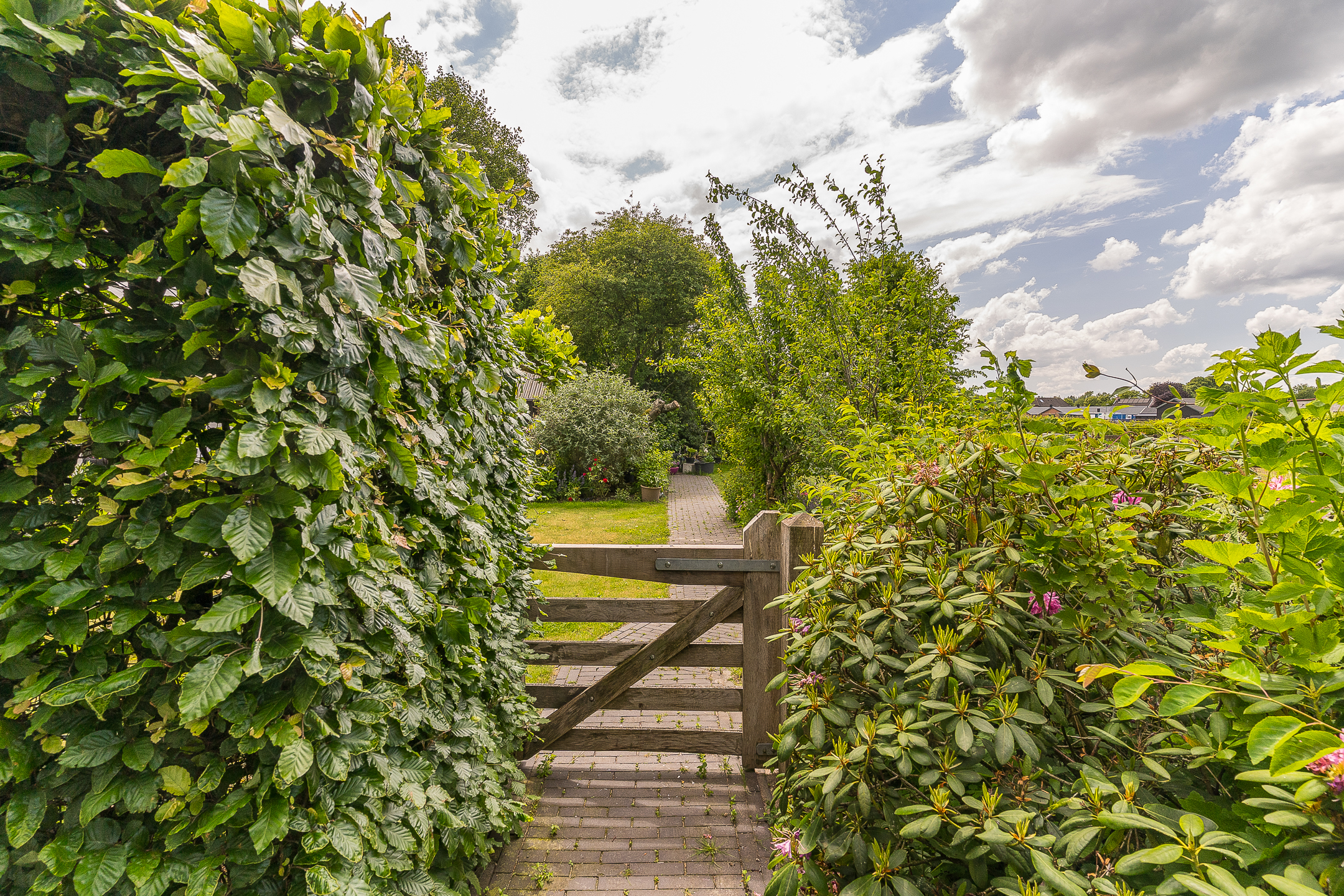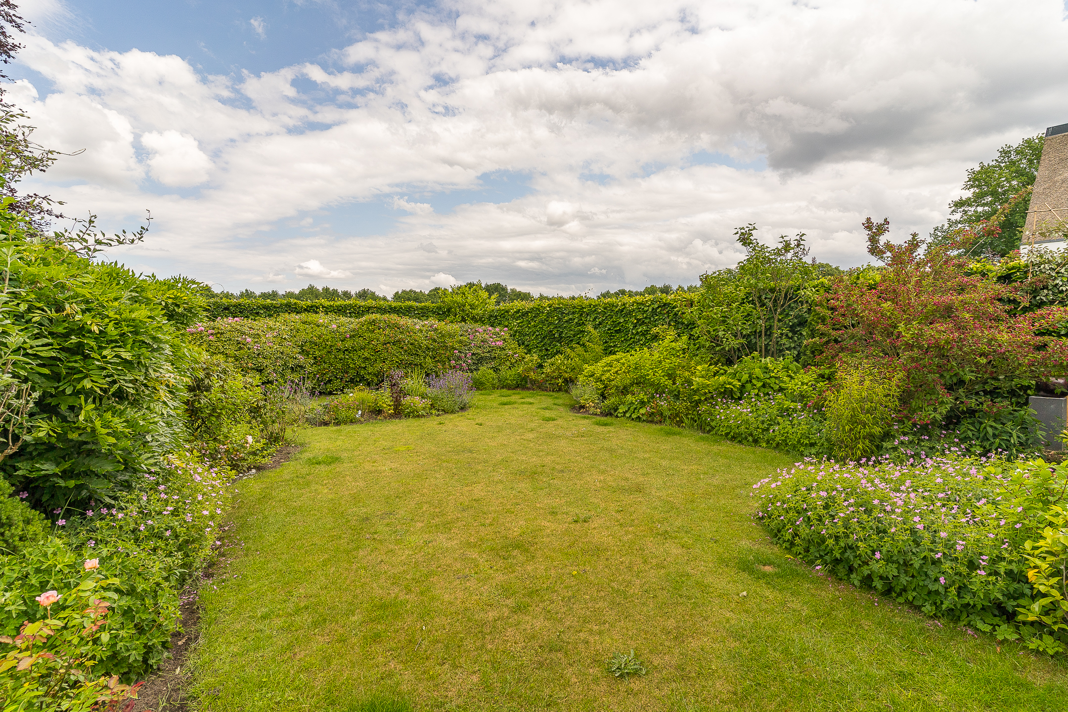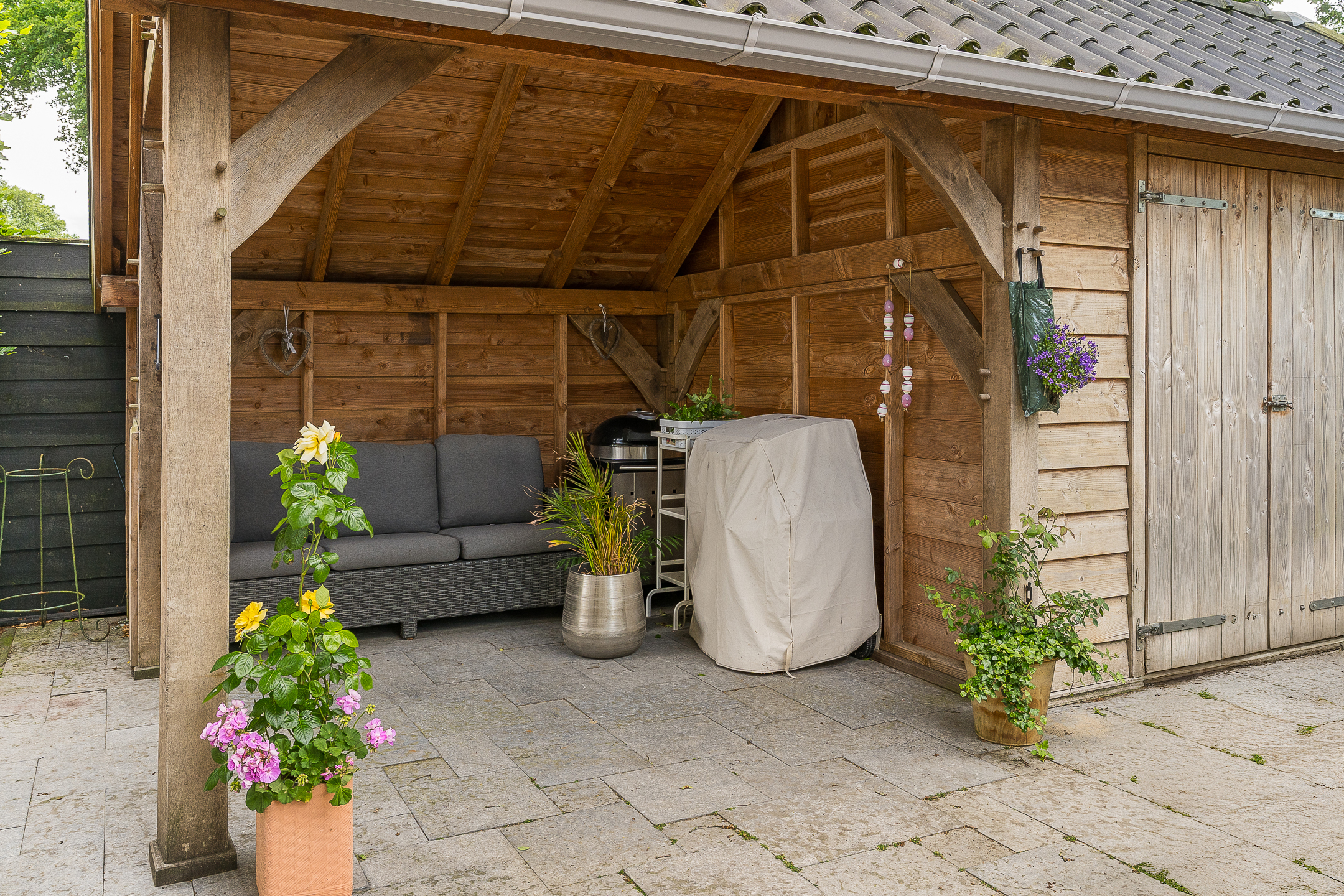 De tuin is voorzien van strakke gazons, diverse beplanting en een viertal terrassen waar u volop kunt genieten van het buitenleven. Achter de woning treft u de paardenstallen aan, die een directe verbinding hebben tot de weide naast de woning. Ook treft u hier een extra Douglas/eiken schuur met veranda aan.