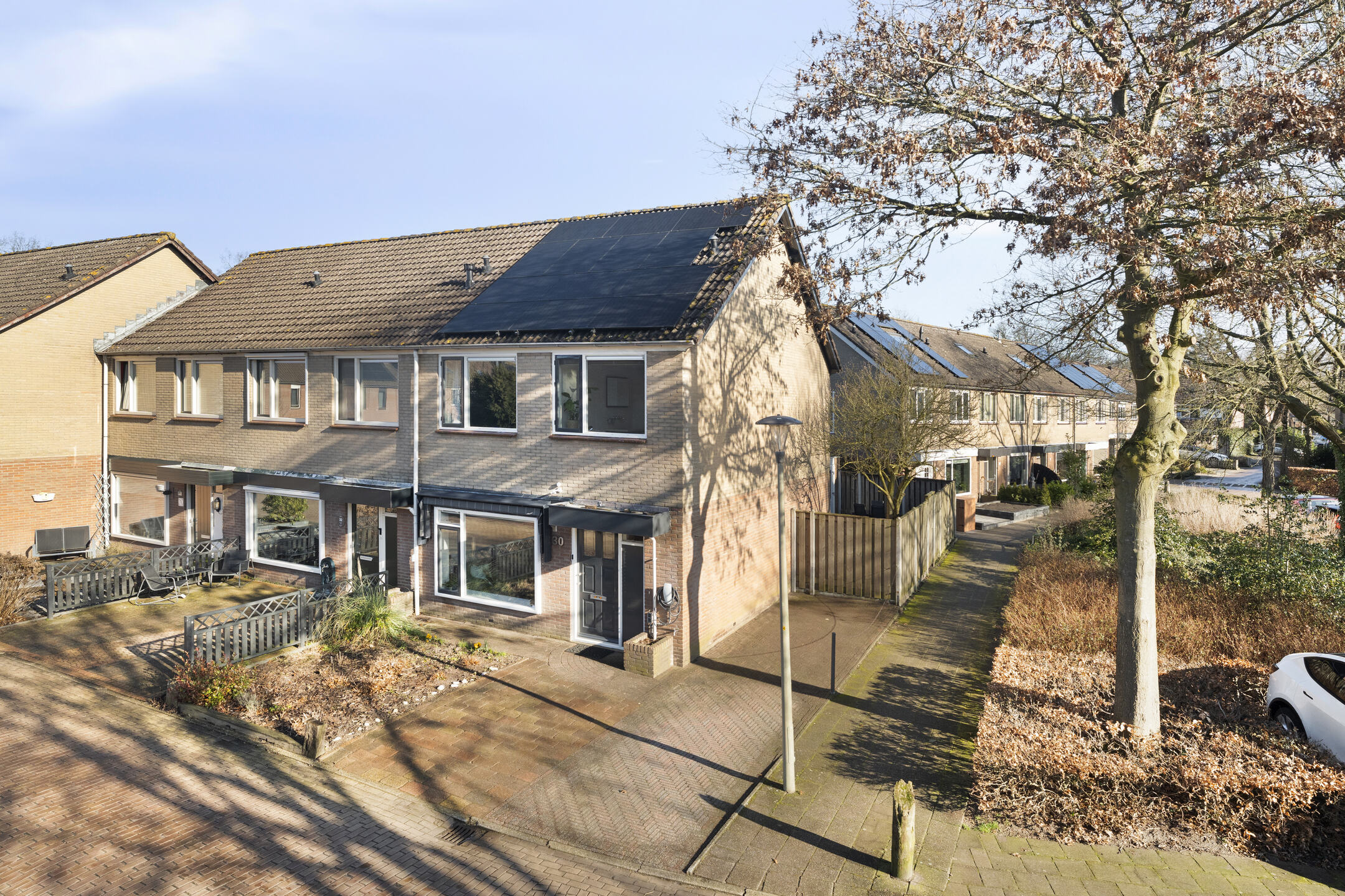 Als hoekwoning geniet je hier van extra ruimte rondom de woning. Aan de zijkant ligt de oprit waar je de auto op eigen terrein kunt parkeren. Daarnaast wordt er een laadpaal ter overname aangeboden.