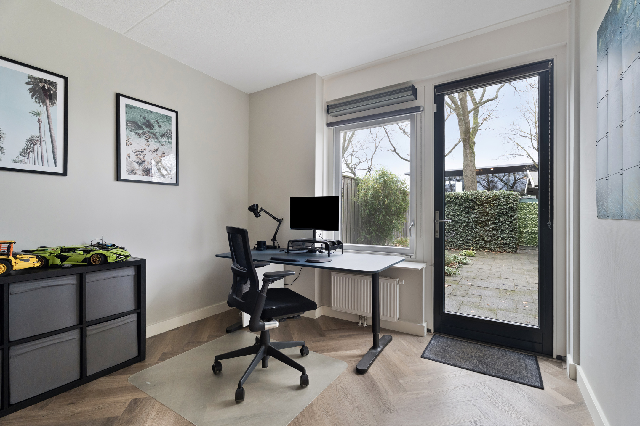 Het appartement beschikt over twee slaapkamers, waarvan de grootste direct toegang geeft tot de tuin. De tweede kamer is ideaal als logeerkamer, hobbyruimte of thuiskantoor. Ook vanuit deze kamer heb je toegang tot de achtertuin.