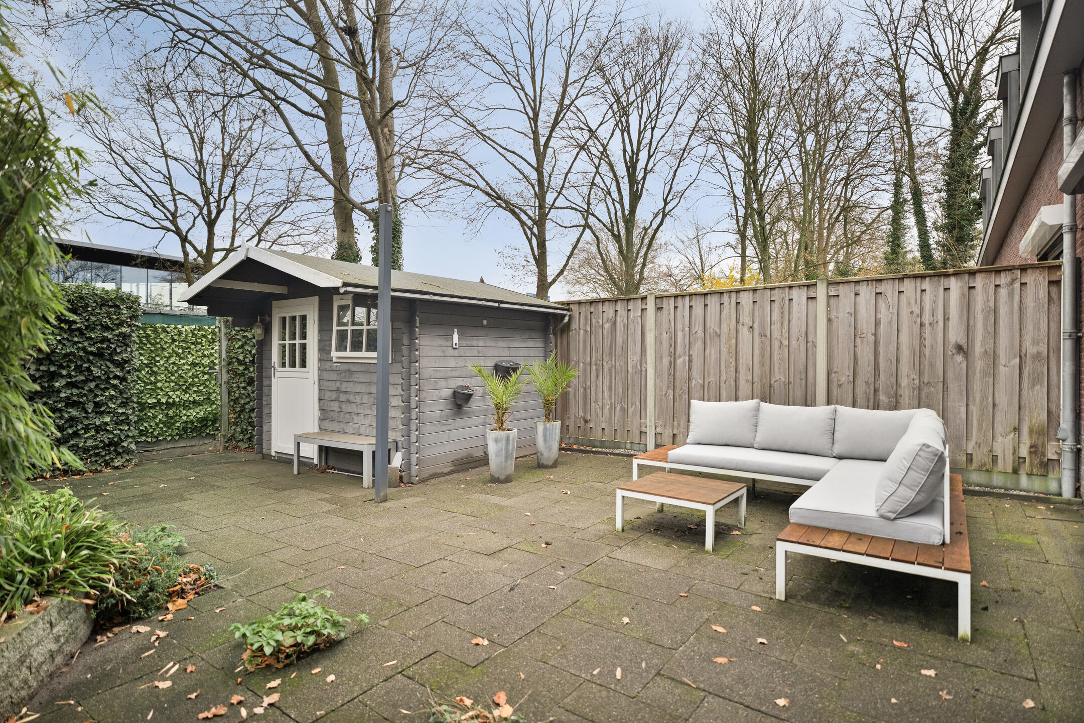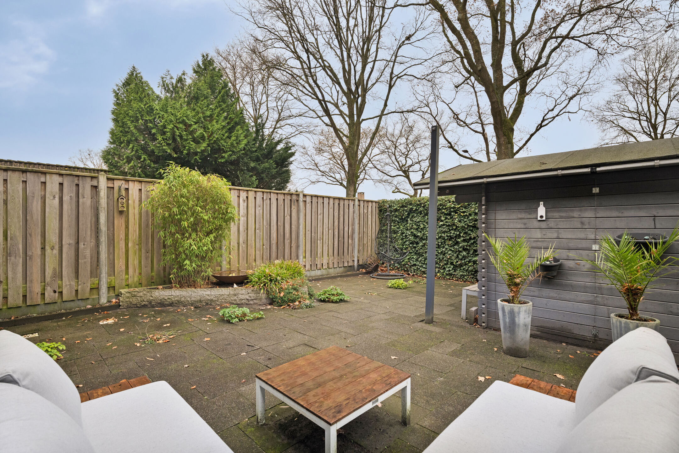 Uniek voor een appartement is de eigen tuin: volledig bestraat, onderhoudsvriendelijk en met volop ruimte voor een loungeset of eettafel. De tuin ligt gunstig, is beschut gelegen en biedt veel privacy. Achter in de tuin staat een ruime houten berging van circa 6 m² en naast het appartementencomplex staat nog een berging van circa 7 m², ideaal voor het stallen van fietsen of het opbergen van gereedschap. Via de achterom is de tuin ook buitenom bereikbaar.