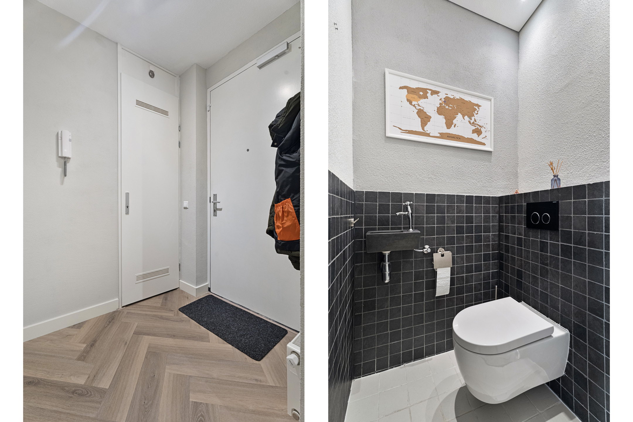 Je komt het appartement binnen via een centrale entree met intercom en postvakken. Vanuit de nette gemeenschappelijke hal stap je jouw eigen appartement binnen in de hal met toegang tot alle vertrekken.