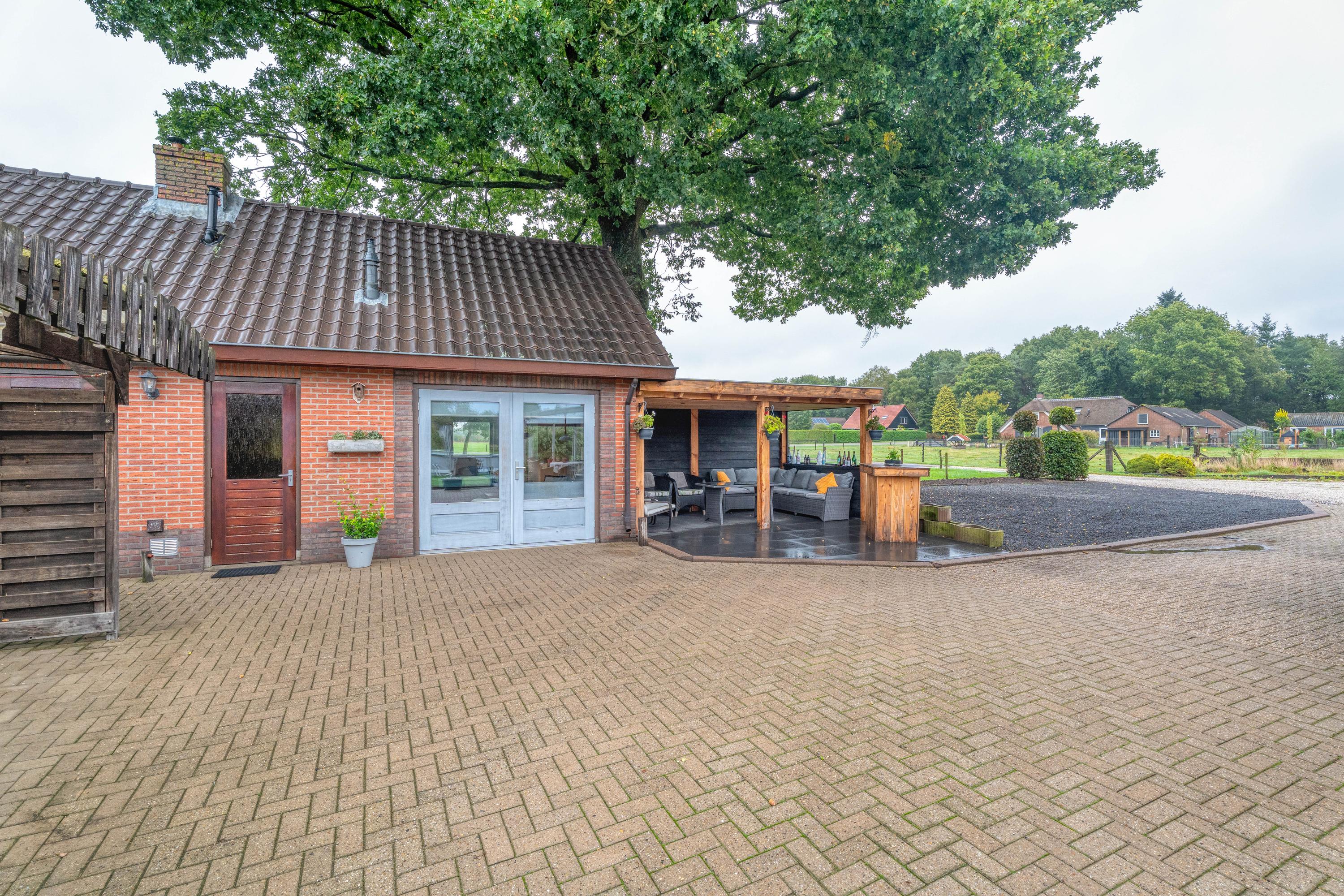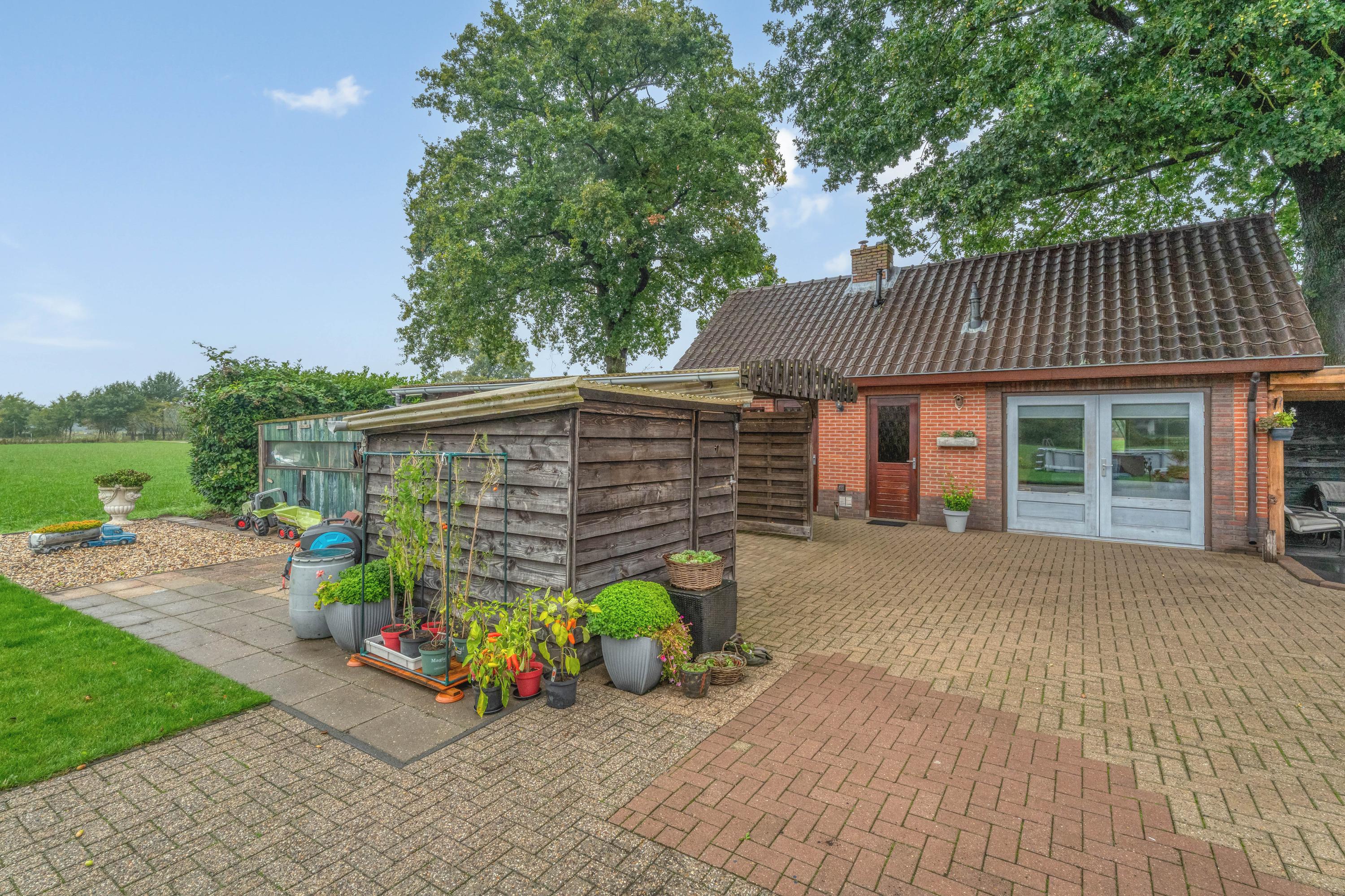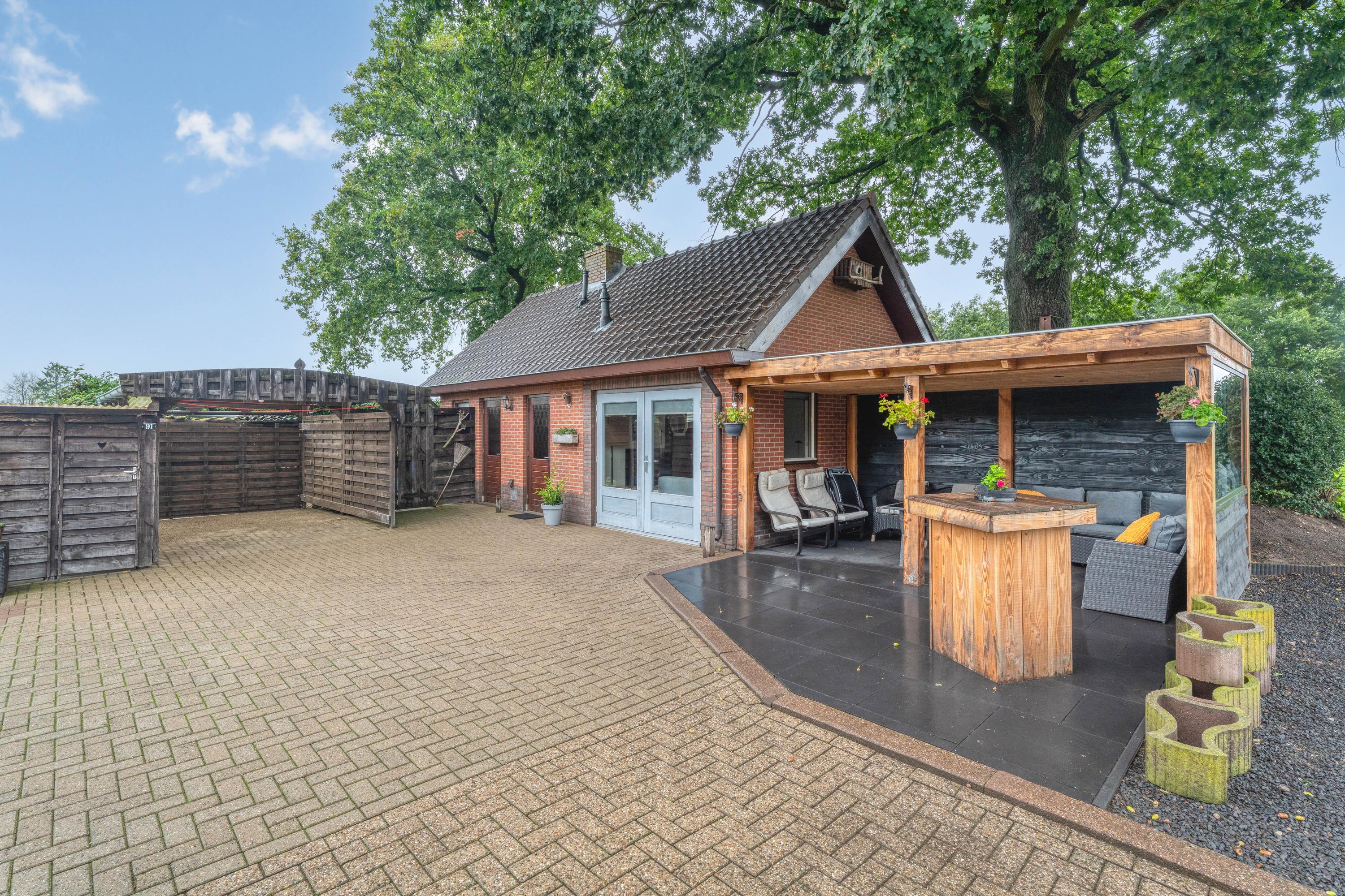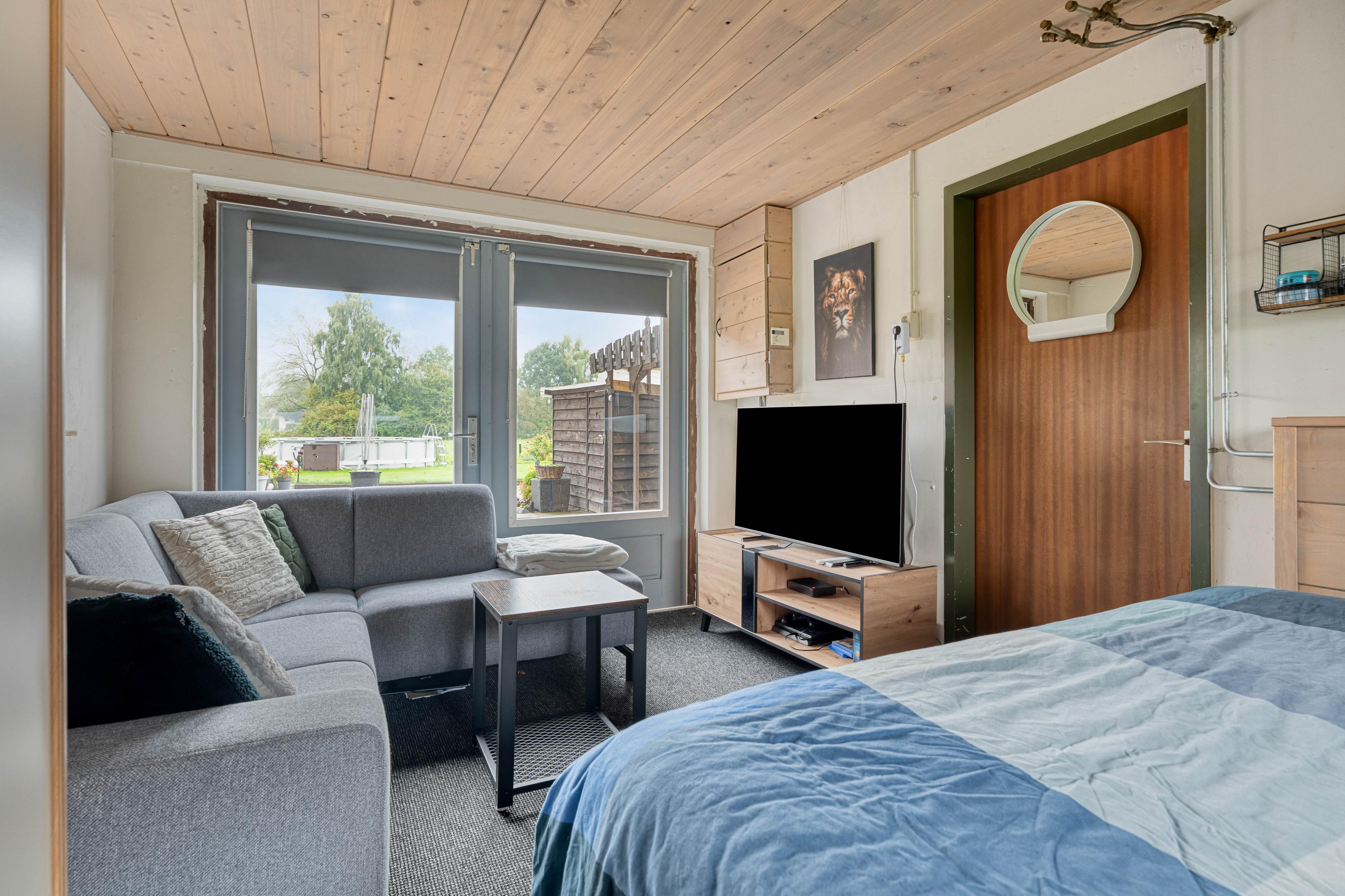 Rondom de woning ligt een diepe tuin met volop groen en ruimte. Een groot gazon, volwassen bomen en vrije uitzichten kenmerken deze plek. Achter de woning ligt het royale bijgebouw van circa 60 m². Deze ruimte is nu ingericht als eenvoudig gastenverblijf, maar biedt potentie voor een mantelzorgwoning of werkruimte aan huis. Ook hobbyisten of zzp’ers vinden hier een perfecte uitvalsbasis.