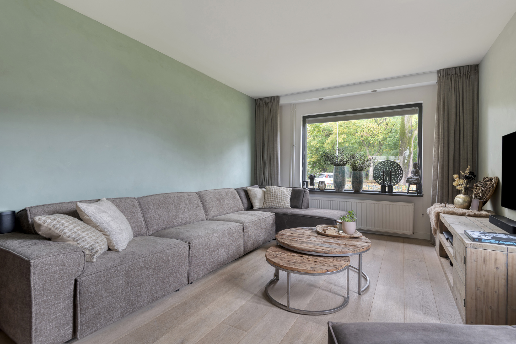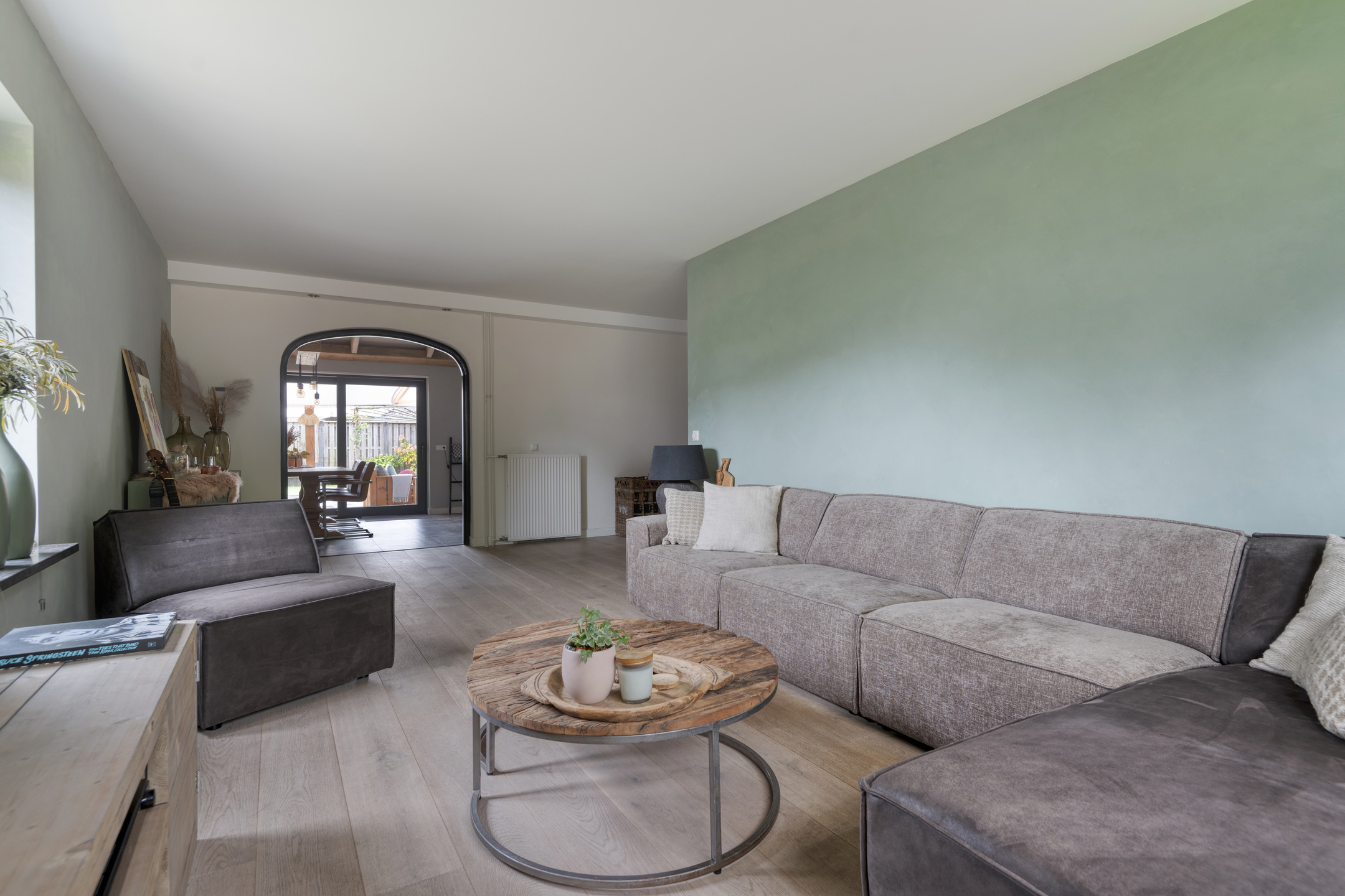 De verzorgde voortuin brengt je bij de entree van de woning. Je komt binnen in de hal, met daarin het toilet, de meterkast en een praktische trapkast. Vanuit hier stap je de gezellige woonkamer in, die zich uitstrekt over de gehele diepte van de oorspronkelijke woning. Dankzij de grote ramen aan de voorzijde en aan de zijkant van de woning is het een heerlijk lichte ruimte, met een fijne zithoek aan de voorzijde.