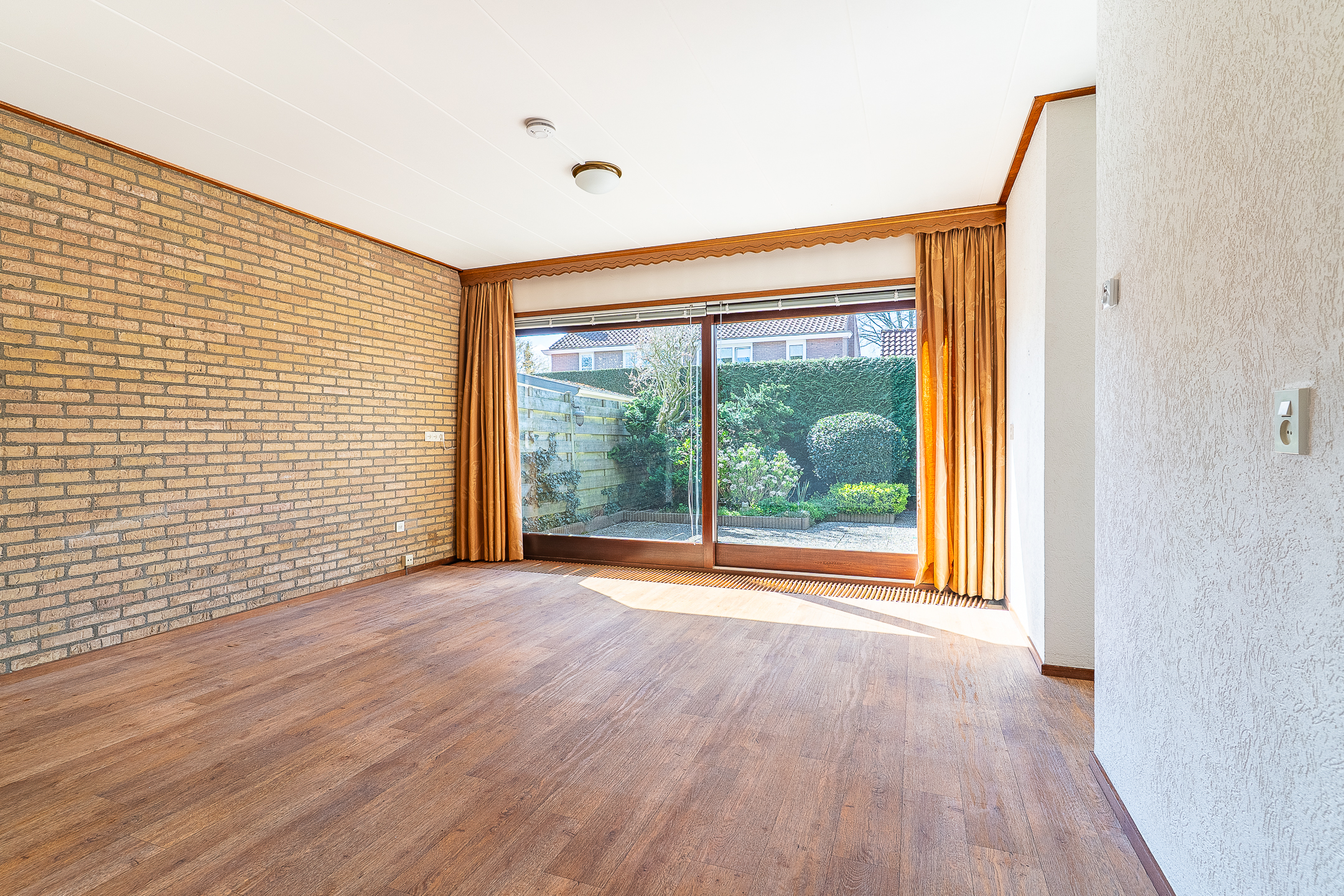 De ruimte die nu als eetkamer wordt gebruikt, was oorspronkelijk een slaapkamer. Met het terugplaatsen van een wand is deze indeling eenvoudig te realiseren. In combinatie met de badkamer op de begane grond ontstaat zo een slaapkamer met directe toegang tot de badkamer, wat gelijkvloers wonen mogelijk maakt.