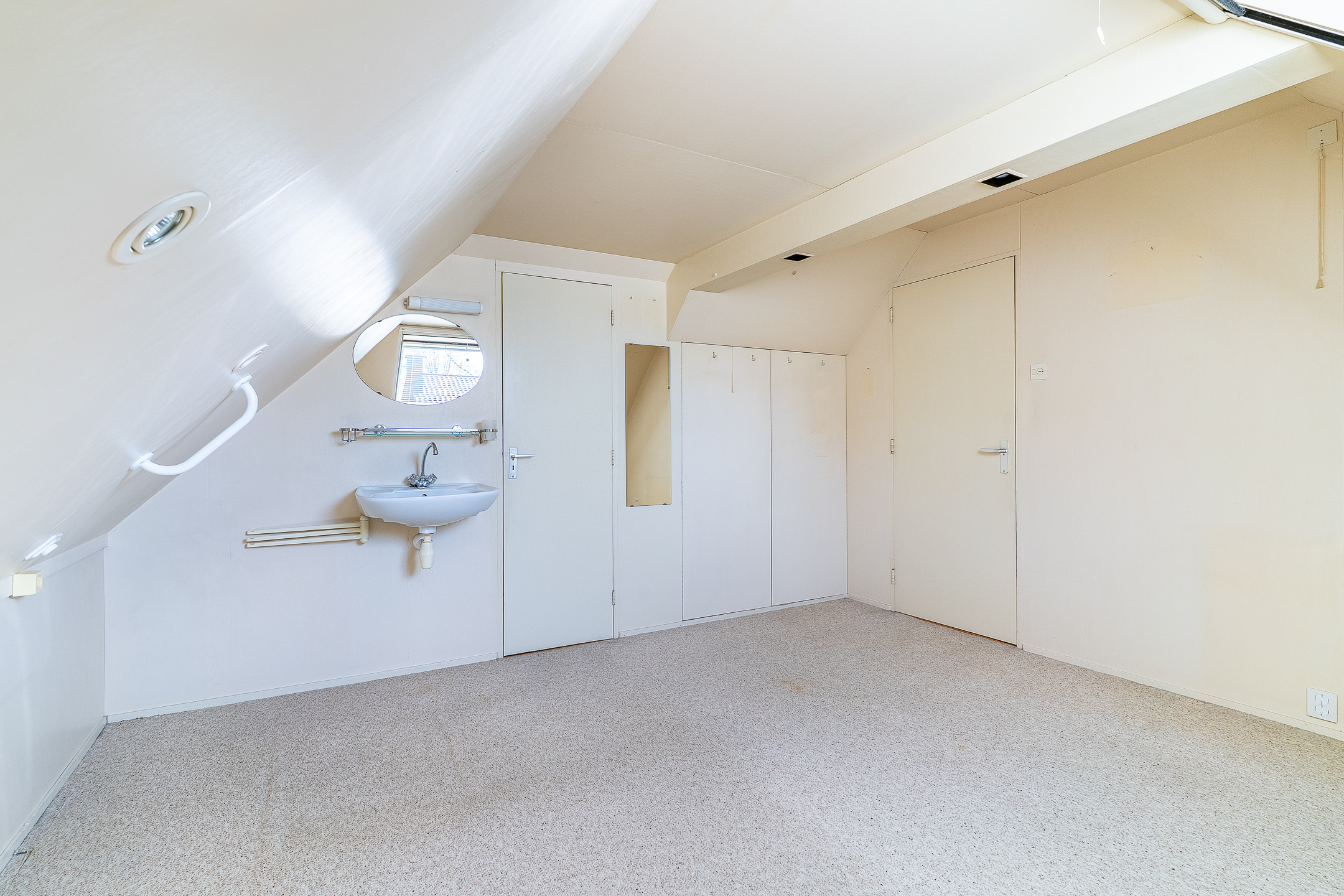 Op de verdieping vind je een overloop met bergruimte en de opstelling van de CV-ketel. Daarnaast is er een slaapkamer aanwezig met daglicht via een dakraam. Achter de knieschotten is extra bergruimte beschikbaar.