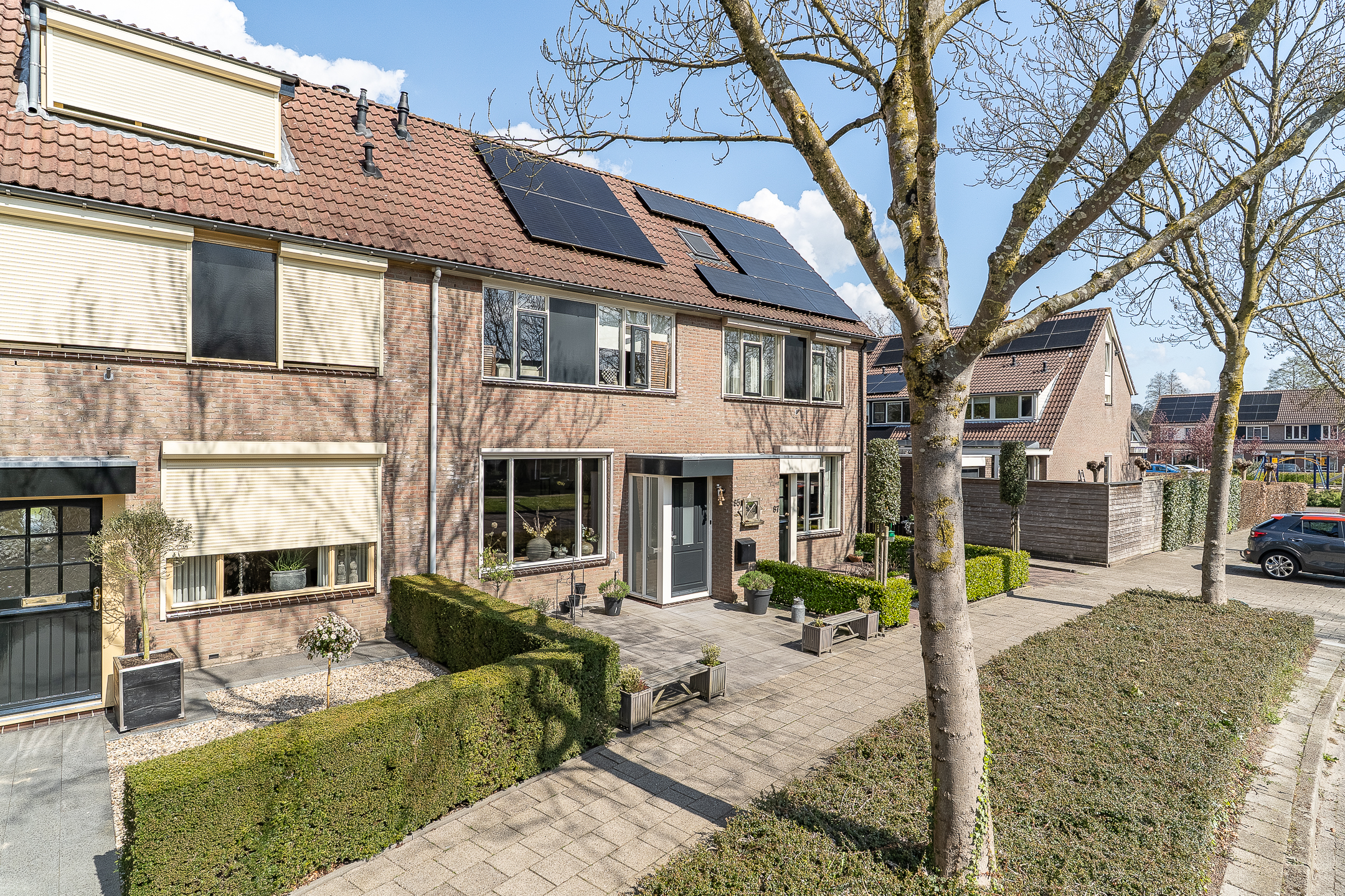 Binnen tref je een ruime woonkamer, een moderne keuken en drie slaapkamers op de eerste verdieping. De tweede verdieping biedt extra ruimte voor bijvoorbeeld een werkplek of hobbyruimte. Met 6 zonnepanelen op het dak is er bovendien al een mooie stap gezet richting duurzaamheid.