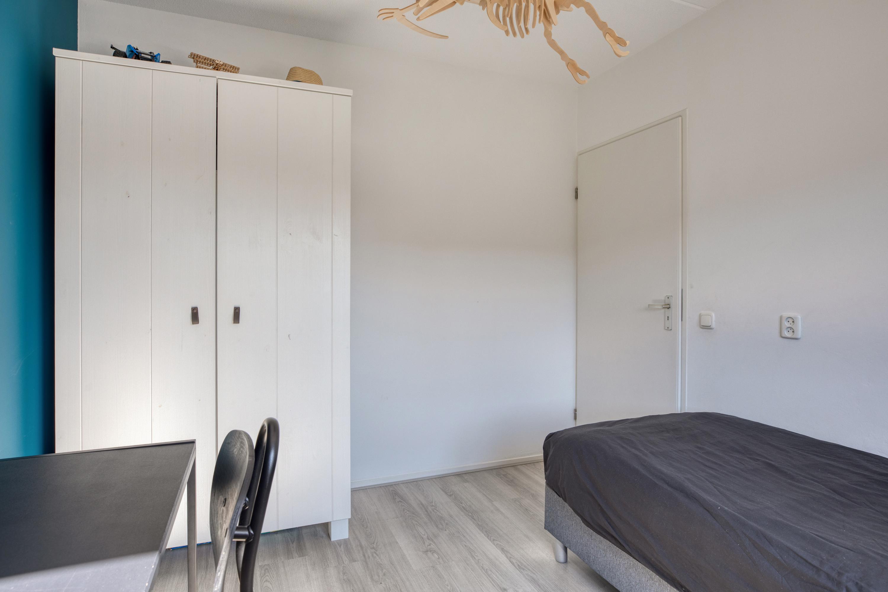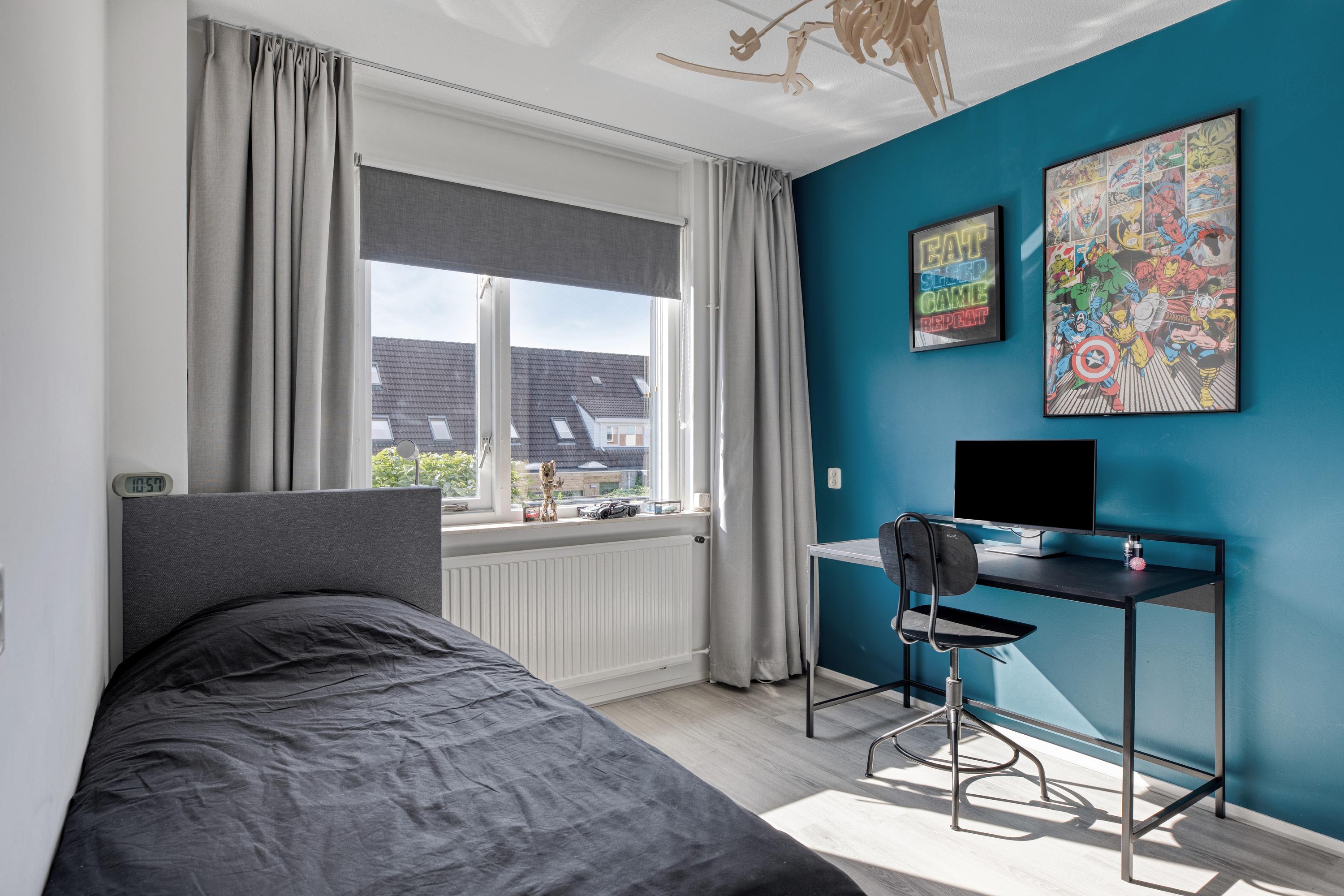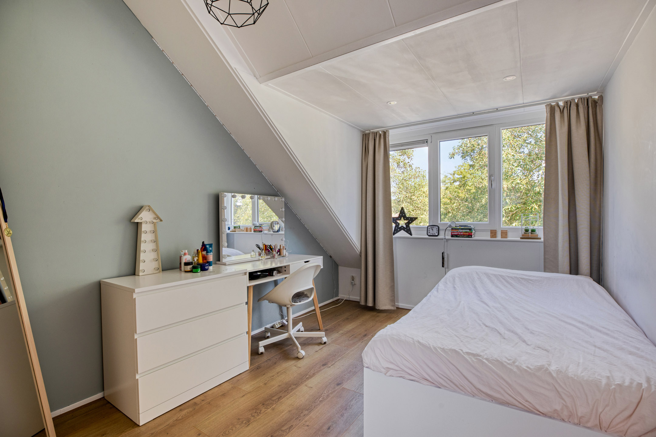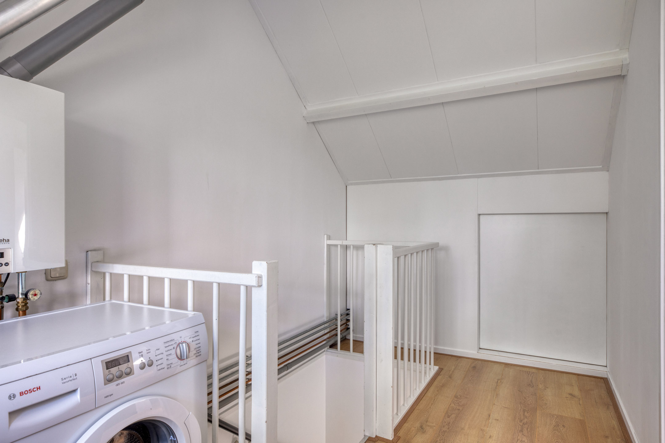 De tweede verdieping is via een vaste trap bereikbaar en is recent voorzien van een brede, kunststof dakkapel. Hier is een royale vierde slaapkamer gerealiseerd, die ook prima kan dienen als werk- of hobbyruimte. Op de overloop bevinden zich de witgoedaansluitingen en is er toegang tot extra bergruimte achter de knieschotten en in de vaste kast.