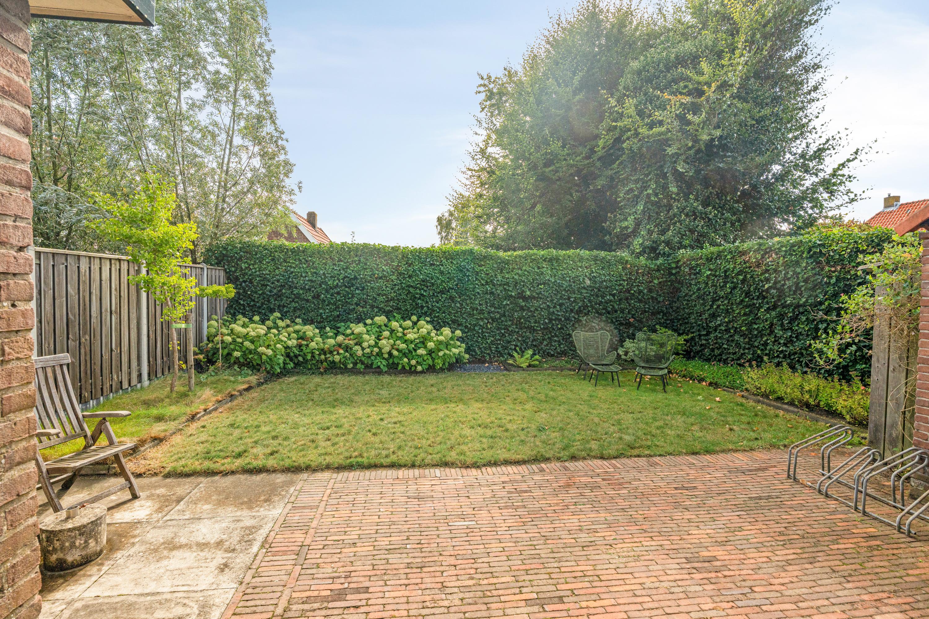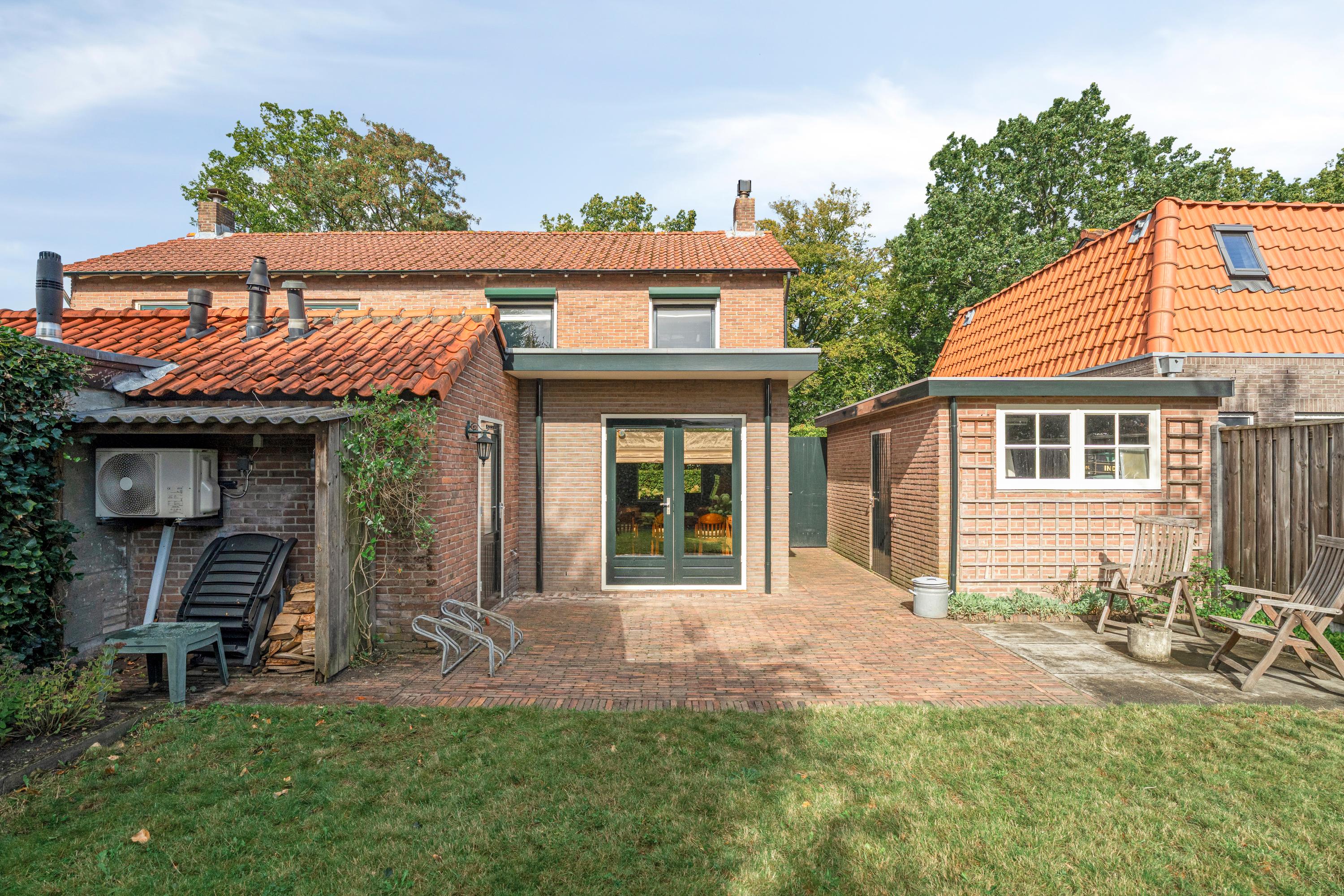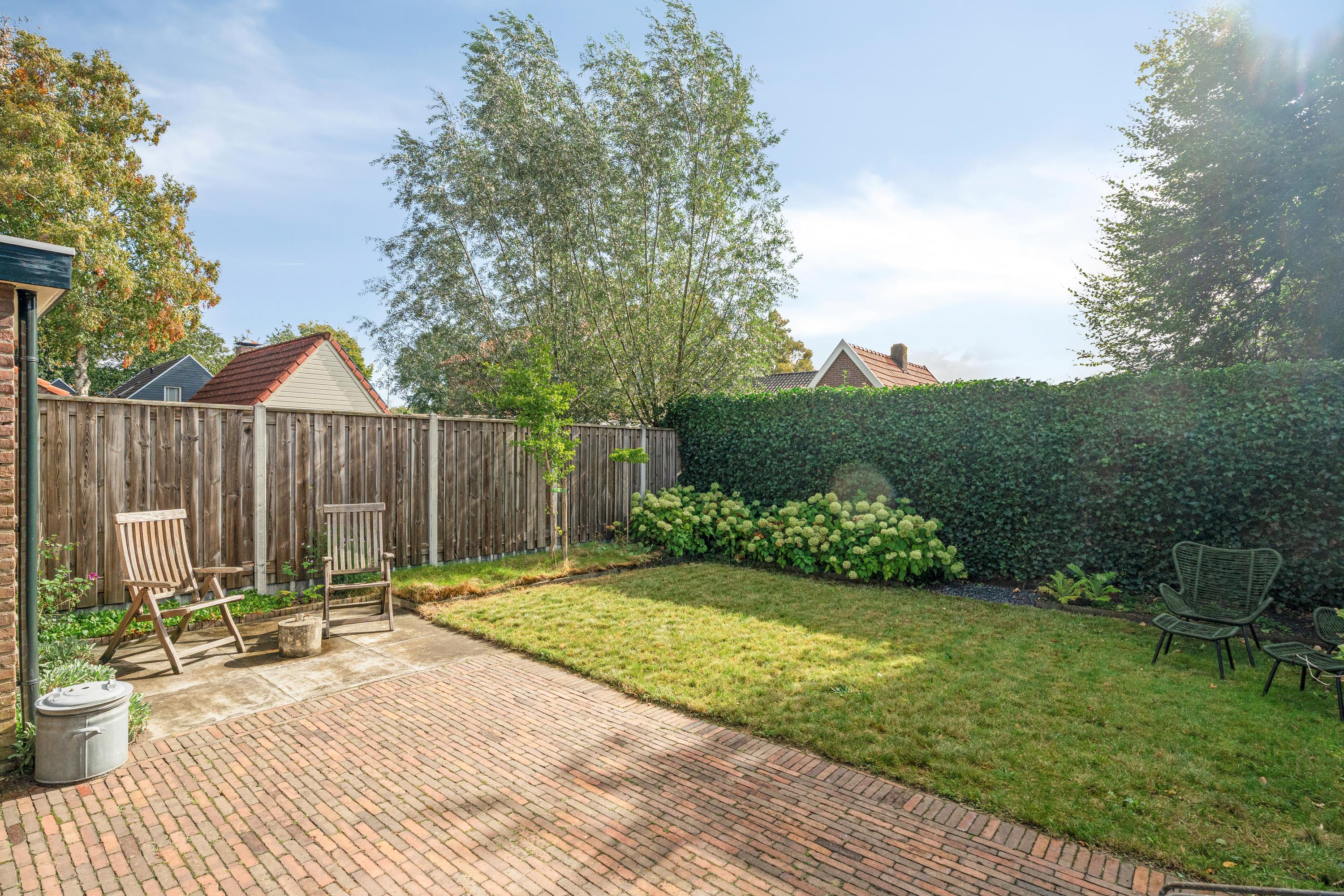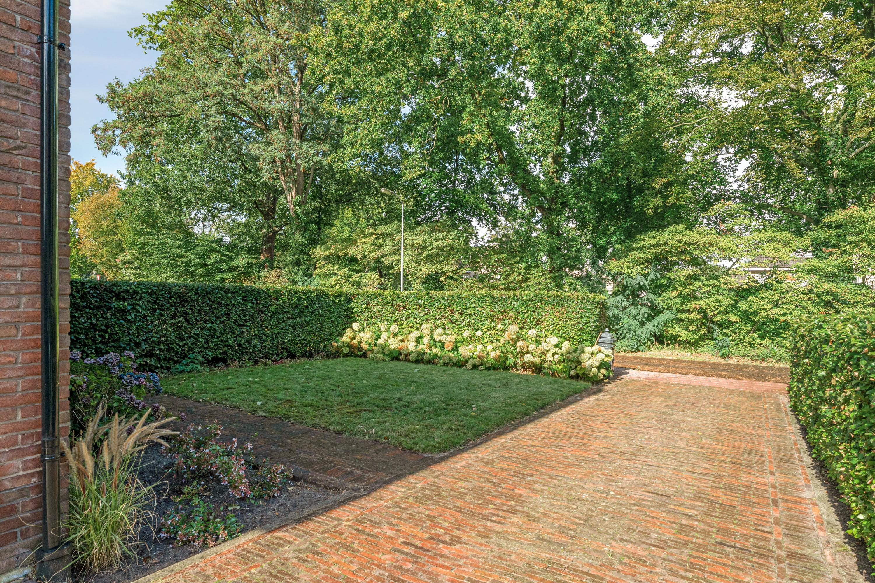 De oprit biedt ruimte voor meerdere auto's en leidt naar de vrijstaande garage met betonvloer, elektra en verlichting. De achtertuin is diep, groen en sfeervol aangelegd met terras, borders, gazon en een houtopslag. Dankzij de diepte en ligging kun je hier de hele dag genieten van de zon én de rust.