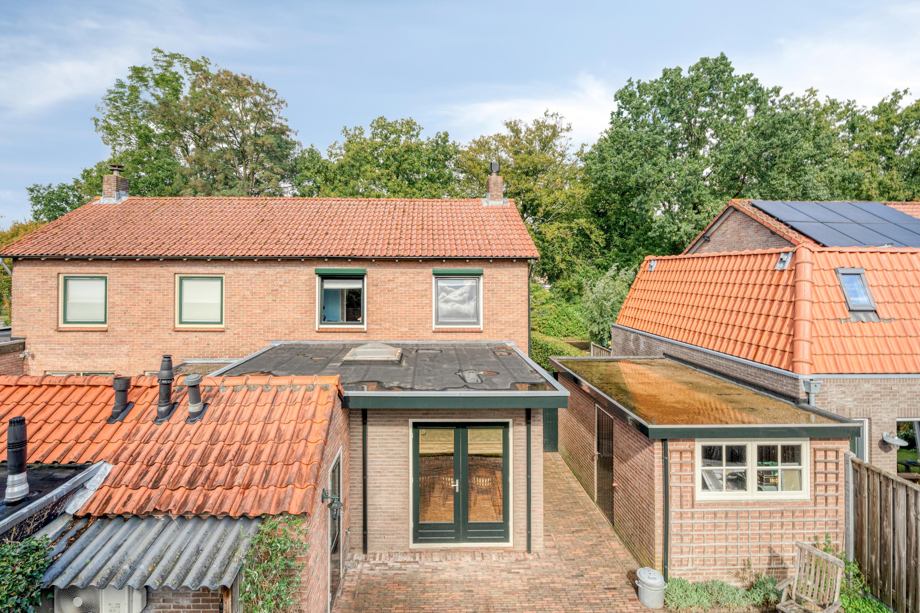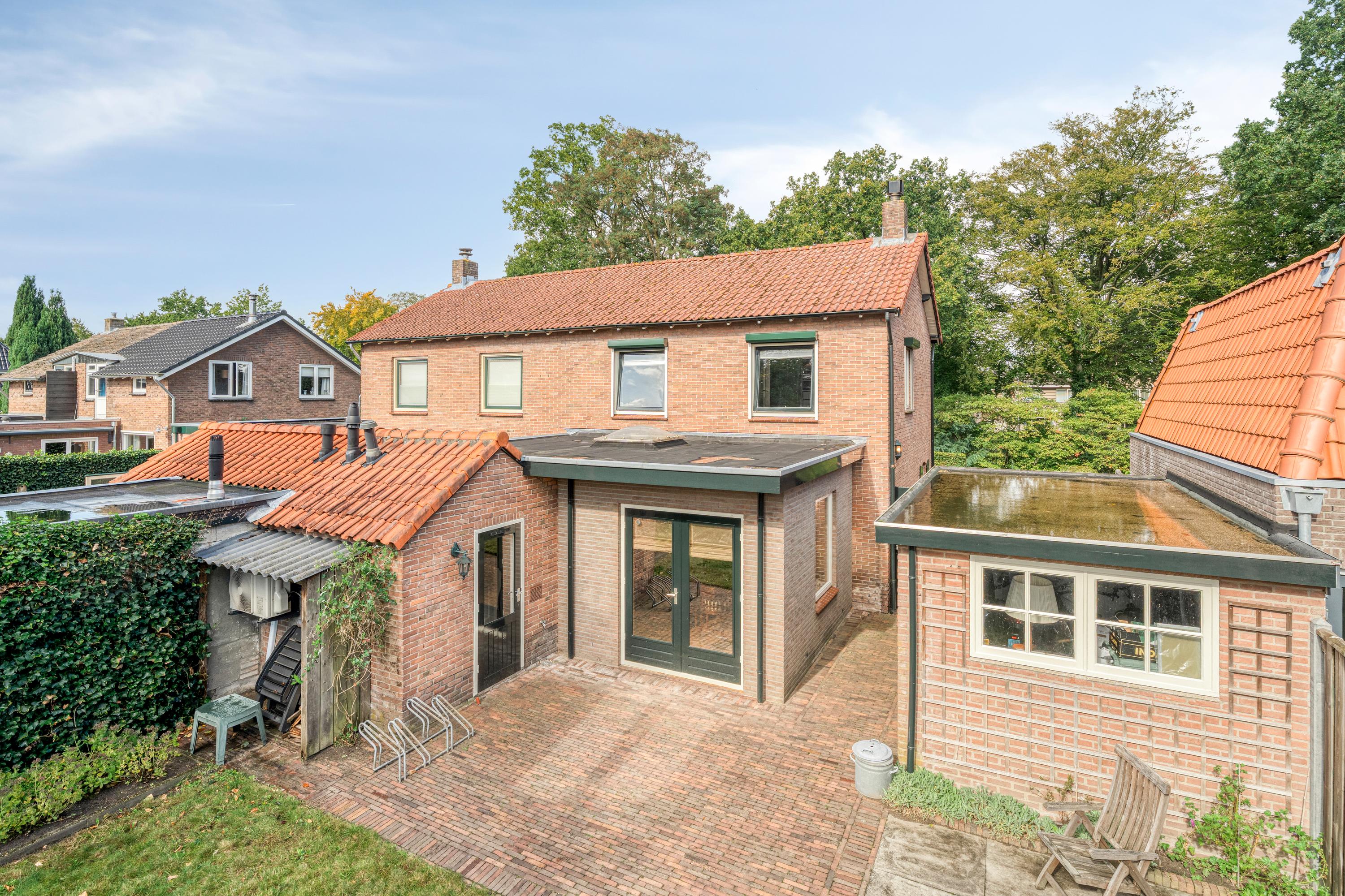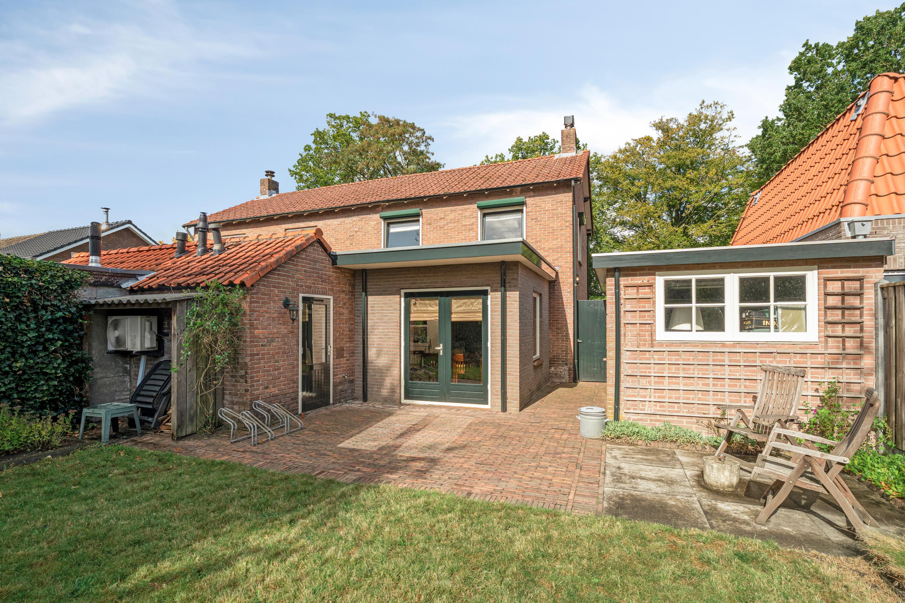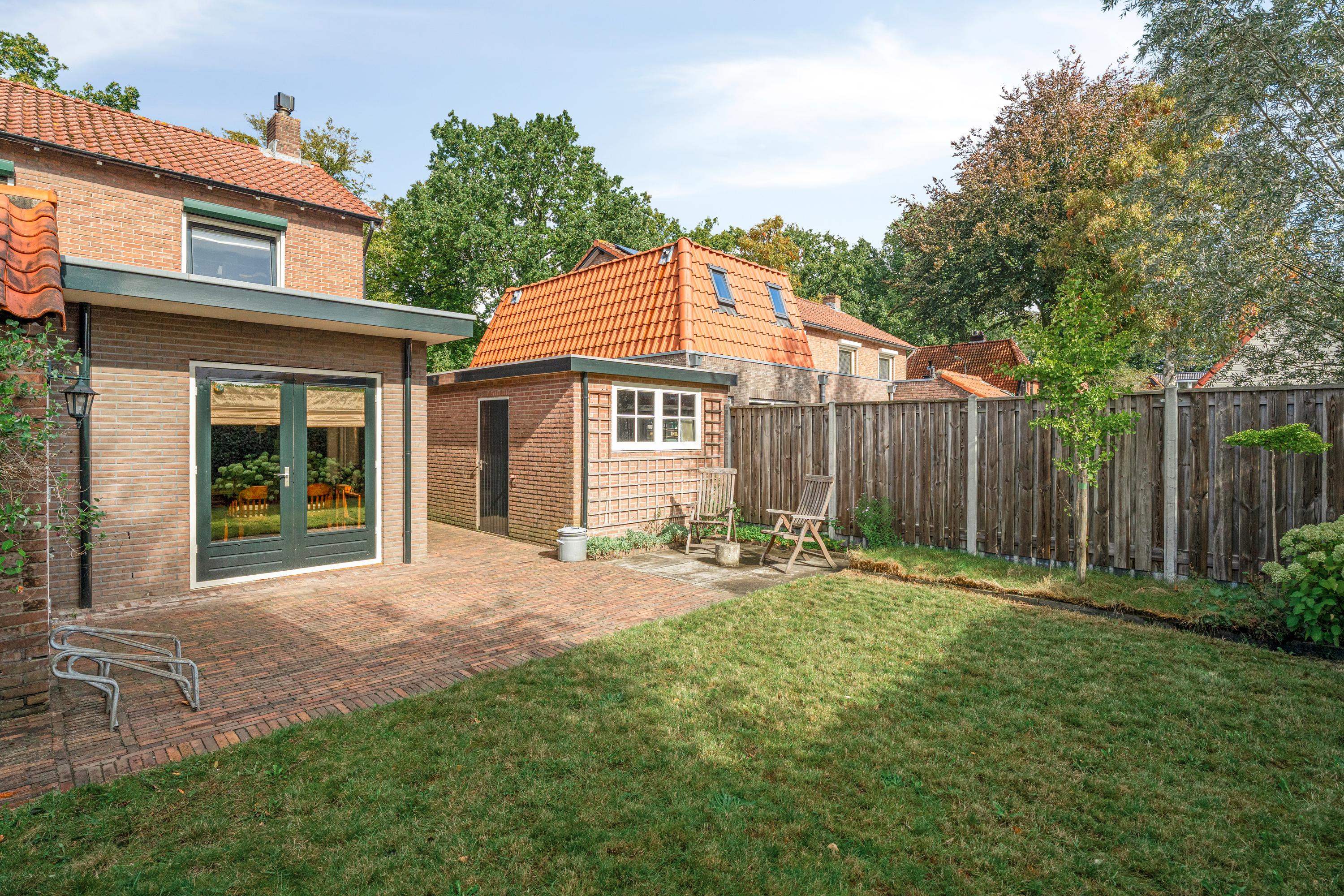 De oprit biedt ruimte voor meerdere auto's en leidt naar de vrijstaande garage met betonvloer, elektra en verlichting. De achtertuin is diep, groen en sfeervol aangelegd met terras, borders, gazon en een houtopslag. Dankzij de diepte en ligging kun je hier de hele dag genieten van de zon én de rust.