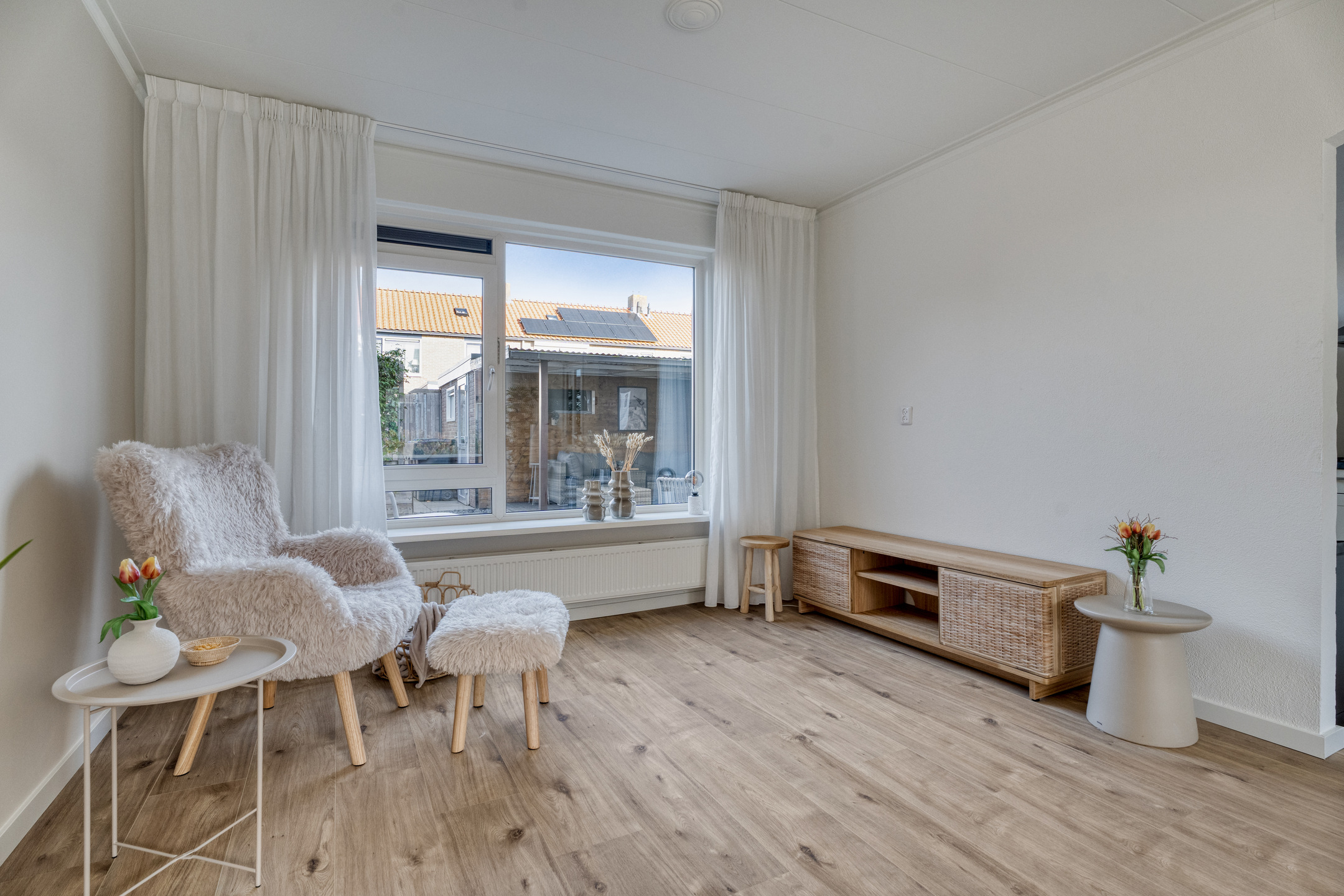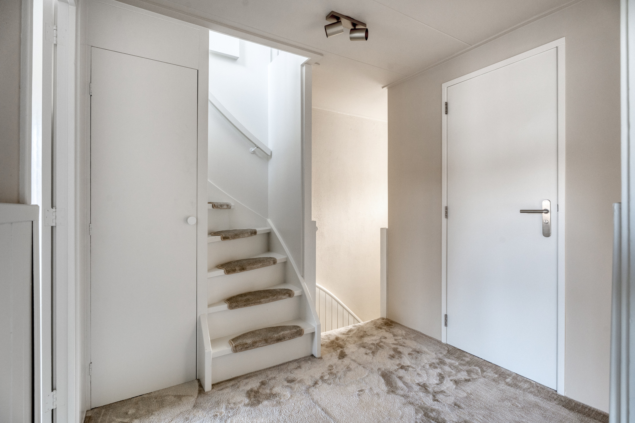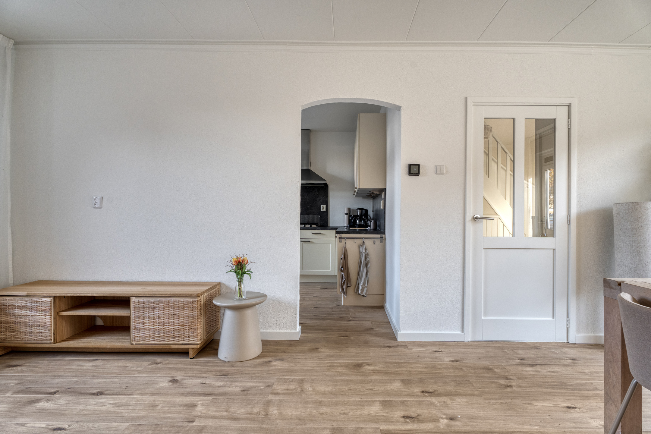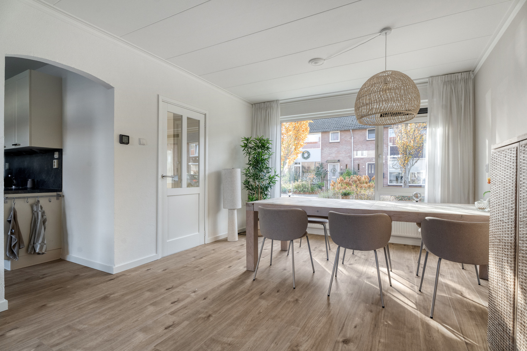 Je stapt de woning binnen via de hal, waar zich het toilet, de verdiepte trapkast en de trapopgang bevinden. Vanuit de hal loop je door naar de woonkamer, waar de grote ramen aan voor- en achterzijde zorgen voor veel lichtinval. Er is ruimte voor een gezellige zithoek en een eetgedeelte.