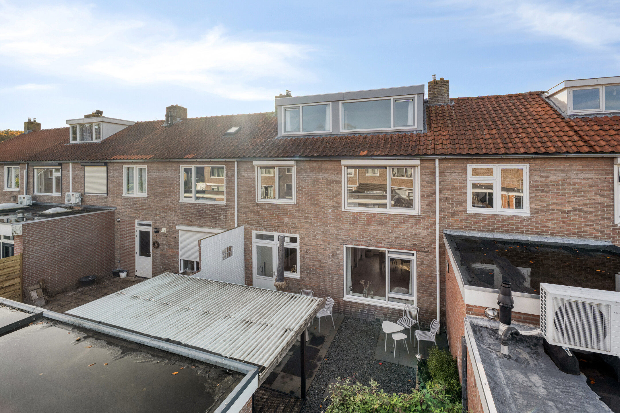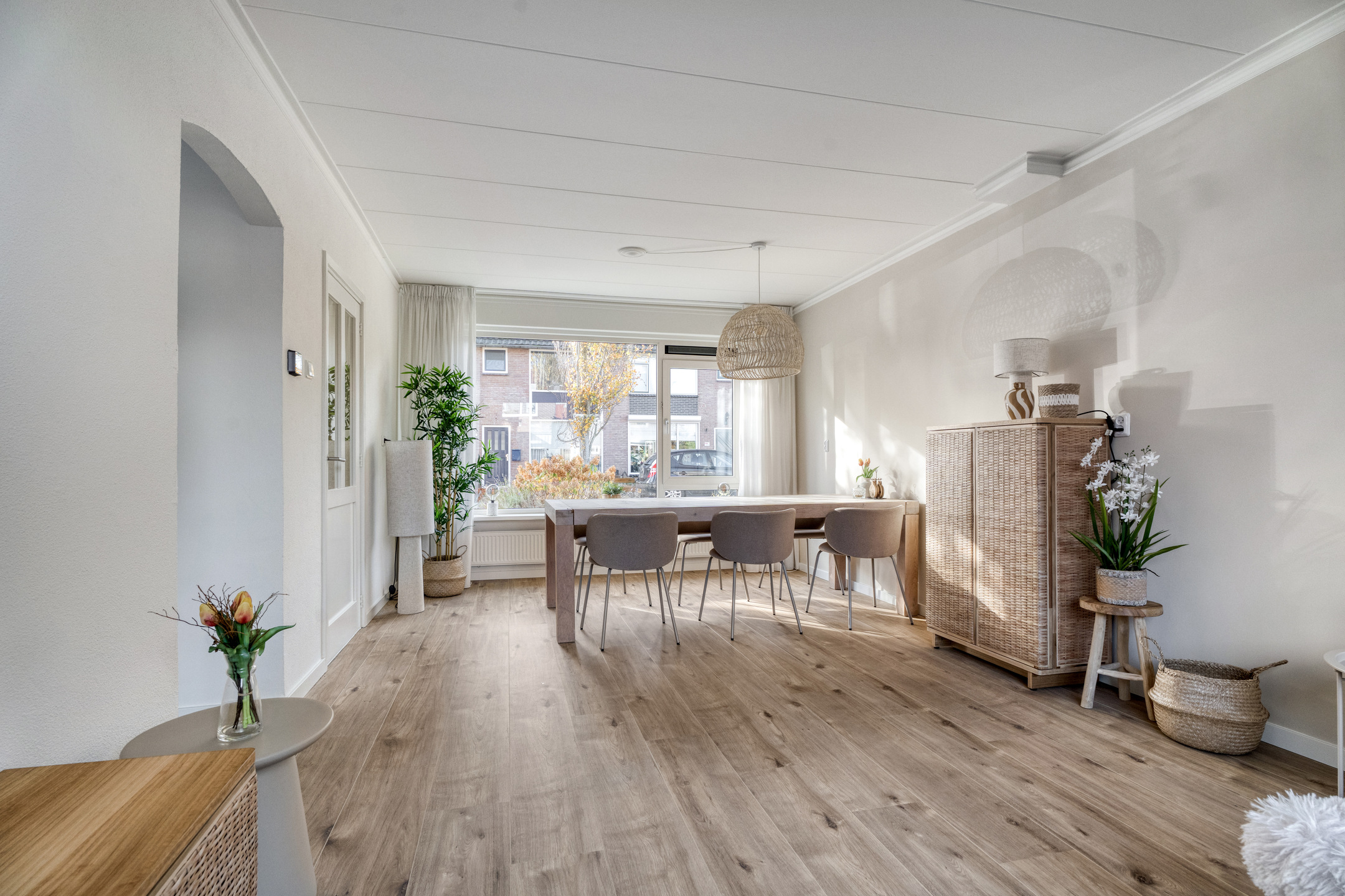 Binnen beschik je over een gezellige doorzonwoonkamer en een halfopen keuken met toegang tot de achtertuin. Op de verdieping zijn drie slaapkamers en een badkamer met ligbad aanwezig. De tweede verdieping biedt ruimte aan een vierde slaapkamer en een voorzolder met plaats voor het witgoed. Buiten is het ook fijn toeven: een stijlvolle voortuin en een diepe, zonnige achtertuin met veranda maken het geheel compleet.