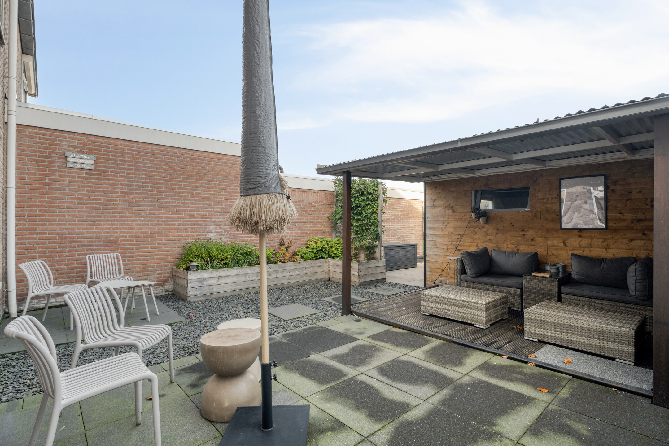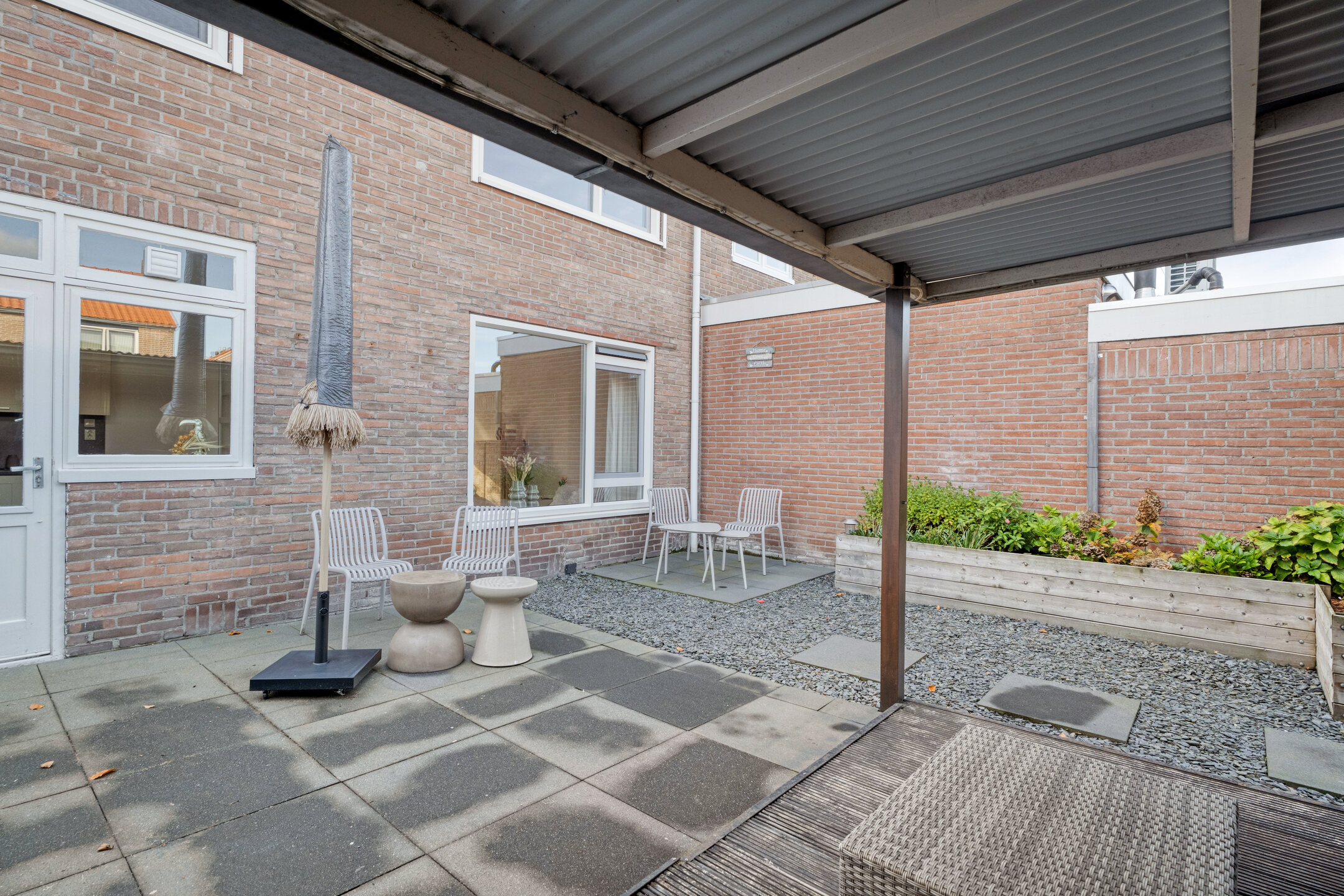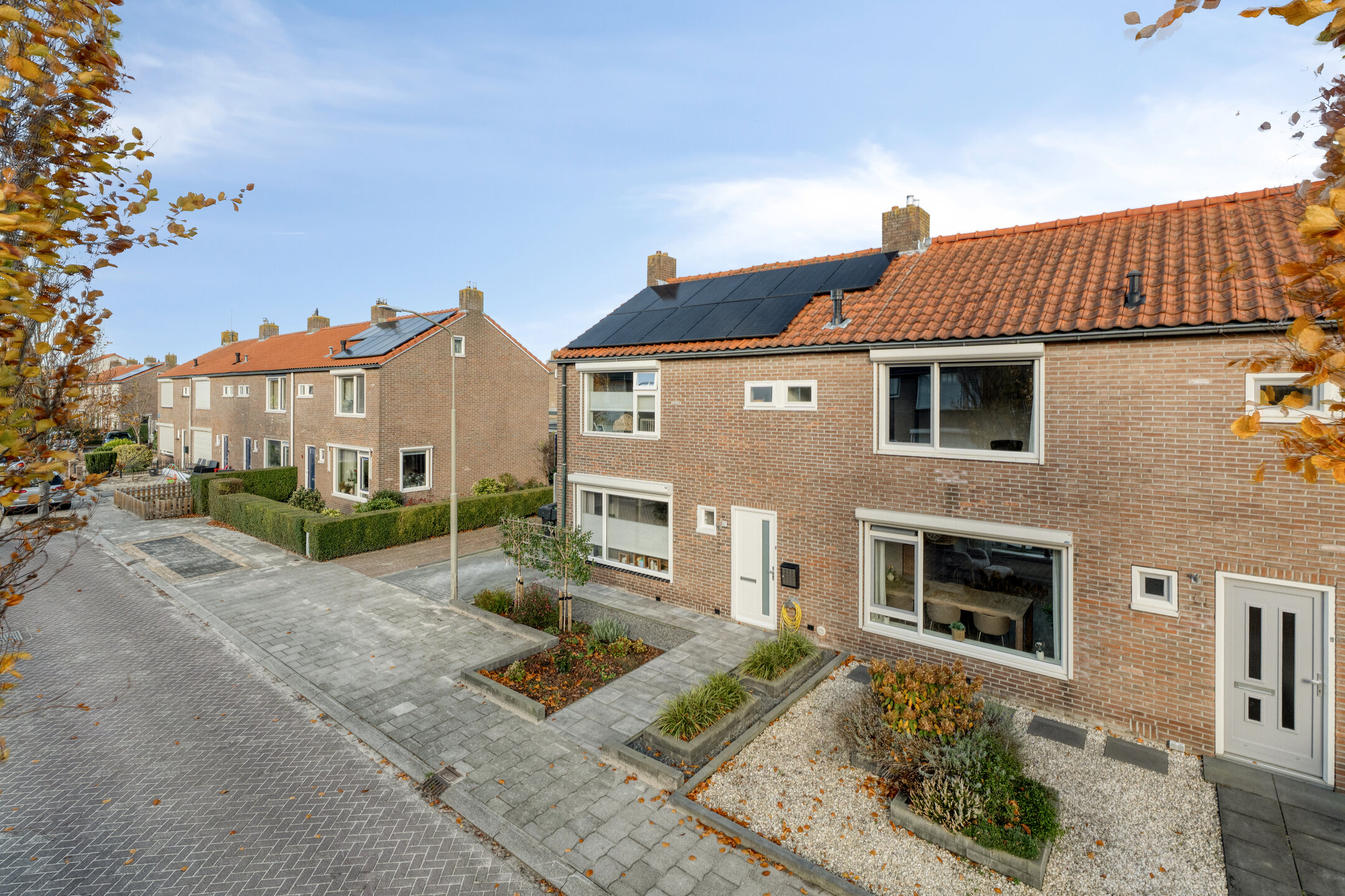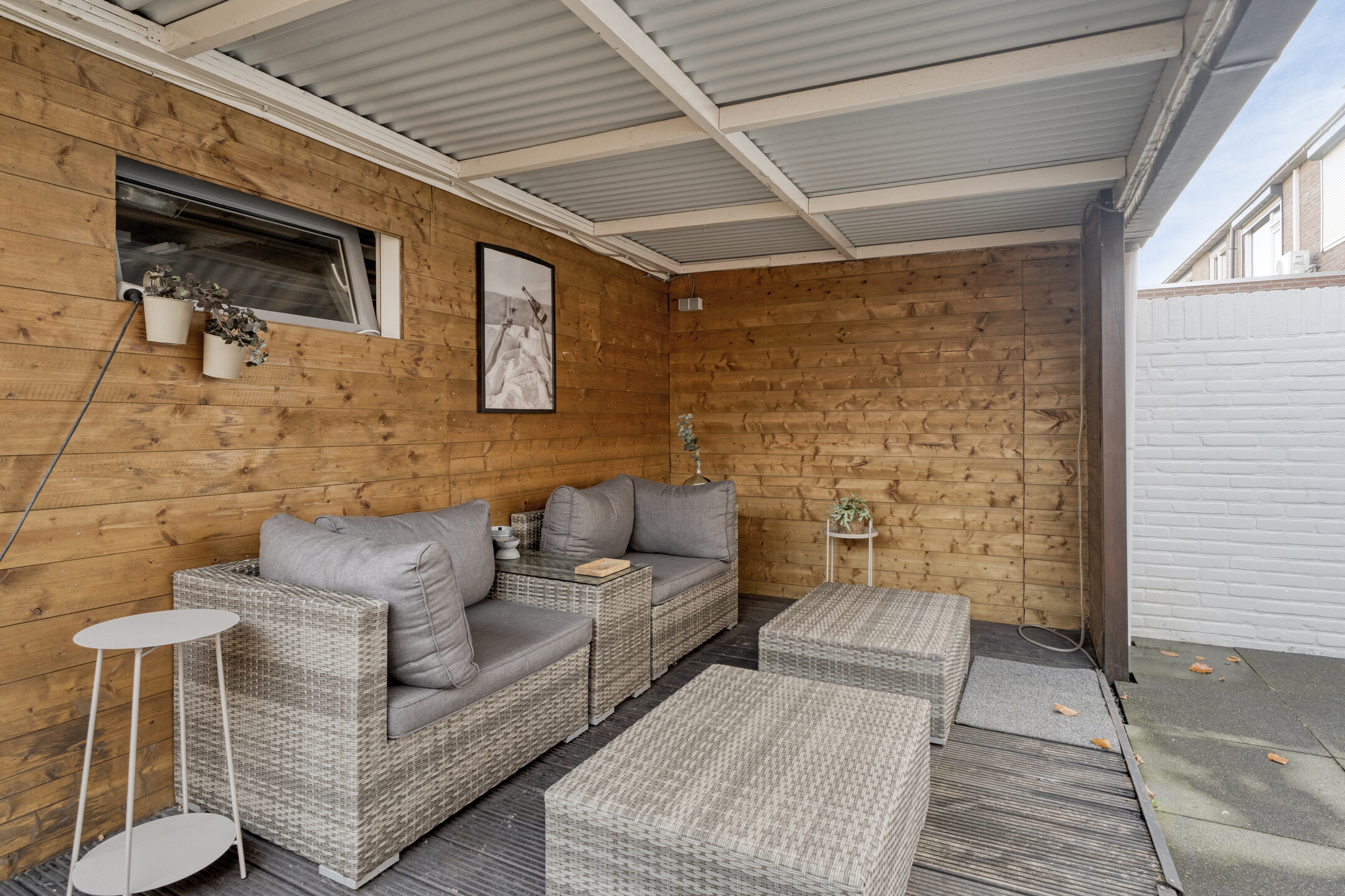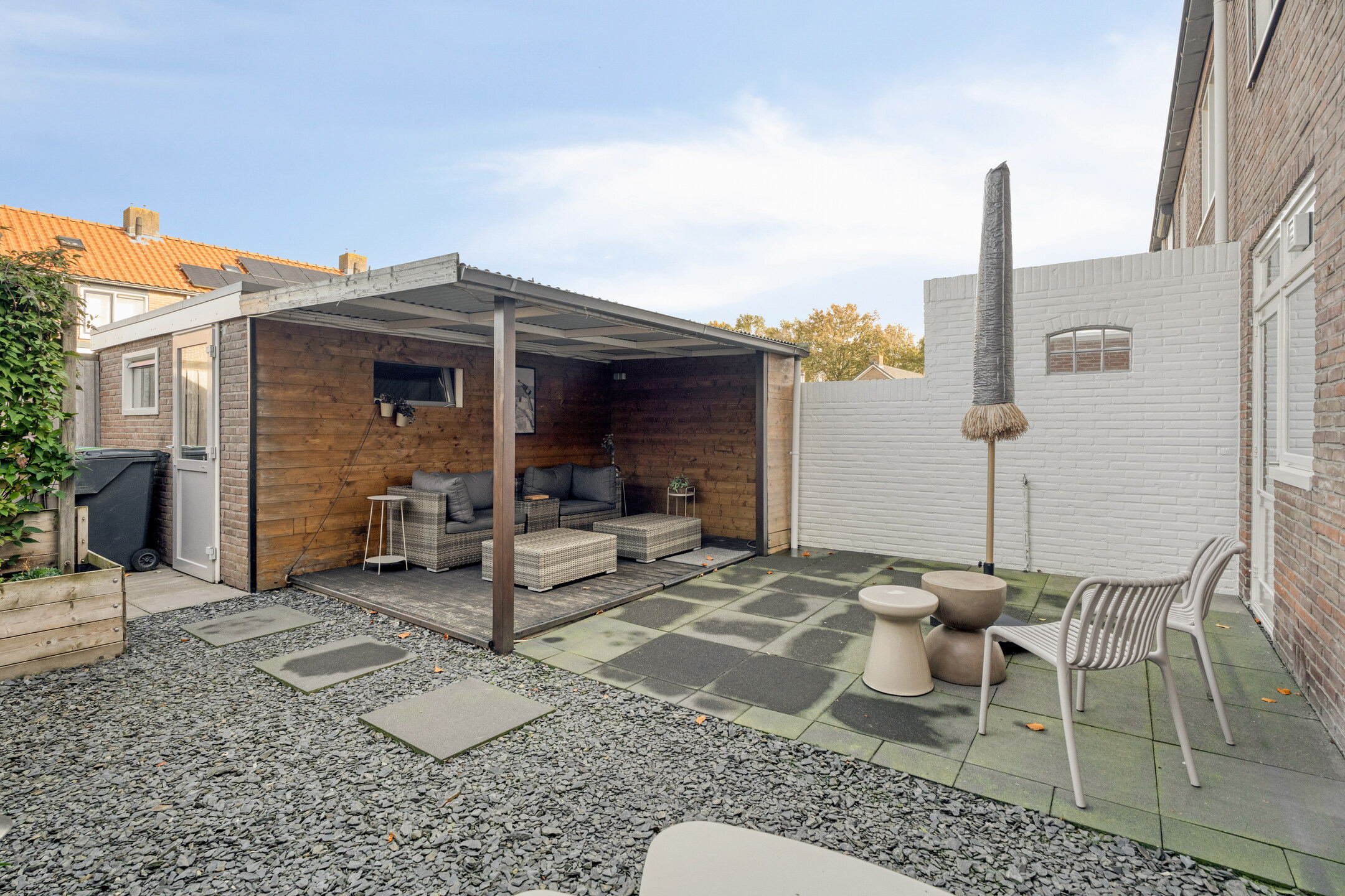 De woning beschikt over een verzorgde voortuin met sierbestrating en beplanting. In de achtertuin geniet je van veel zon en privacy. Er is een breed terras, een veranda waar je beschut kunt zitten én een ruime stenen berging. Deze biedt plek voor fietsen, tuingereedschap en meer. De tuin is bereikbaar via een achterom.