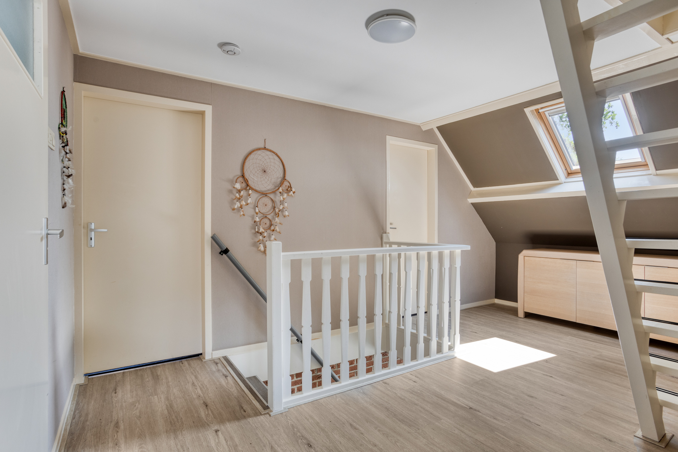 Via een vaste trap bereik je een praktische zolderverdieping, ideaal voor het opslaan van seizoensspullen of als kluszolder.