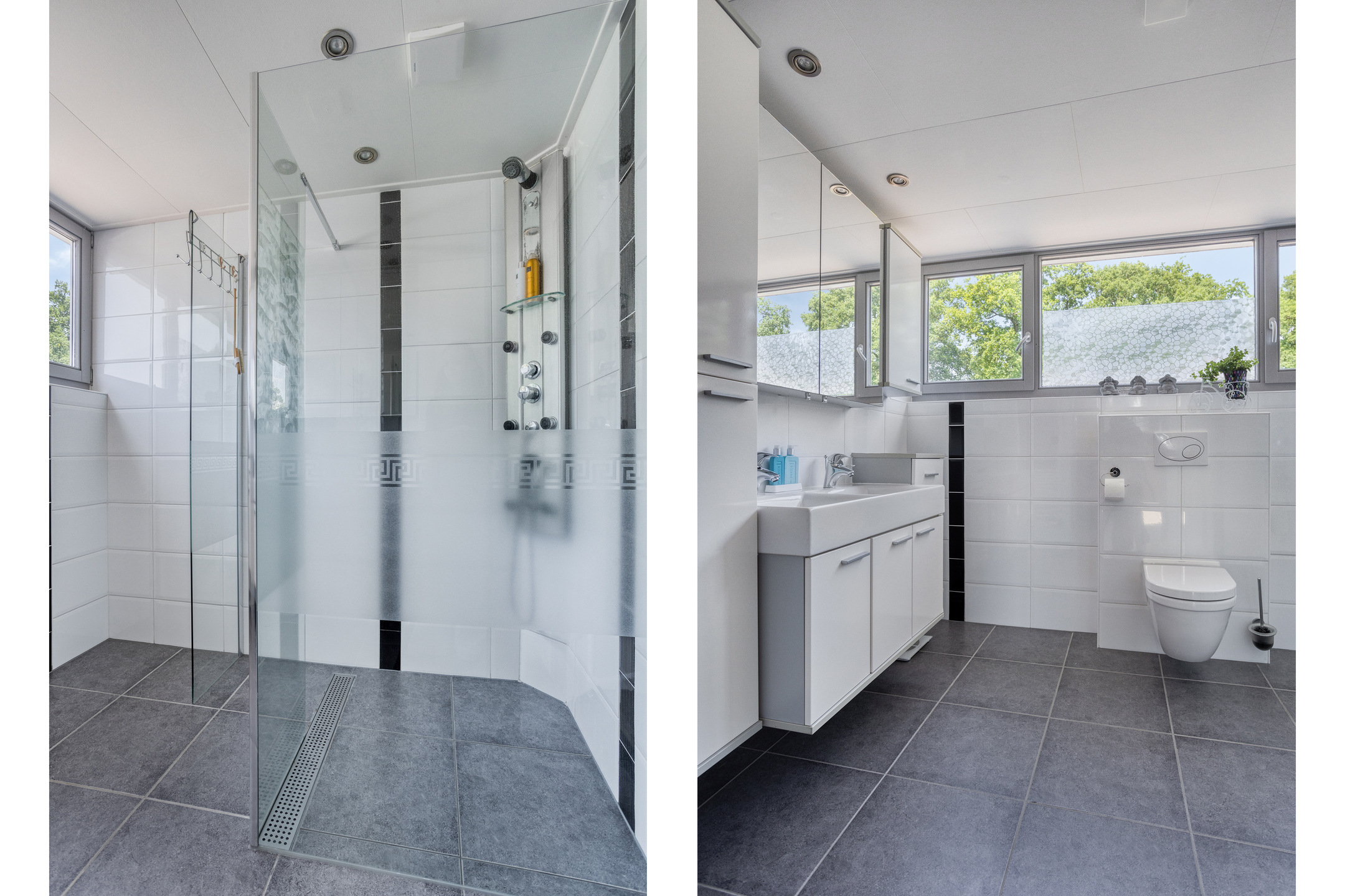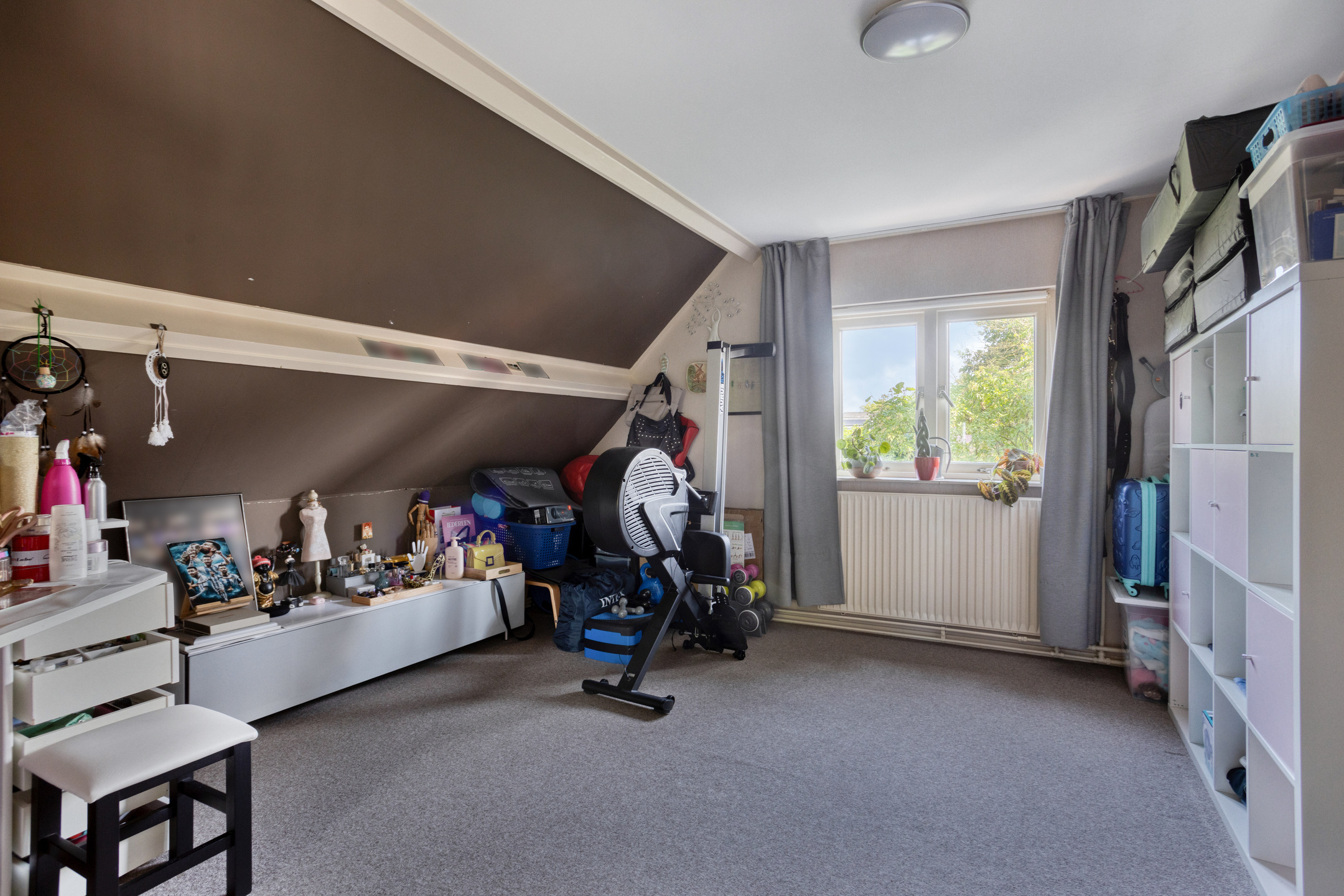 De overloop geeft toegang tot drie ruime slaapkamers, allen voorzien van daglicht. De slaapkamer aan de voorzijde is bijzonder ruim en beschikt over een handige berging. De moderne badkamer is uitgerust met een tweede toilet, wastafelmeubel en een inloopdouche.