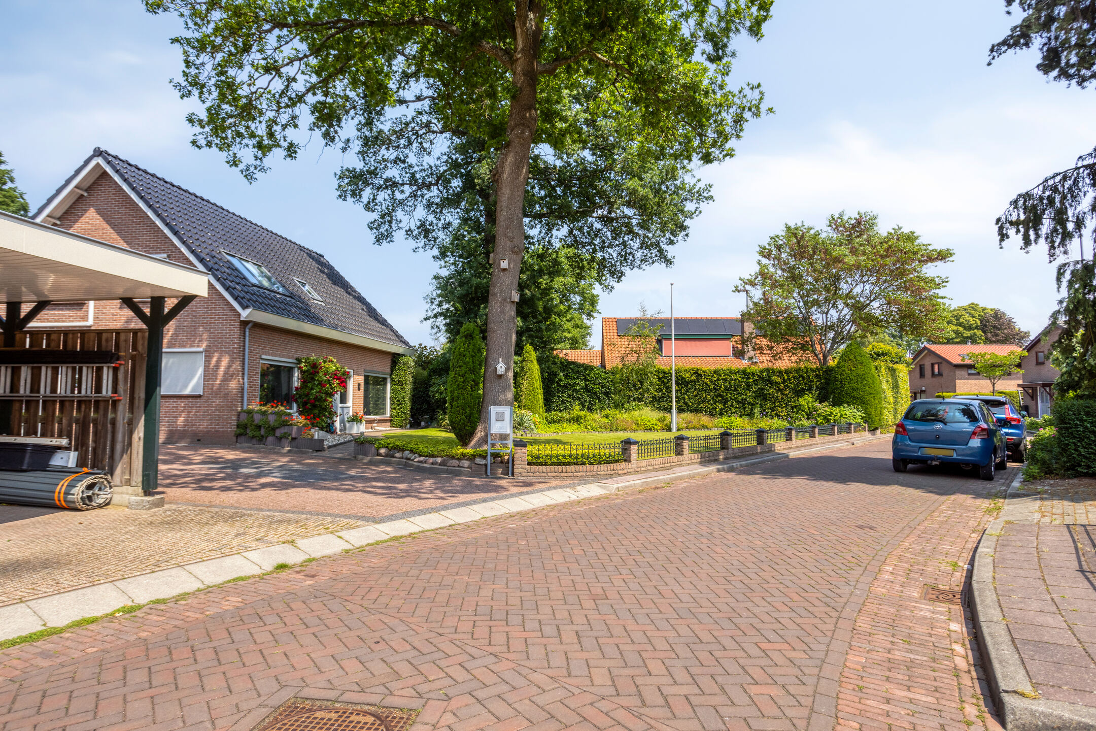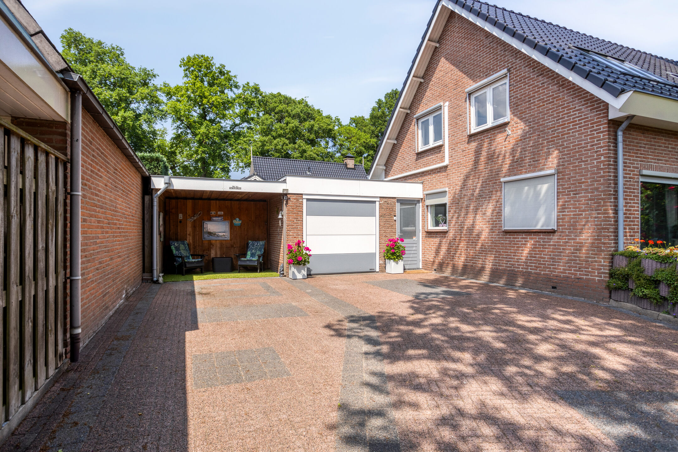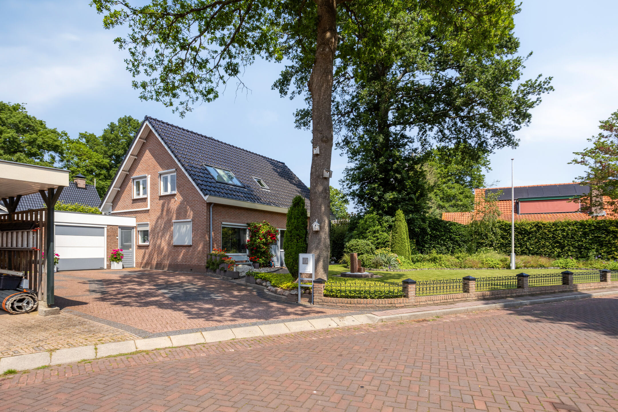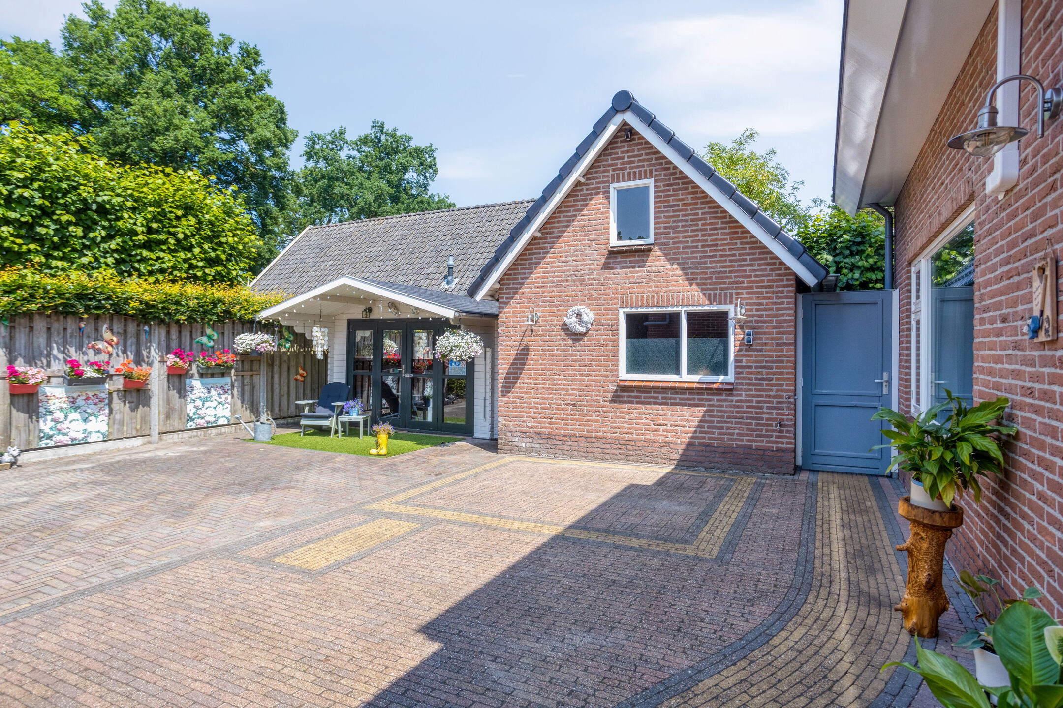 Vanaf het moment dat je het erf op rijdt, voelt het vertrouwd. De fraai aangelegde voortuin, het ruime parkeerterrein met sierbestrating en de verzorgde uitstraling van de woning zorgen voor een eerste indruk die blijft hangen. De overkapping naast de garage nodigt uit om beschut buiten te zitten, een fijne plek voor een kop koffie in de ochtendzon.