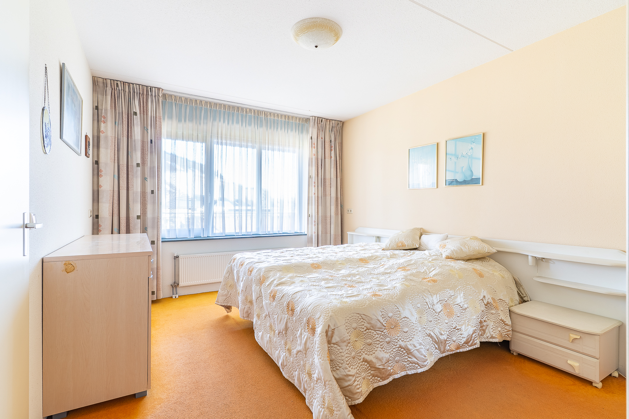 Aan de ene zijde van de hal bevindt zich een ruime slaapkamer, die zich uitstekend leent als hoofdslaapkamer. Aan de andere kant is de tweede slaapkamer gesitueerd, welke flexibel te gebruiken is als logeer-, werk- of hobbykamer.