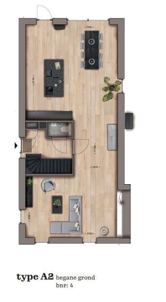 Via de zijentree kom je binnen in de hal met ruimte voor garderobe, de meterkast en het toilet. Vervolgens stap je de royale woonkamer binnen, die dankzij de grote raampartijen baadt in het daglicht. Er is meer dan genoeg plek voor een gezellige zithoek én een grote eettafel.
