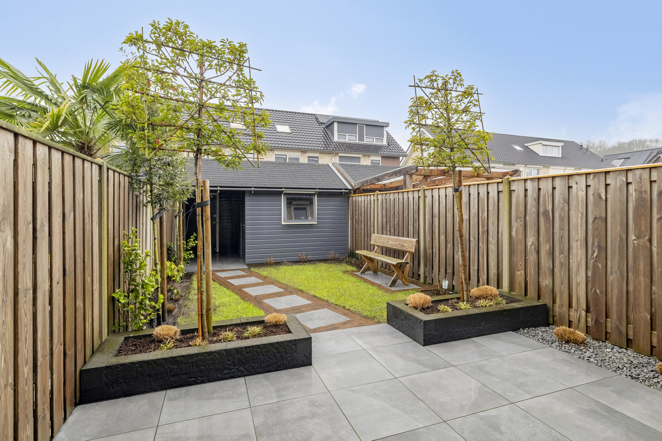 De achtertuin is fraai aangelegd en zonnig gelegen. Er is voldoende ruimte voor een terras en een speelplek voor kinderen. Achterin de tuin staat een berging voor fietsen en tuingereedschap en via het achterpad is de tuin goed bereikbaar. Ook is de woning voorzien van rolluiken en zonwering.