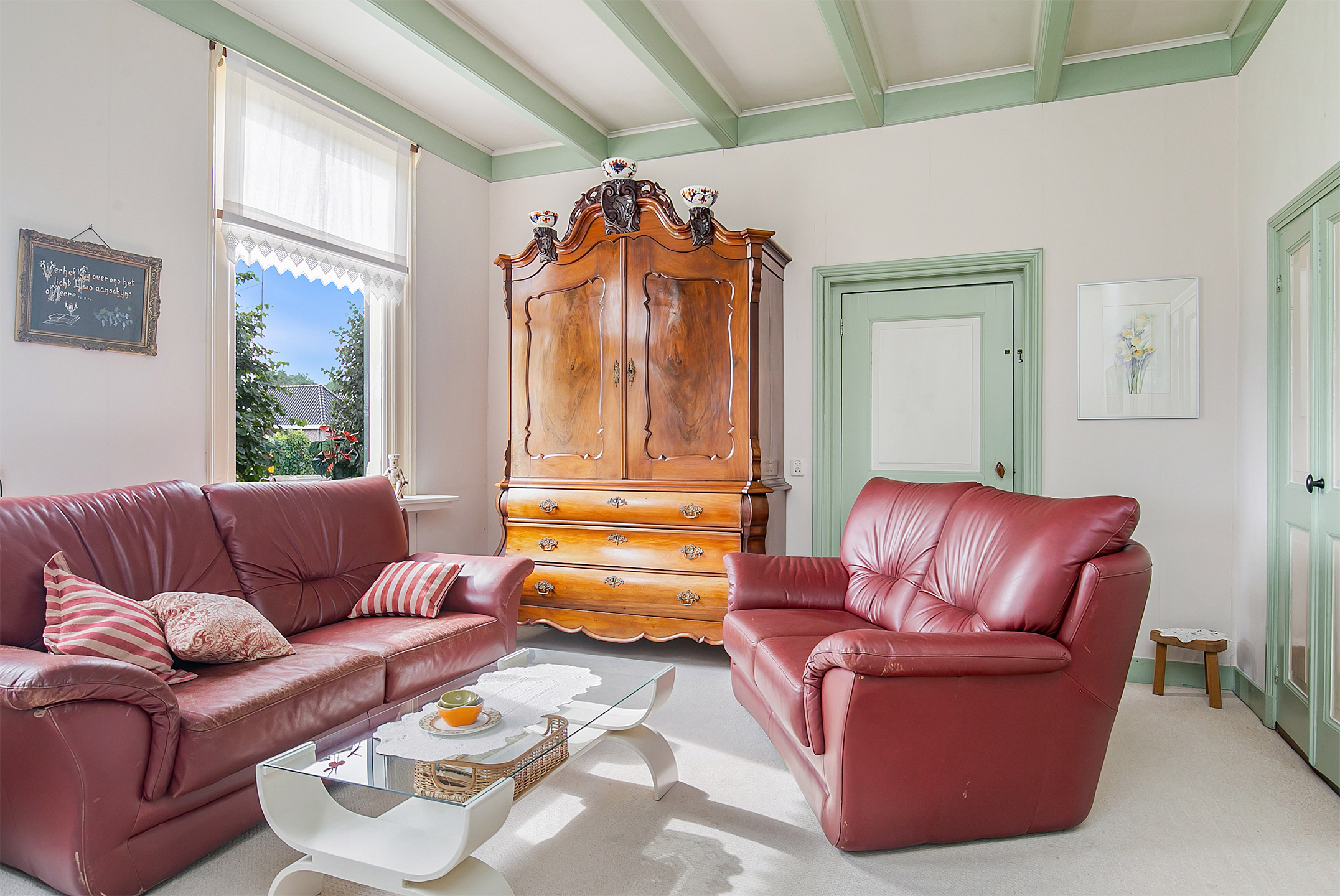 Via de voordeur in het midden van de woning komt u binnen in de centrale hal. Aan weerszijden bevinden zich twee woonkamers, elk met een eigen sfeer. Eén van de kamers beschikt over een prachtige originele schouw die direct de sfeer van weleer ademt.