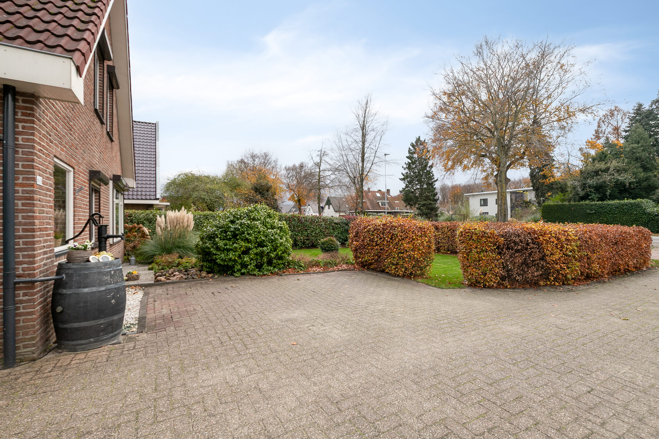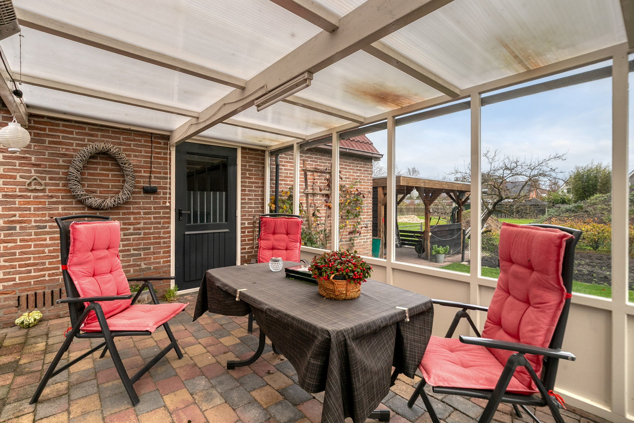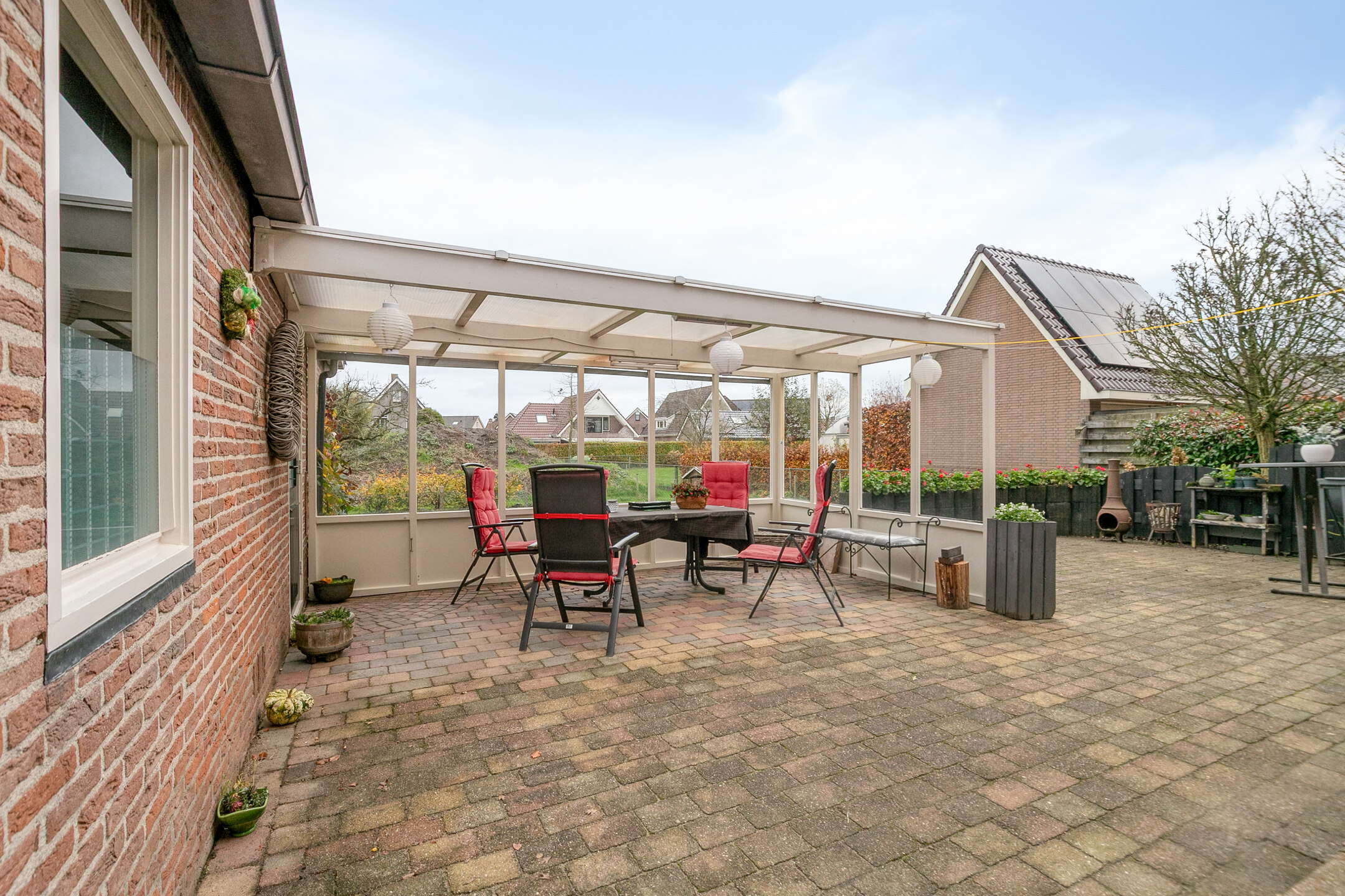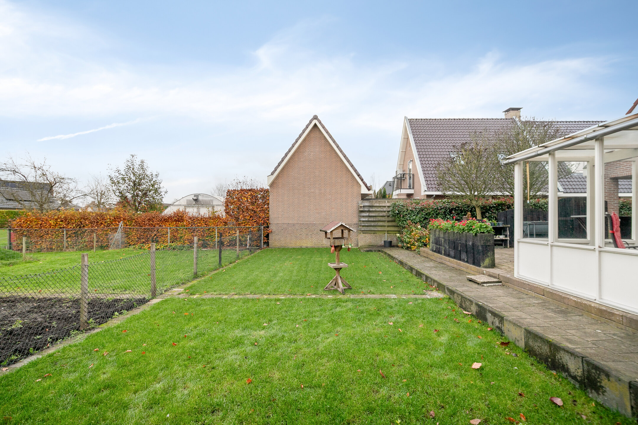 De fraai aangelegde tuin biedt volop privacy, ruimte om te genieten en is voorzien van een royaal terras. Achter op het perceel bevindt zich een vrijstaande garage met aangebouwde berging en een grote overkapping: ideaal voor hobby’s, opslag of om beschut buiten te zitten. En er is nog een overkapping aanwezig in de achtertuin, in elk seizoen kun je dus heerlijk buiten vertoeven. Ook is er een bron voor grondwater aanwezig, waarmee door middel van een pomp de tuin kan worden besproeid.