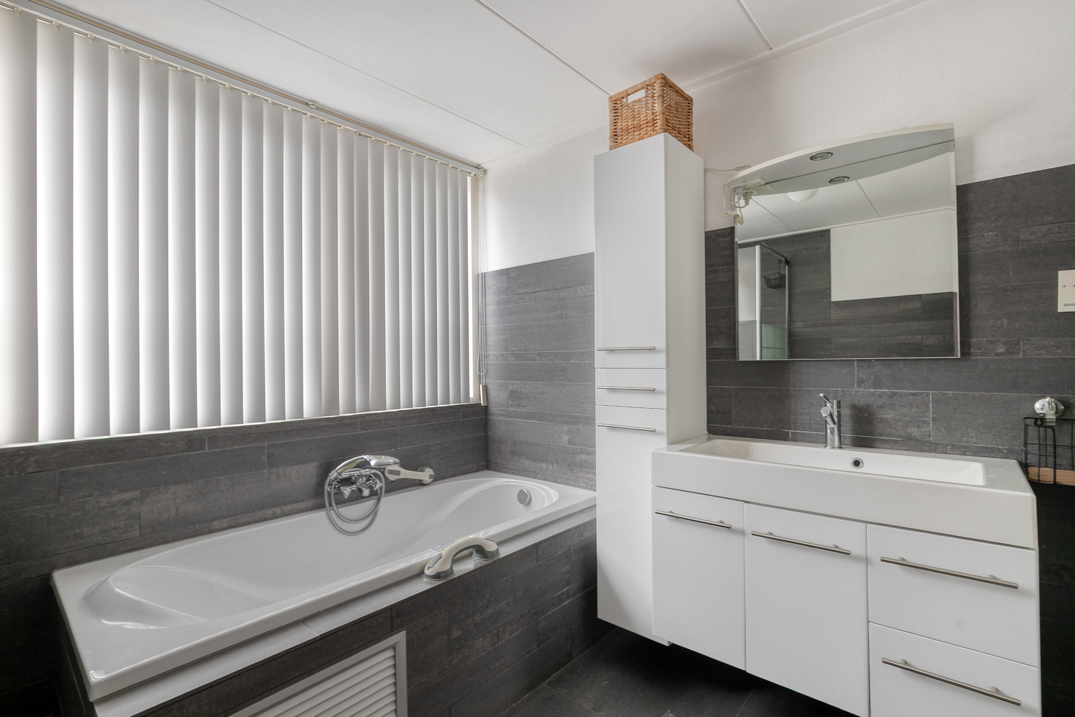De eerste verdieping biedt drie volwaardige slaapkamers, waaronder een zeer ruime hoofdslaapkamer over de volledige breedte van de woning die eenvoudig te splitsen is in twee mooie slaapkamers. De twee overige slaapkamers zijn eveneens licht en goed ingedeeld. De badkamer is compleet uitgerust met een ligbad, aparte douche, wastafelmeubel en een tweede toilet.