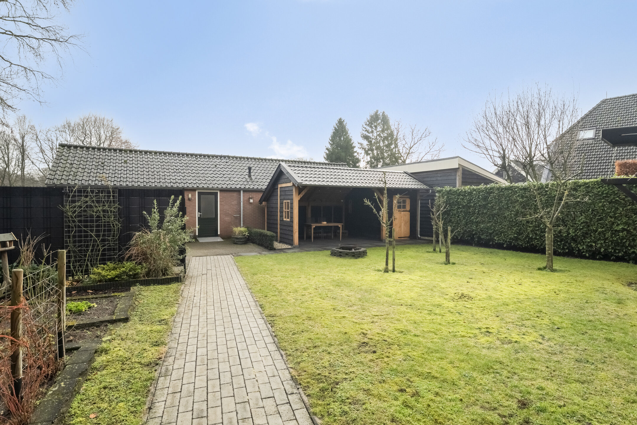 Rondom de woning ligt een prachtige ruime tuin met een mooie combinatie van gazon, terrassen en groen. De fruitbomen geven het geheel een landelijke en sfeervolle uitstraling. Hier is alle ruimte voor spelende kinderen, een moestuin of gewoon heerlijk genieten van het buitenleven.